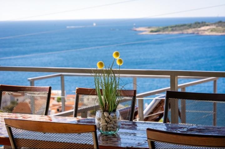 Dom wakacyjny z basenem i podgrzewaną wanną do masażu położony jest na wzgórzu z pięknym widokiem na otwarte morze. Jest idealnym miejscem na spokojny wypoczynek dla dużej rodziny lub grupy przyjaciół. Jednocześnie łatwo dostępne są obiekty sportowe i rozrywkowe; zagospodarowane ścieżki rowerowe, piaszczyste, betonowe i żwirowe plaże nad krystalicznie czystym morzem. Restauracje i kluby nocne oddalone są od obiektu o 5–10 minut jazdy samochodem. W domu znajduje się łącznie dziesięć łóżek i dwie rozkładane sofy, dwie nowoczesne kuchnie, dwie łazienki i dwie toalety. Kuchnie wyposażone są w naczynia do przygotowania i przybory do serwowania posiłków. W jednej kuchni znajduje się zmywarka, ekspres do kawy, kuchenka mikrofalowa, czajnik, toster. Do dyspozycji gości dwa zadaszone tarasy, duży otwarty taras przy basenie, grill, parking na trzy samochody, basen (40 m2), leżaki, prysznic na świeżym powietrzu oraz ogrodzony plac zabaw dla dzieci. Sprzątanie końcowe, klimatyzacja, konserwacja basenu, opłata klimatyczna i internet są wliczone w cenę. Powitanie!