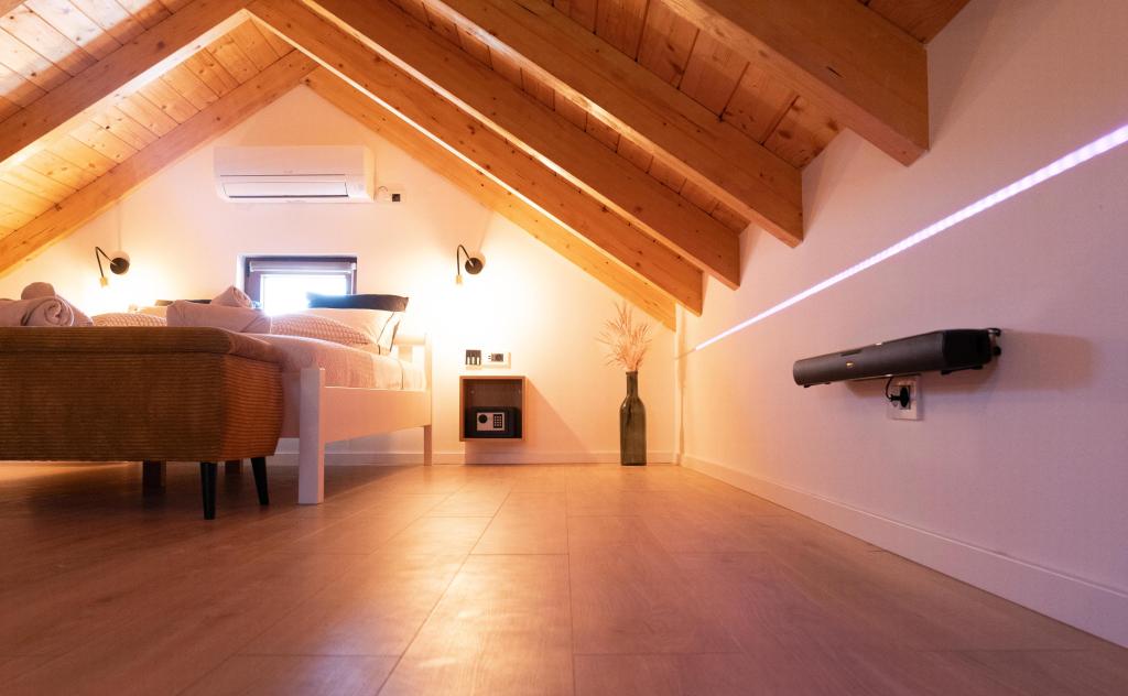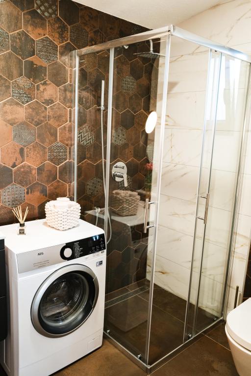 W pełni wyposażona kuchnia - kuchenka, płyta indukcyjna, zmywarka, ekspres do kawy, czajnik i wszystkie podstawowe sprzęty / Łazienka z prysznicem, suszarką do włosów, pralką, nagłośnieniem / Telewizor 65" z usługami IPTV i nagłośnieniem / Jedna oddzielna sypialnia na piętrze z małym ( tylko w nocy) projektor i nagłośnienie / rozkładana sofa na parterze / taras o powierzchni 30 m2 z oświetloną/rozsuwaną pergolą, jadalnią i zestawem do kawy / podgrzewana i oświetlona wanna z hydromasażem na zewnątrz / duży bezpłatny parking / duży trawnik uprawny z automatycznym nawadnianiem + drzewa / ogród ekologiczny o powierzchni 100 m2 / Grill na świeżym powietrzu z nagłośnieniem i zestawem do spożywania posiłków dla 6 osób / Całkowicie ogrodzona posesja z przesuwaną bramą z napędem (Gotowe) Samowystarczalna
