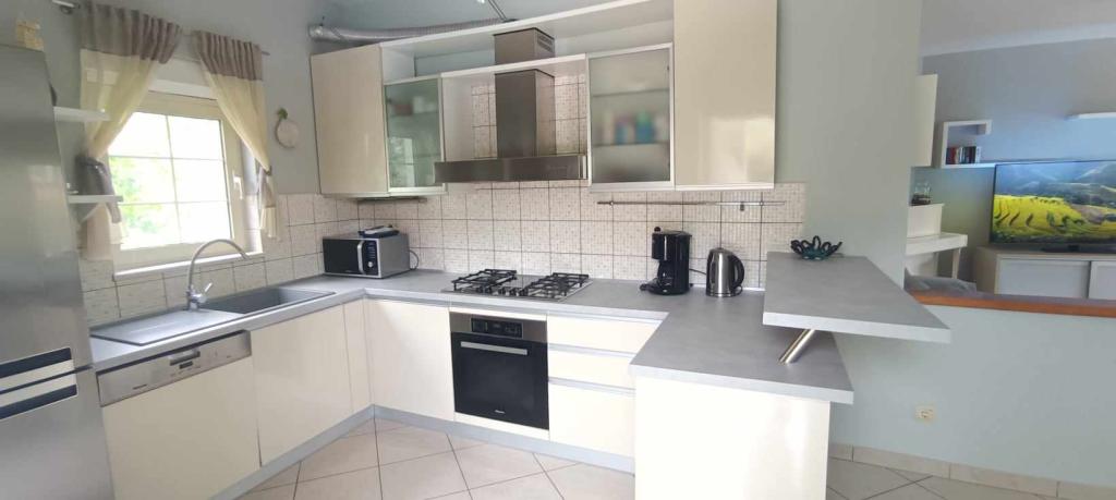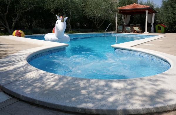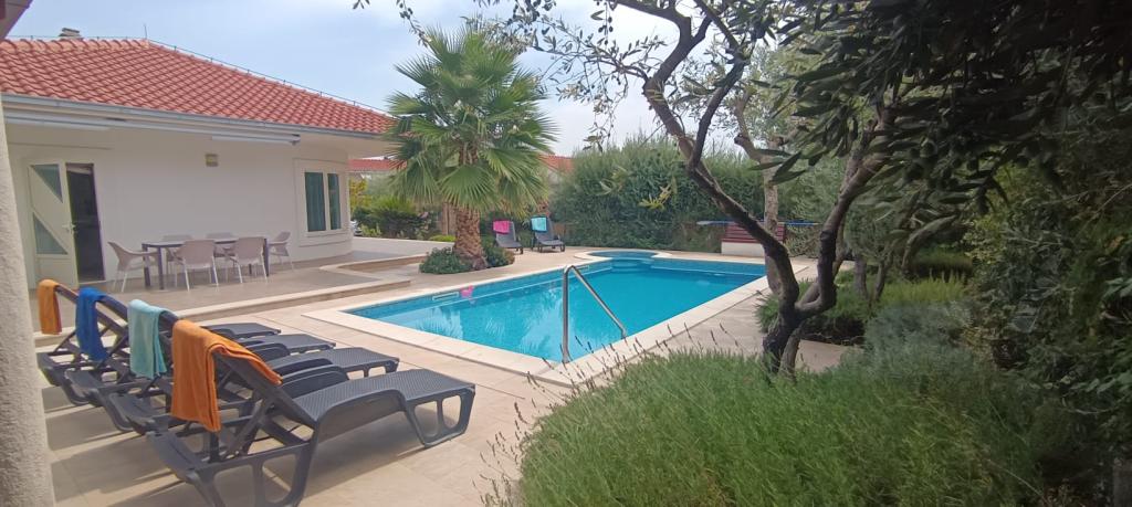 Witamy w naszym pięknym domu wakacyjnym, gdzie czeka na Ciebie zachęcający basen z kojącym jacuzzi, przestronny raj w ogrodzie i urzekający pokój zabaw, aby stworzyć niezapomniane wspomnienia w naszej przestronnej rodzinnej oazie. Nasze nowoczesne wnętrze może pomieścić 8 gości i posiada świetną salę ze stołem bilardowym, rzutkami, piłkarzykami i tenisem stołowym. Wejdź do wytwornych wnętrz naszej willi, która komfortowo pomieści 8 osób w 4 elegancko urządzonych sypialniach i 3 łazienkach. Trzy pokoje wyposażone są w wygodne podwójne łóżka, natomiast jeden oferuje dwa wygodne łóżka pojedyncze. Sercem willi jest przestronny i wygodny salon na otwartym planie, który płynnie łączy się z zachęcającą jadalnią i nowoczesną kuchnią. Przestronny, ogrodzony ogród z zachęcającym basenem otoczony jest urzekającymi kwiatami, śródziemnomorskimi ziołami i drzewami owocowymi, tworząc idylliczne miejsce do relaksu na świeżym powietrzu, pływania, jedzenia i gier.