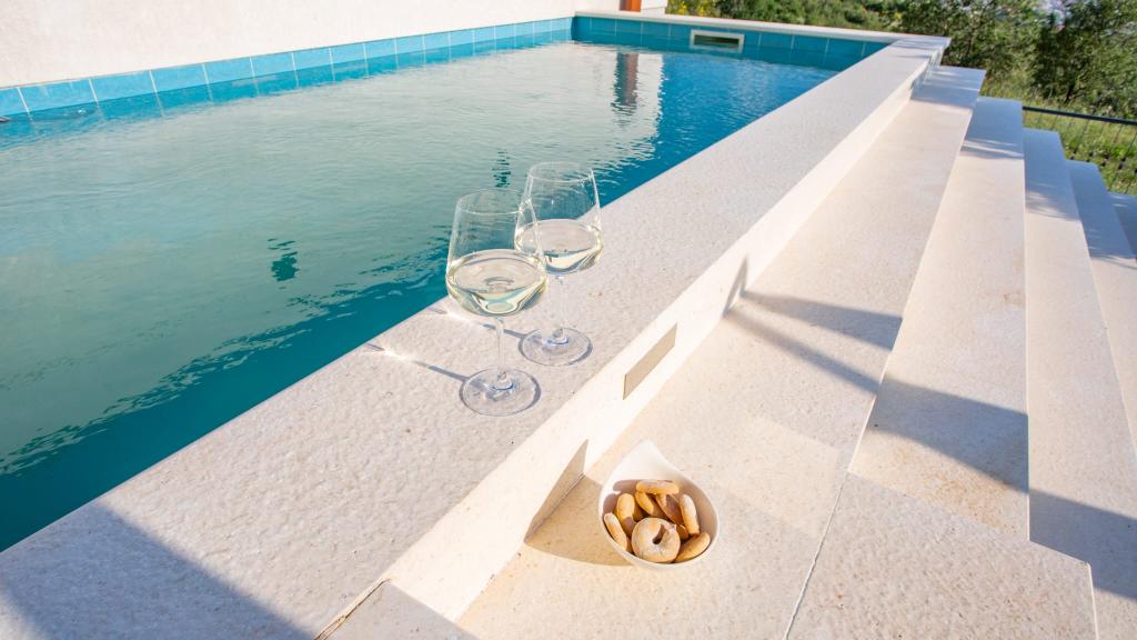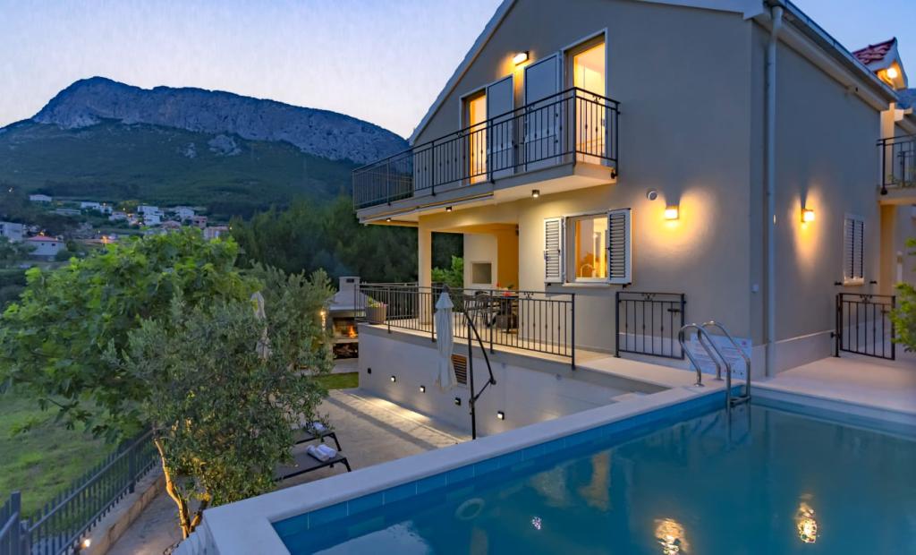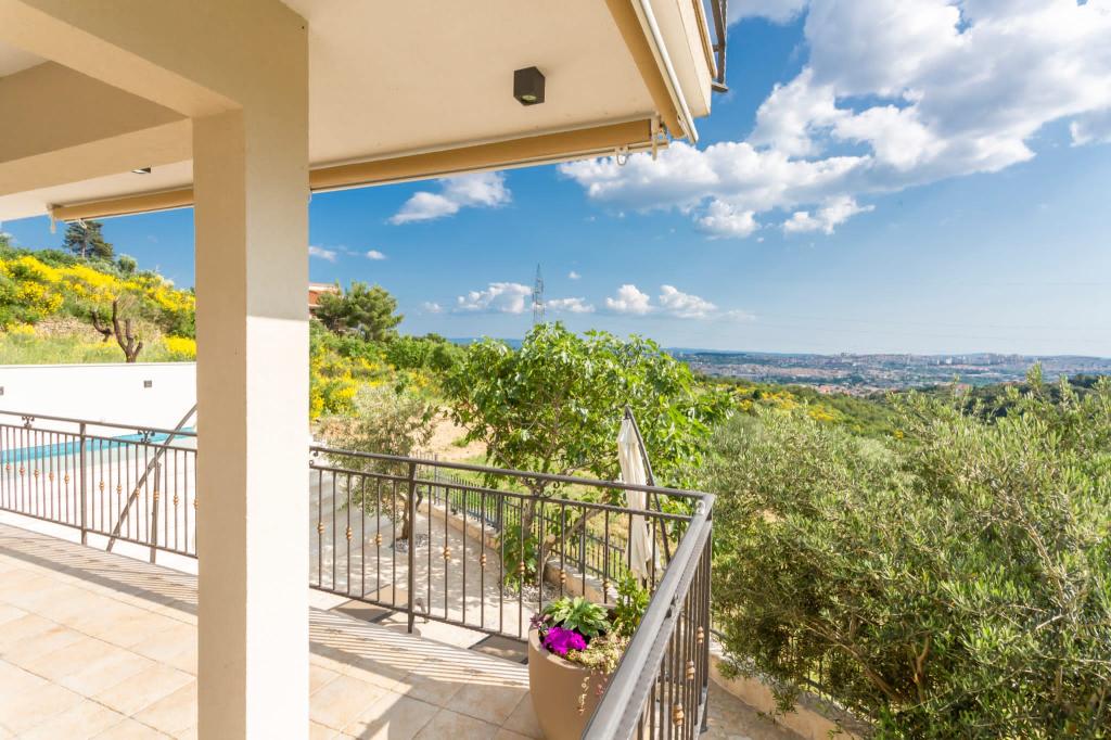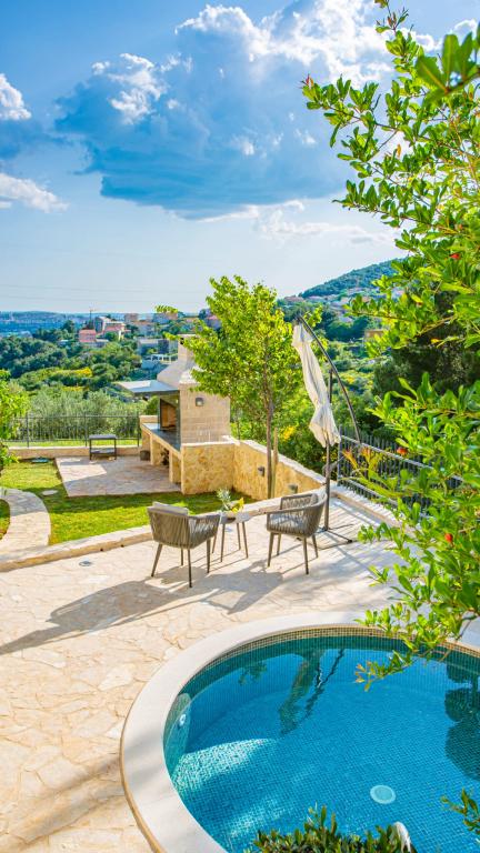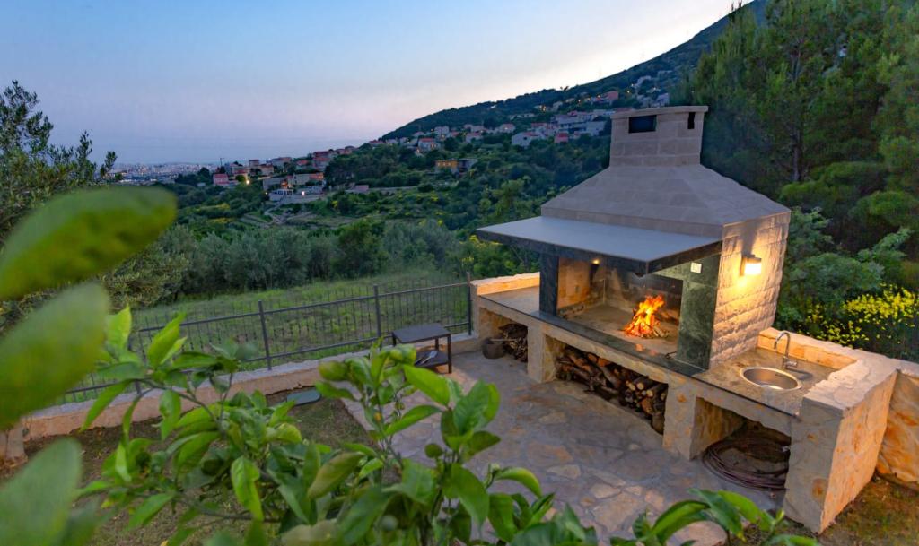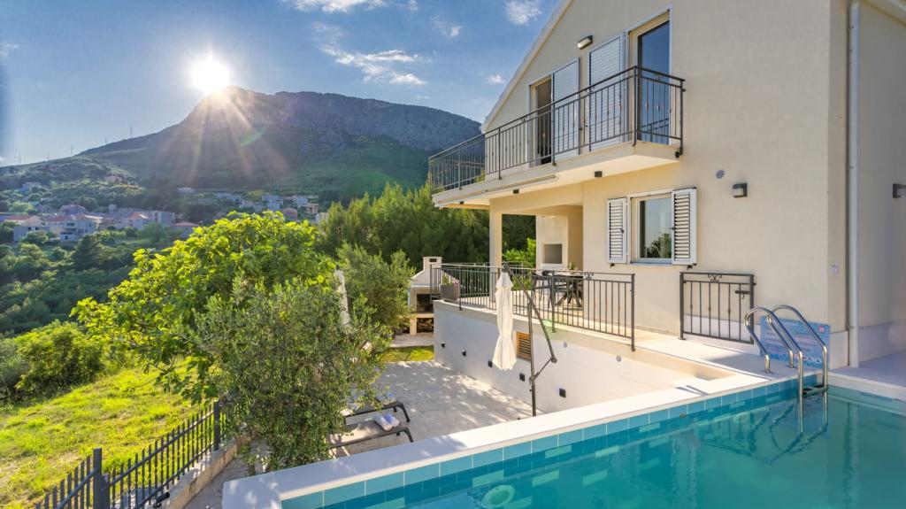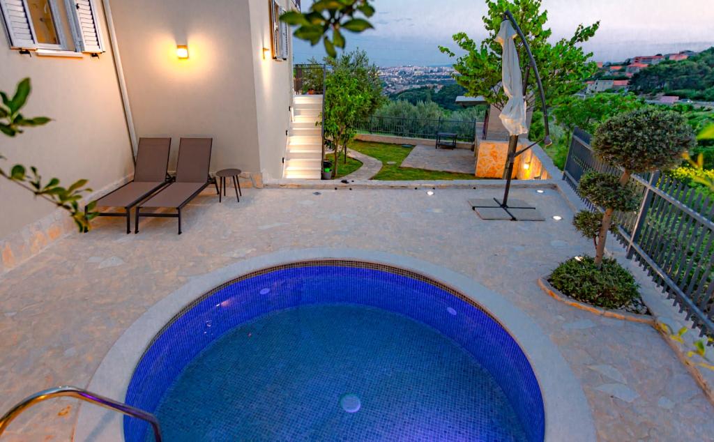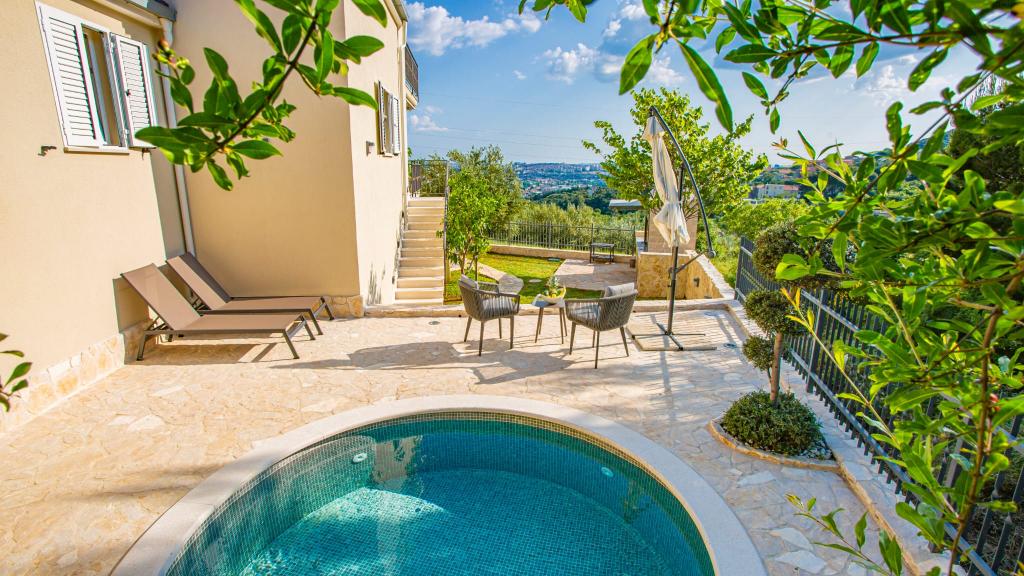 Willa rozciąga się na dwóch piętrach o łącznej powierzchni m kw. 180. Parter tego piękna składa się zw pełni wyposażonej kuchni z jadalnią i wygodnego salonu. W kuchni znajdziesz wszystko co potrzebne do przygotowania i podania posiłków, a jadalnia jest wyposażona dla 8 osób. W ciągu dnia salon będzie miejscem relaksu przy telewizorze, aw nocy można odpocząć na kanapie, która może posłużyć jako dodatkowe łóżko. Z salonu schodami można dostać się na piętro, gdzie znajdują się 3 sypialnie i jedna wspólna łazienka. Wszystkie trzy sypialnie mają wyjście na balkon z pięknym panoramicznym widokiem na ogród lub okolicę. W dwóch sypialniach znajdują się podwójne łóżka, w dwóch pozostałych znajdują się dwa pojedyncze łóżka. Dom otoczony jest starannie zaaranżowanym śródziemnomorskim ogrodem. Od strony południowej znajduje się podgrzewany basen z leżakami do korzystania ze słońca. Chwile pełnego relaksu zapewni jacuzzi na tyłach domu oraz grill przy balkonie.
