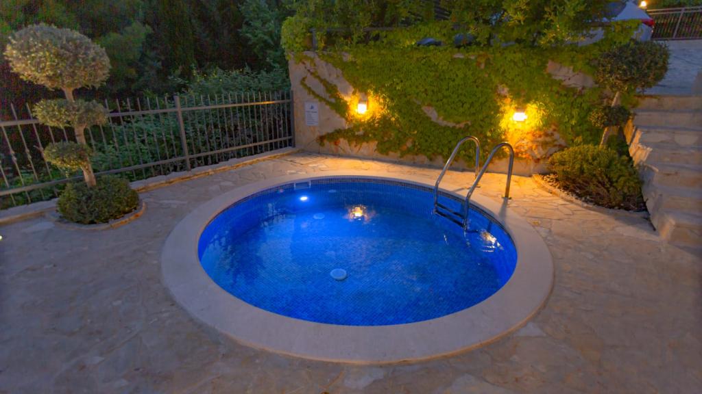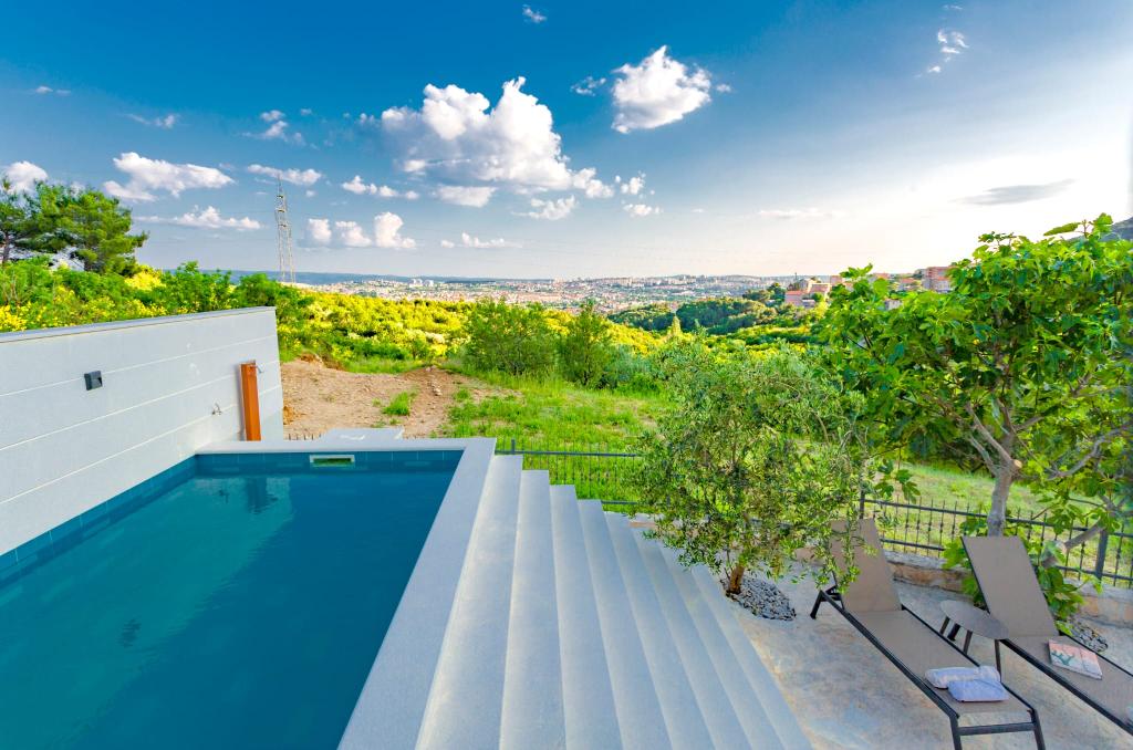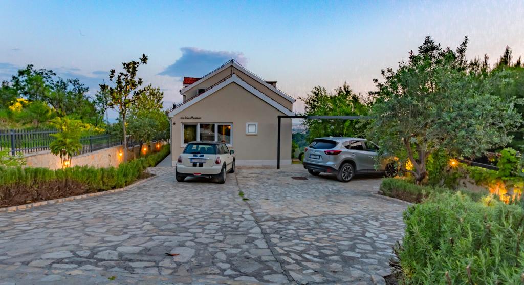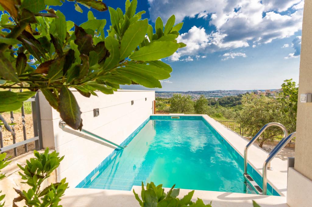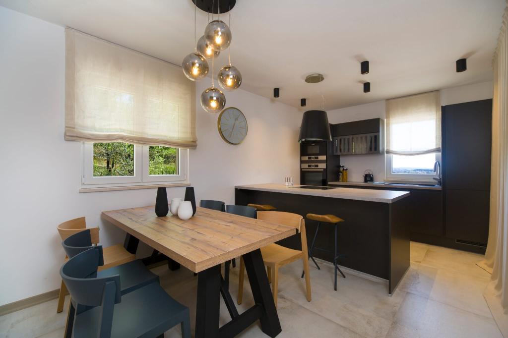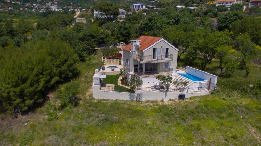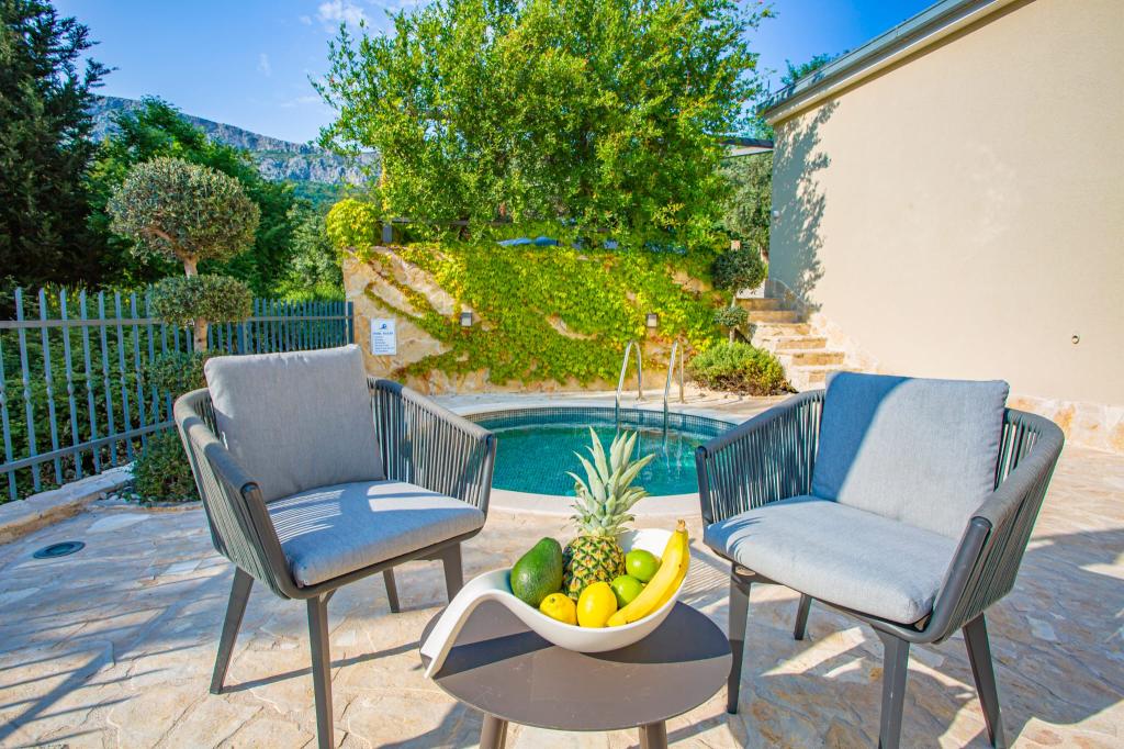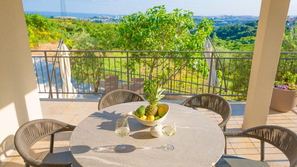 Willa rozciąga się na dwóch piętrach o łącznej powierzchni m kw. 180. Parter tego piękna składa się zw pełni wyposażonej kuchni z jadalnią i wygodnego salonu. W kuchni znajdziesz wszystko co potrzebne do przygotowania i podania posiłków, a jadalnia jest wyposażona dla 8 osób. W ciągu dnia salon będzie miejscem relaksu przy telewizorze, aw nocy można odpocząć na kanapie, która może posłużyć jako dodatkowe łóżko. Z salonu schodami można dostać się na piętro, gdzie znajdują się 3 sypialnie i jedna wspólna łazienka. Wszystkie trzy sypialnie mają wyjście na balkon z pięknym panoramicznym widokiem na ogród lub okolicę. W dwóch sypialniach znajdują się podwójne łóżka, w dwóch pozostałych znajdują się dwa pojedyncze łóżka. Dom otoczony jest starannie zaaranżowanym śródziemnomorskim ogrodem. Od strony południowej znajduje się podgrzewany basen z leżakami do korzystania ze słońca. Chwile pełnego relaksu zapewni jacuzzi na tyłach domu oraz grill przy balkonie.