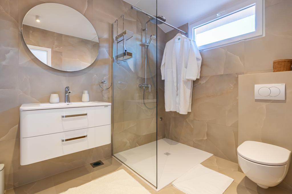 Opłata jest wliczone w cenę.Ten urokliwy dom posiada dwie sypialnie, każda z własną łazienką, zapewniając komfort i prywatność wszystkim gościom. Nowoczesna kuchnia i przestronna jadalnia idealnie nadają się do rodzinnych posiłków. Przytulny salon posiada osobną toaletę. Duży taras zapewnia spokojną przestrzeń do relaksu i korzystania z uroków natury. Bezpłatny parking znajduje się 400 m od domu.