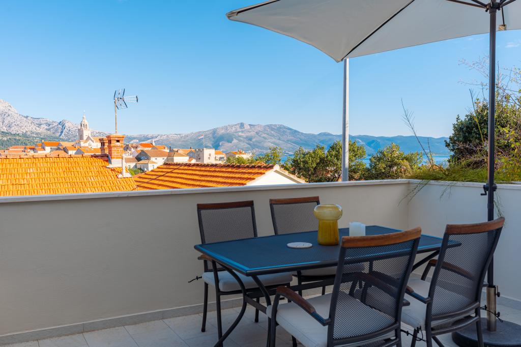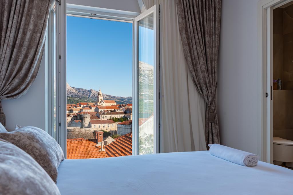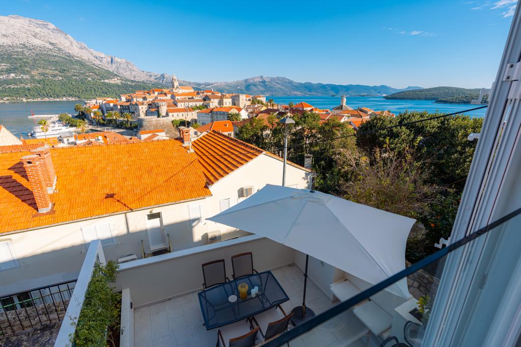 Położony w sercu zabytkowej Korčuli, ten piękny dom oferuje spektakularne widoki na morze i starówkę. Elegancko urządzone pokoje zapewniają komfort i luksus. Duży taras jest idealnym miejscem na podziwianie zachodów słońca z lampką lokalnego wina. Bliskość atrakcji kulturalnych, restauracji, głównego placu i morza (120 m spacerem) zapewnia łatwy dostęp do wszystkich uroków wyspy. Idealny wybór na relaksujący i niezapomniany urlop na jednej z najpiękniejszych chorwackich wysp.