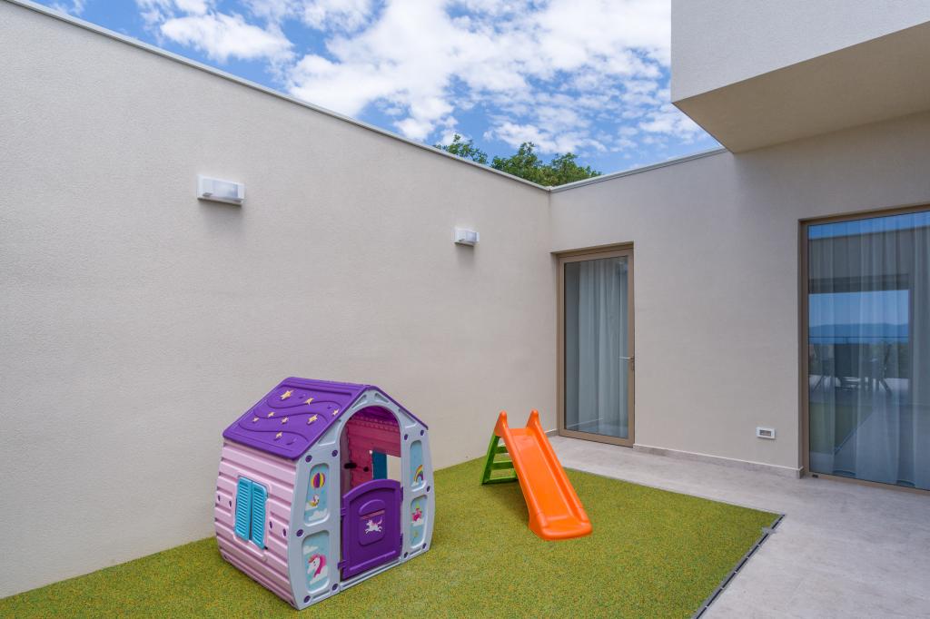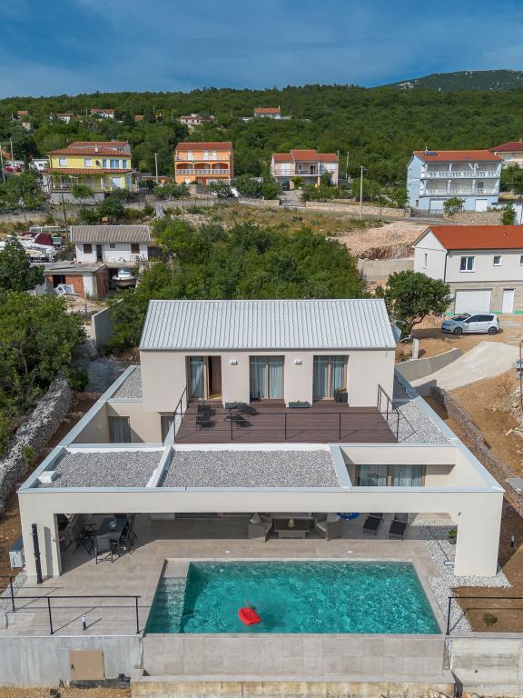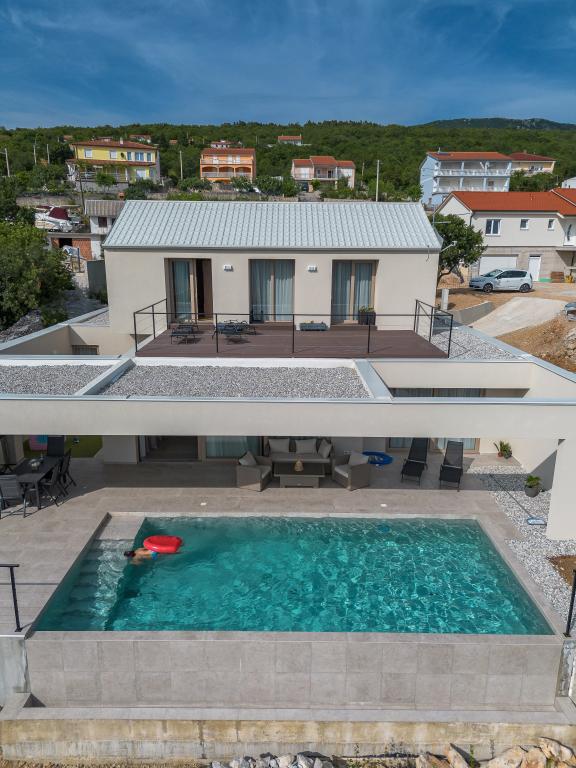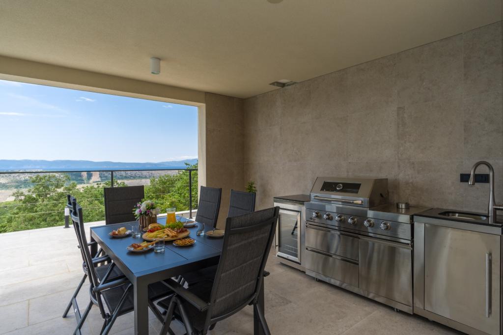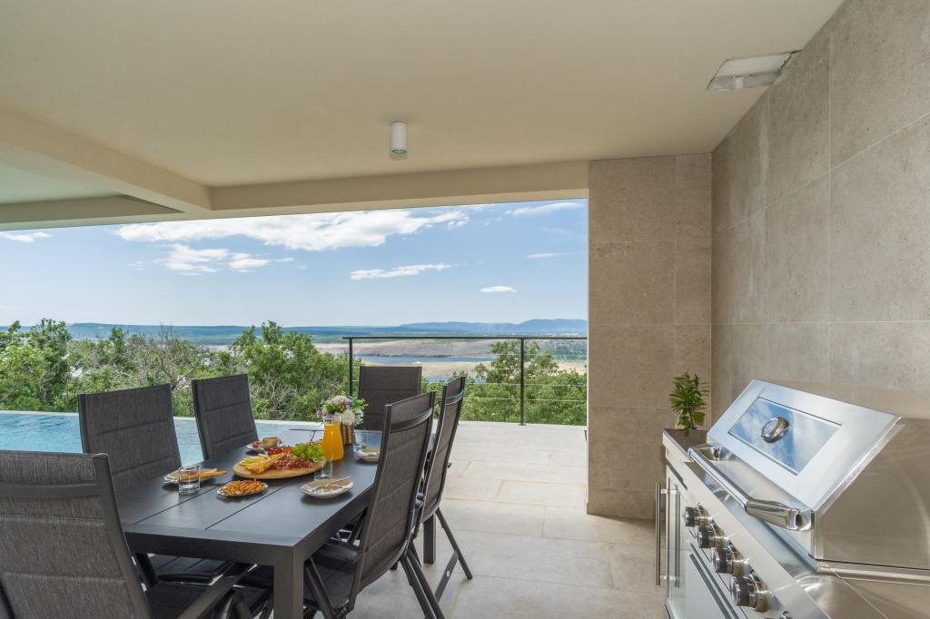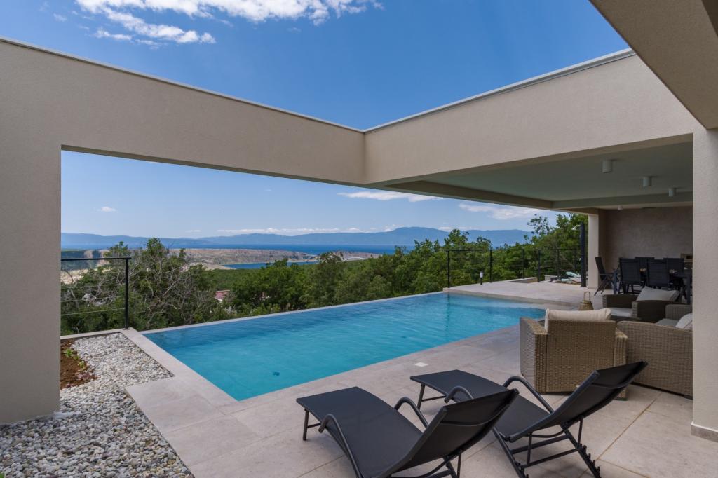 Nowy. W pełni wyposażona nowa willa z basenem o wymiarach 9x4 m znajduje się w Šmrice, w pobliżu turystycznego kurortu Crikvenica. Willa położona jest w cichym miejscu i jest niewidoczna. Z każdego zakątka domu rozpościera się widok na morze, wyspę Krk, wyspę Cres, Istrię, az tarasu na pierwszym piętrze Rijekę i Opatiję. Willa posiada 3 duże sypialnie i łazienkę w każdym pokoju oraz duży salon z kuchnią i jadalnią. Obok basenu znajduje się również kuchnia na świeżym powietrzu z grillem gazowym. Aby dzieci się nie nudziły, przygotowano plac zabaw nr 4, a dla najmłodszych plac zabaw z domkiem i zjeżdżalnią. Dorośli mogą zrelaksować się w siłowni. Obok kuchni znajduje się mały ogródek z przyprawami, które można wykorzystać w kuchni - bazylią, rozmarynem, pomidorkami koktajlowymi... Odległość od piaszczystej plaży w Jadranovo to 4 km. W odległości zaledwie 1 km znajduje się tor kartingowy Bura oraz niezwykle atrakcyjna dla dzieci farma osłów.