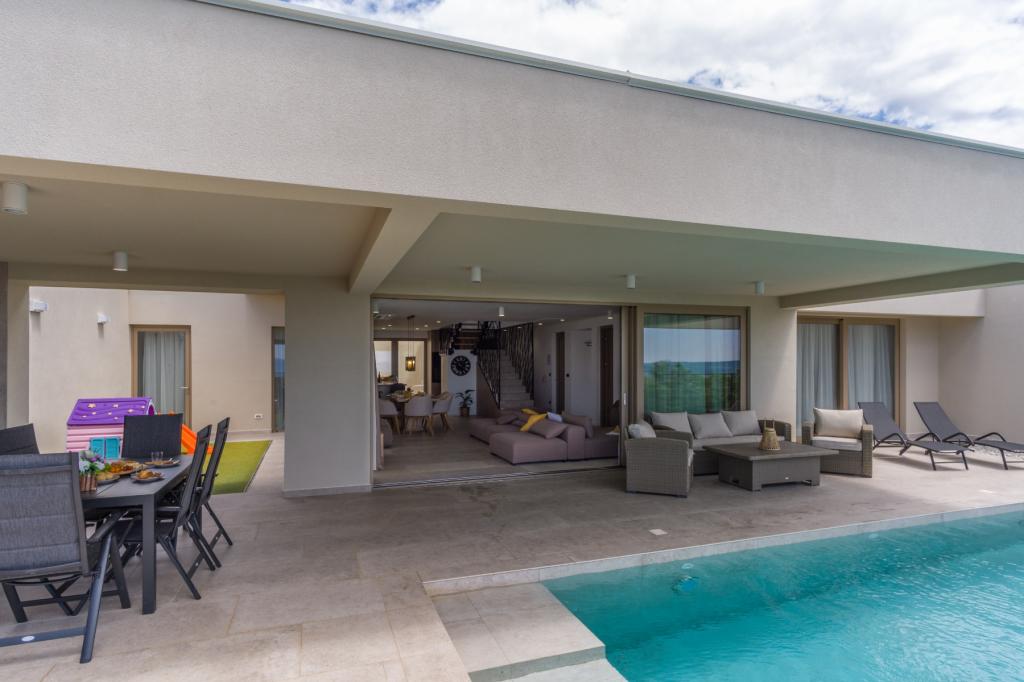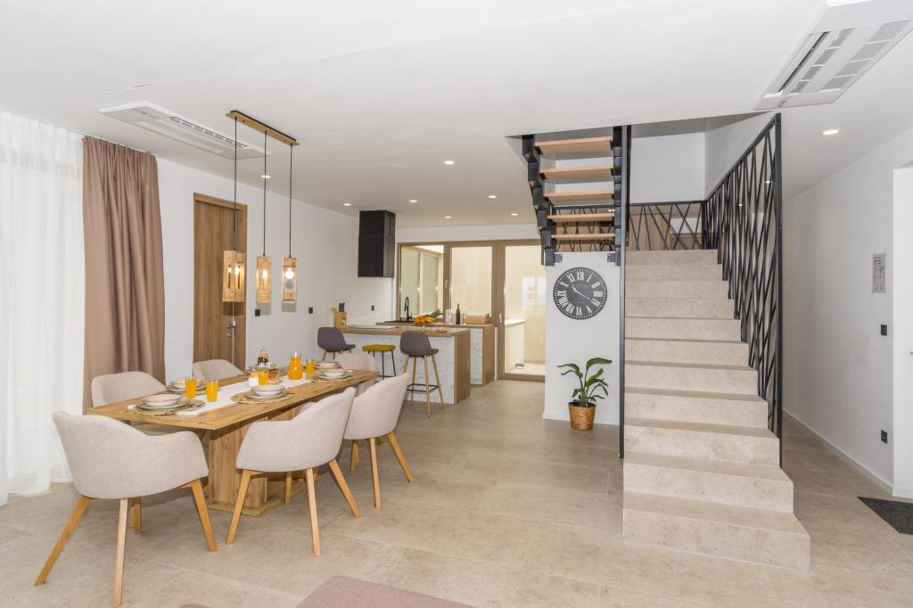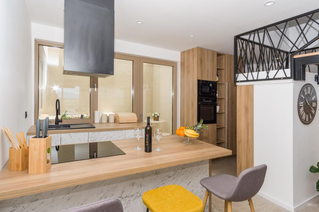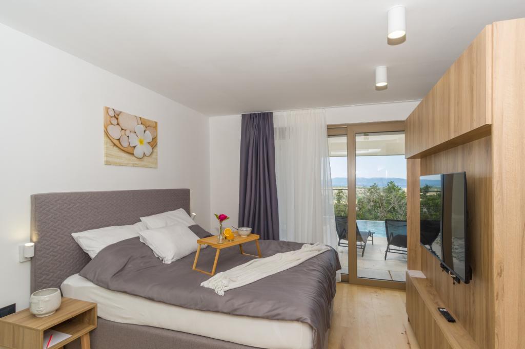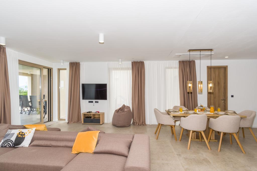 Nowy. W pełni wyposażona nowa willa z basenem o wymiarach 9x4 m znajduje się w Šmrice, w pobliżu turystycznego kurortu Crikvenica. Willa położona jest w cichym miejscu i jest niewidoczna. Z każdego zakątka domu rozpościera się widok na morze, wyspę Krk, wyspę Cres, Istrię, az tarasu na pierwszym piętrze Rijekę i Opatiję. Willa posiada 3 duże sypialnie i łazienkę w każdym pokoju oraz duży salon z kuchnią i jadalnią. Obok basenu znajduje się również kuchnia na świeżym powietrzu z grillem gazowym. Aby dzieci się nie nudziły, przygotowano plac zabaw nr 4, a dla najmłodszych plac zabaw z domkiem i zjeżdżalnią. Dorośli mogą zrelaksować się w siłowni. Obok kuchni znajduje się mały ogródek z przyprawami, które można wykorzystać w kuchni - bazylią, rozmarynem, pomidorkami koktajlowymi... Odległość od piaszczystej plaży w Jadranovo to 4 km. W odległości zaledwie 1 km znajduje się tor kartingowy Bura oraz niezwykle atrakcyjna dla dzieci farma osłów.
