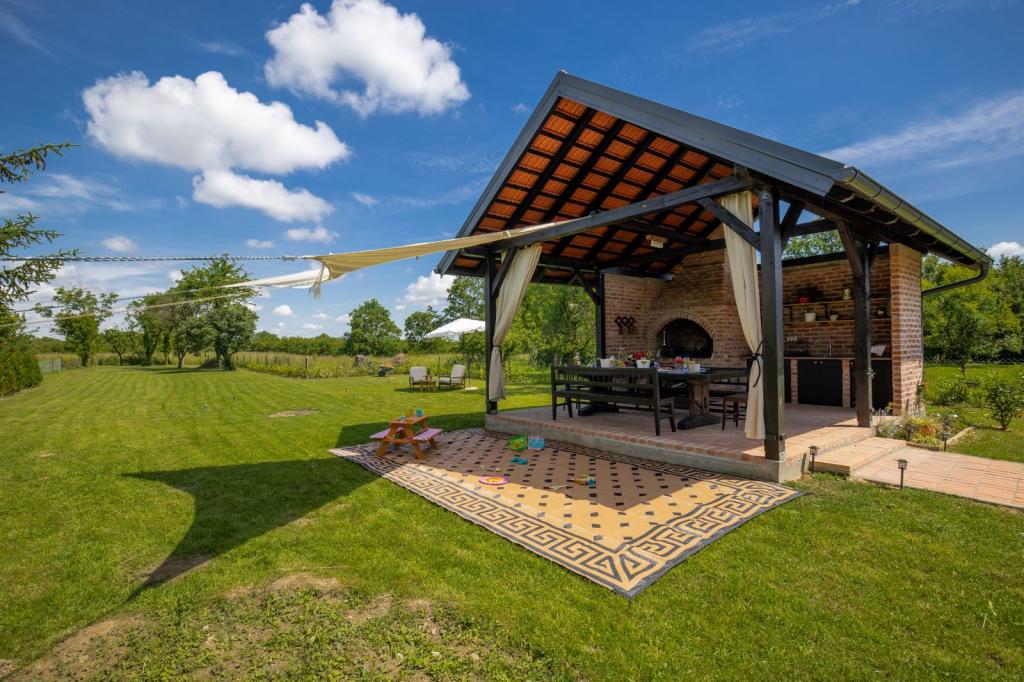 Nieruchomość idealnie nadaje się do organizacji przyjęć na świeżym powietrzu w altanie wyposażonej w grill i piekarnik, lodówkę ogrodową oraz wszystko, czego potrzeba do spotkań towarzyskich i grillowania na świeżym powietrzu. Na życzenie można zamówić dmuchany zamek do zabawy dla dzieci.