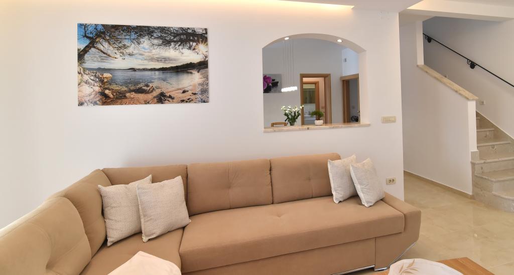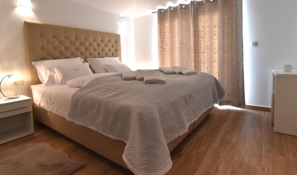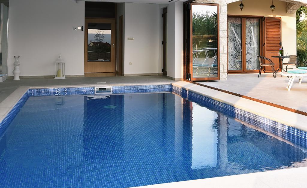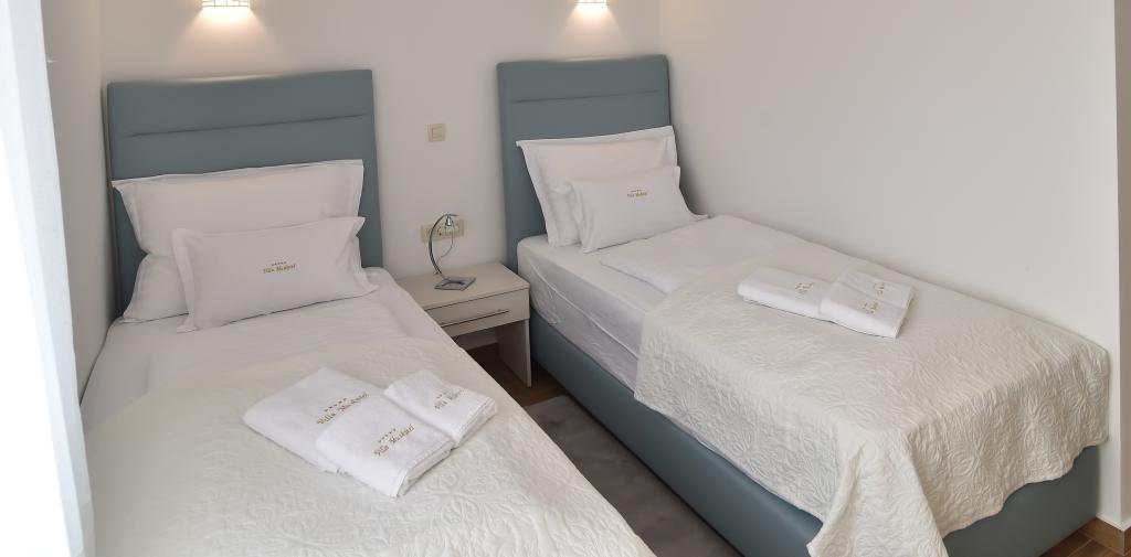 Nowo wybudowana Villa Muskatel ma możliwość ogrzewania i chłodzenia. Podgrzewany basen o powierzchni 21 m2 znajduje się w całkowicie spokojnej okolicy, w otoczeniu ogrodu oliwnego, 10 minut od centrum, 15 minut od morza i 10 minut od sklepu. Do dyspozycji 4 pokoje, każdy z łazienką, TV, WI FI, balkonem. W pełni wyposażona kuchnia z lodówką, winiarnią, zmywarką, kuchenką mikrofalową, piekarnikiem, ekspresem do kawy. Na parterze znajduje się jadalnia i pokój dzienny z TV, WI FI. W piwnicy znajduje się bilard, piłkarzyki, orbitrek, WC oraz pralka i suszarka. Przy basenie znajduje się taras z leżakami. W willi znajduje się grill na świeżym powietrzu ze stołem i krzesłami, a także stół do tenisa stołowego. Willa posiada również bezpłatny zadaszony parking. Obok parkingu znajduje się przechowalnia na 8 rowerów.