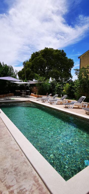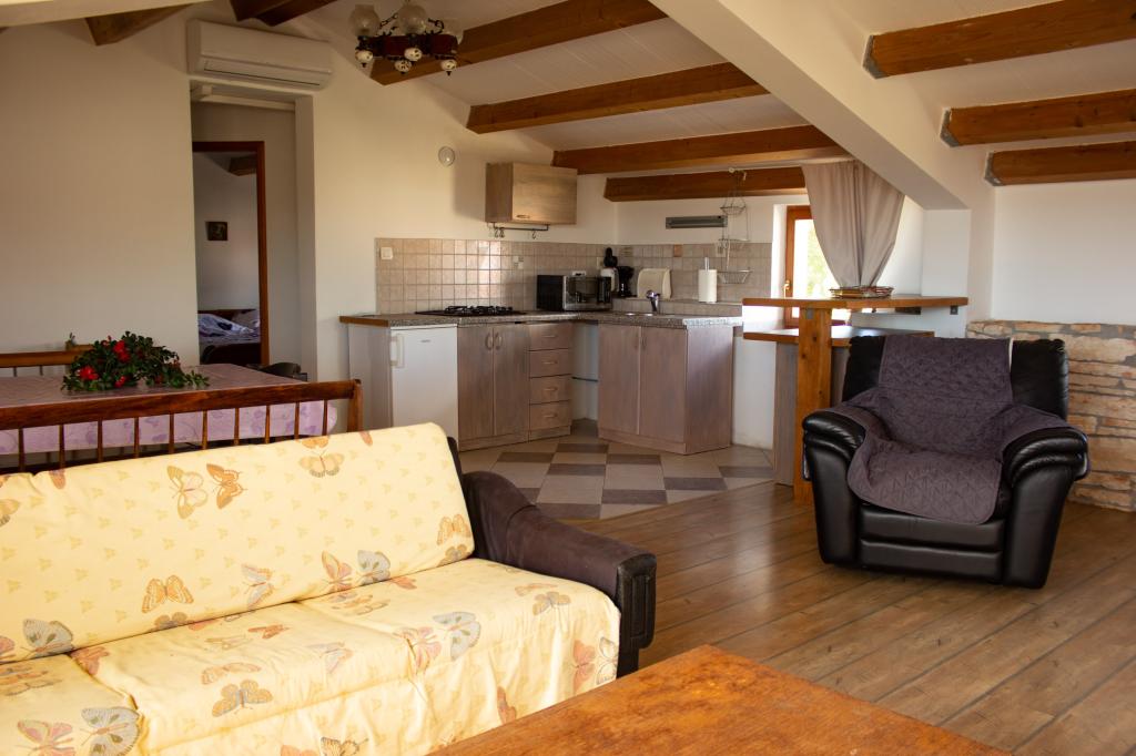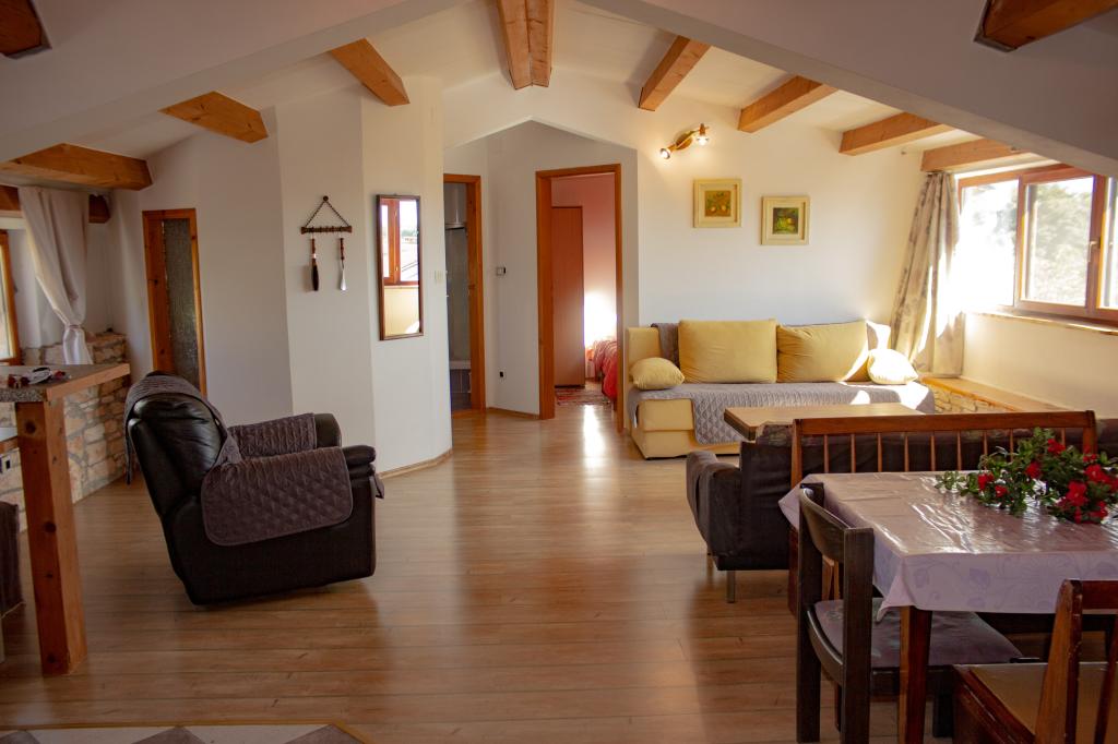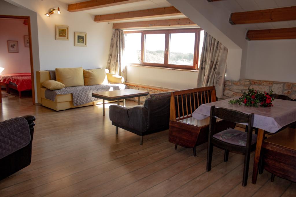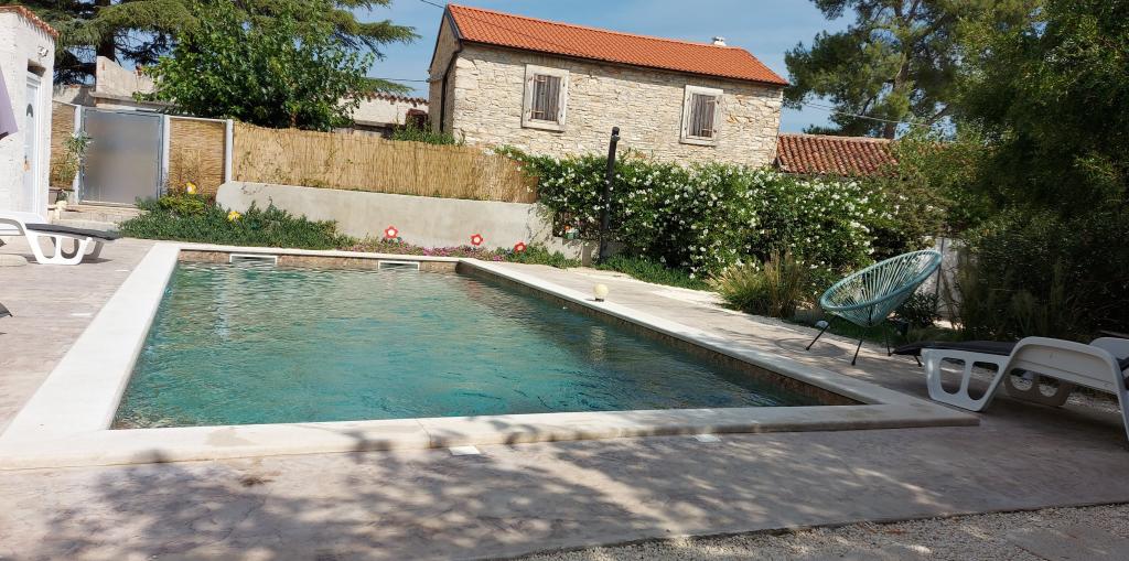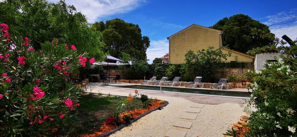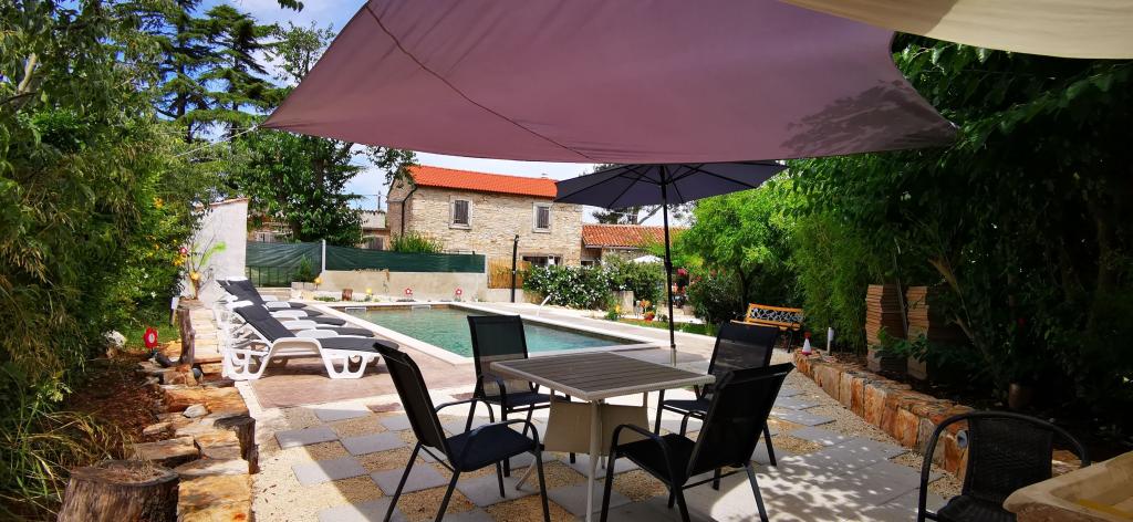 Dom wakacyjny położony jest na wschodnim wybrzeżu półwyspu Istria, w spokojnej wiosce Muntic w pobliżu lotniska w Puli, ale bez hałasu z lotniska. Dom wakacyjny z apartamentami został zbudowany z kamienia i całkowicie odnowiony w 2012 roku i posiada trzy duże apartamenty, całkowicie oddzielone i wyposażone. Przed domem znajduje się podwórko z kamiennym stołem, a naprzeciwko duży ogrodzony ogród z basenem, miejscem do opalania, cieniem od drzew, stołem, grillem, parkingiem...