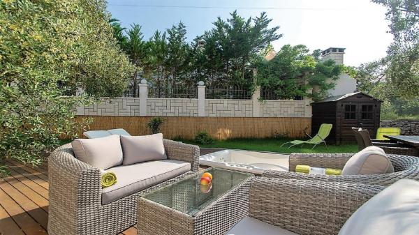 Nowo wybudowany dom w bezpośrednim sąsiedztwie morza (zatoka Račišće, Lumbarda). Dom zbudowany jest z najwyższej jakości materiałów naturalnych (kamień, drewno, ceramika) i wyposażony w nowoczesną technologię (instalacja solarna do podgrzewania wody, najwyższej jakości klimatyzatory inwerterowe we wszystkich pomieszczeniach), dzięki czemu przebywanie w nim jest komfortowe nawet w czasie najgorętsze dni. Otaczają go wielowiekowe drzewa oliwne, które nadają przestrzeni wyjątkowej atmosfery i uroku. Dom składa się z parteru, na którym znajduje się otwarta przestrzeń salonu, kuchni oraz przestronnej jadalni z kominkiem (grill), sypialni z łóżkiem małżeńskim oraz łazienki. Parter wychodzi na ogród i taras z tarasem z drewna tropikalnego i jacuzzi, dzięki czemu przestrzeń gwarantuje prywatność i relaks. Na pierwszym piętrze znajduje się duża sypialnia z podwójnym łóżkiem dla dwóch osób i własnym dużym tarasem z widokiem na morze i Pelješac. Z galerii prowadzi się do luksusowej łazienki z dużą wanną i balkonem. DO WYNAJĘCIA CAŁOŚĆ WILLI, BEZ INNYCH GOŚCI