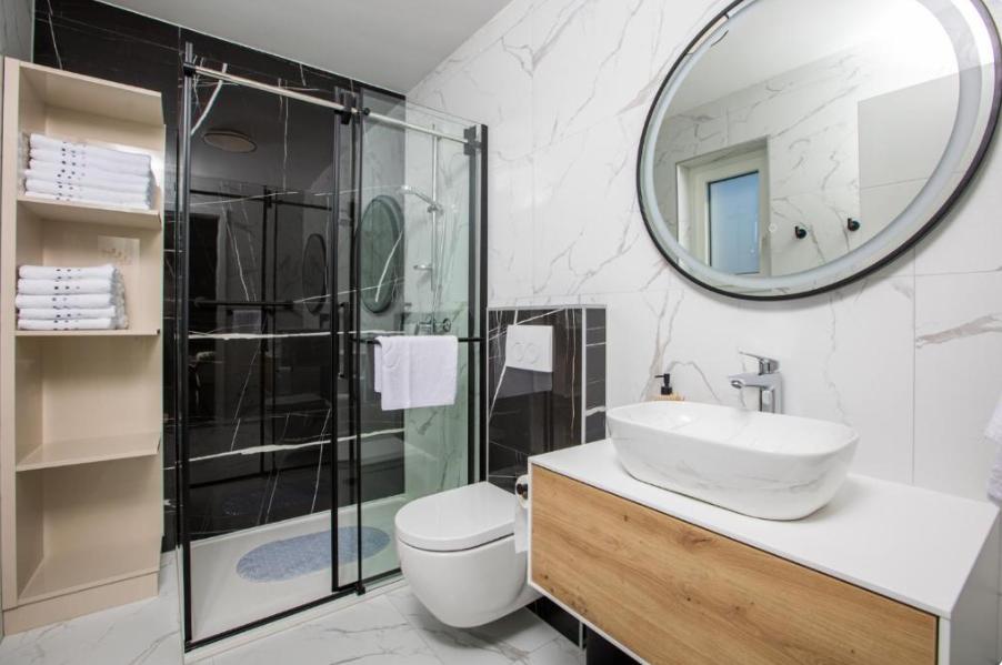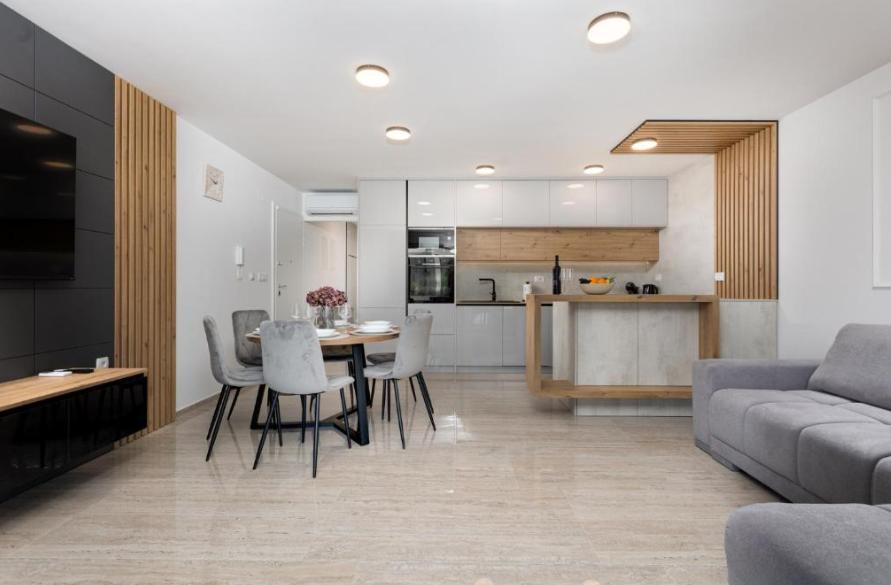 Apartament Aura znajduje się w miejscowości Malinska na wyspie Krk, zaledwie 300 metrów od morza i jest idealnym miejscem na relaksujący wypoczynek. Nowoczesny i przestronny apartament składa się z trzech sypialni, salonu, w pełni wyposażonej kuchni oraz balkonu i tarasu z widokiem na morze. Goście mają do dyspozycji Wi-Fi, klimatyzację, prywatny basen i parking. W pobliżu znajdują się liczne plaże i atrakcje, takie jak centrum Krku i Zamek Krk (13 km), klasztor Košljun (16 km) i marina Punat (17 km), co sprawia, że ta lokalizacja oferuje idealne połączenie spokoju i udogodnień.