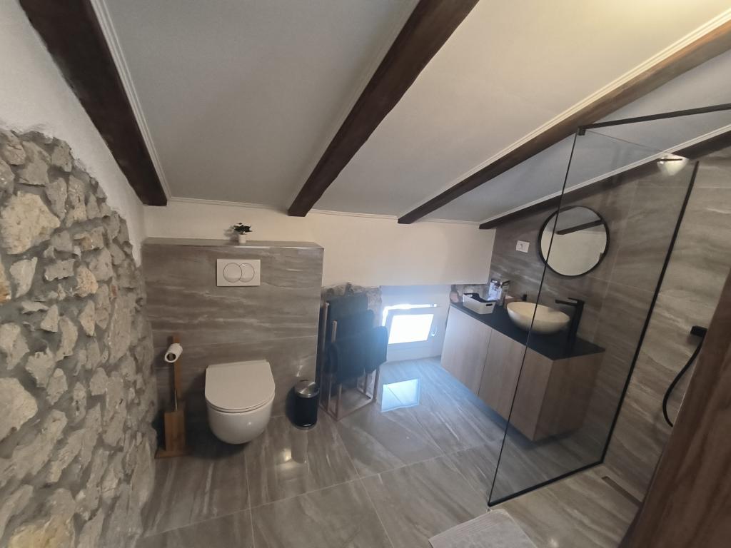 Villa Kristina to odnowiona i nowocześnie urządzona willa o powierzchni 140 m2, która może pomieścić 6-8 osób. Obiekt położony jest w spokojnej wiosce Gabonjin, w pobliżu miasta i centrum turystycznego Malinska. Willa ma dwa piętra i oferuje gościom kuchnię z jadalnią, salon i łazienkę na parterze oraz 3 klimatyzowane sypialnie z podwójnymi łóżkami i prywatnymi łazienkami z prysznicami z hydromasażem na piętrze. Przed domem znajduje się ogród o powierzchni 200 m2, gdzie goście mogą korzystać z podgrzewanego basenu o powierzchni 30 m2 lub przygotowywać posiłki na grillu. Na podwórzu znajduje się również prysznic zewnętrzny. W cenę wliczona jest klimatyzacja i internet. Na terenie obiektu znajdują się 3 miejsca parkingowe.