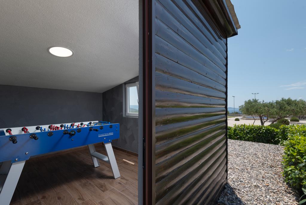 Opłata jest wliczone w cenę.Basen (32 m²), jacuzzi, sauna (fińska), 2 prysznice zewnętrzne, kort do padla, boisko do koszykówki, boisko do bule, minigolf, siłownia na świeżym powietrzu, tenis stołowy, piłkarzyki, rzutki, bilard, plac zabaw dla dzieci, 2 kominki zewnętrzne, piwniczka z winami, letnia kuchnia na świeżym powietrzu i bar na świeżym powietrzu. Oprócz udogodnień oferujemy naszym gościom drinki powitalne i upominki.