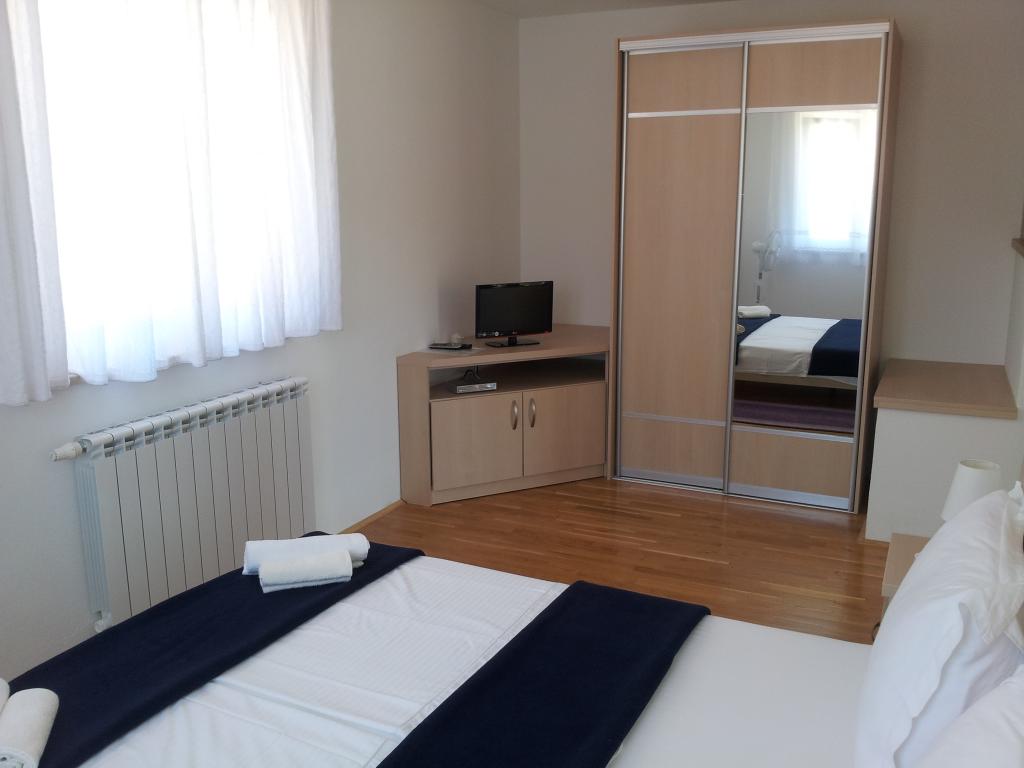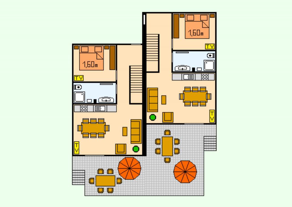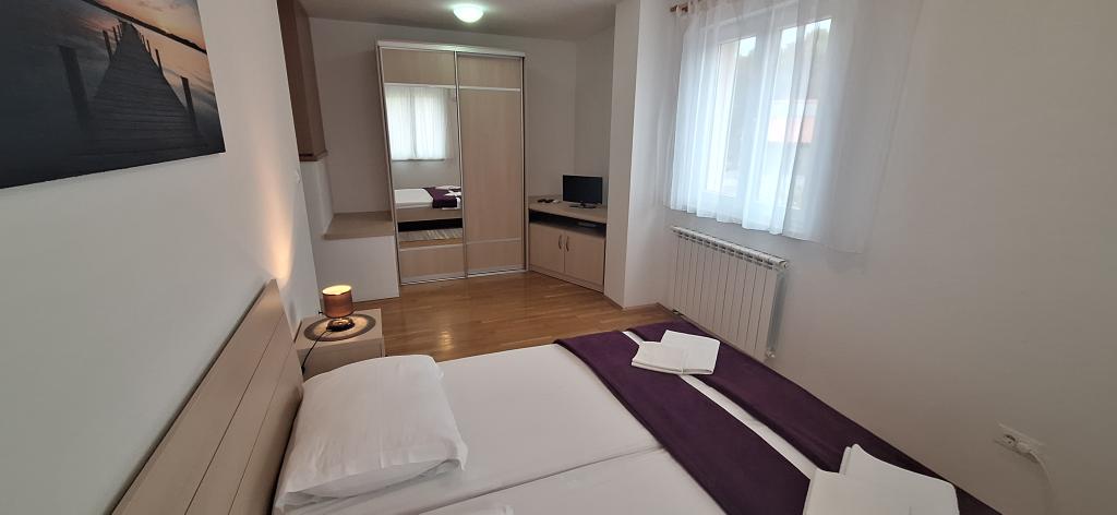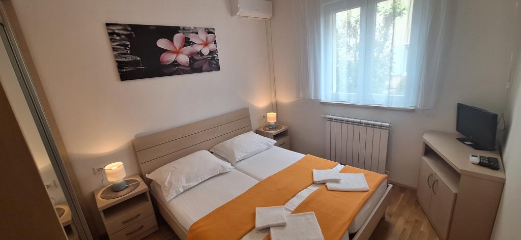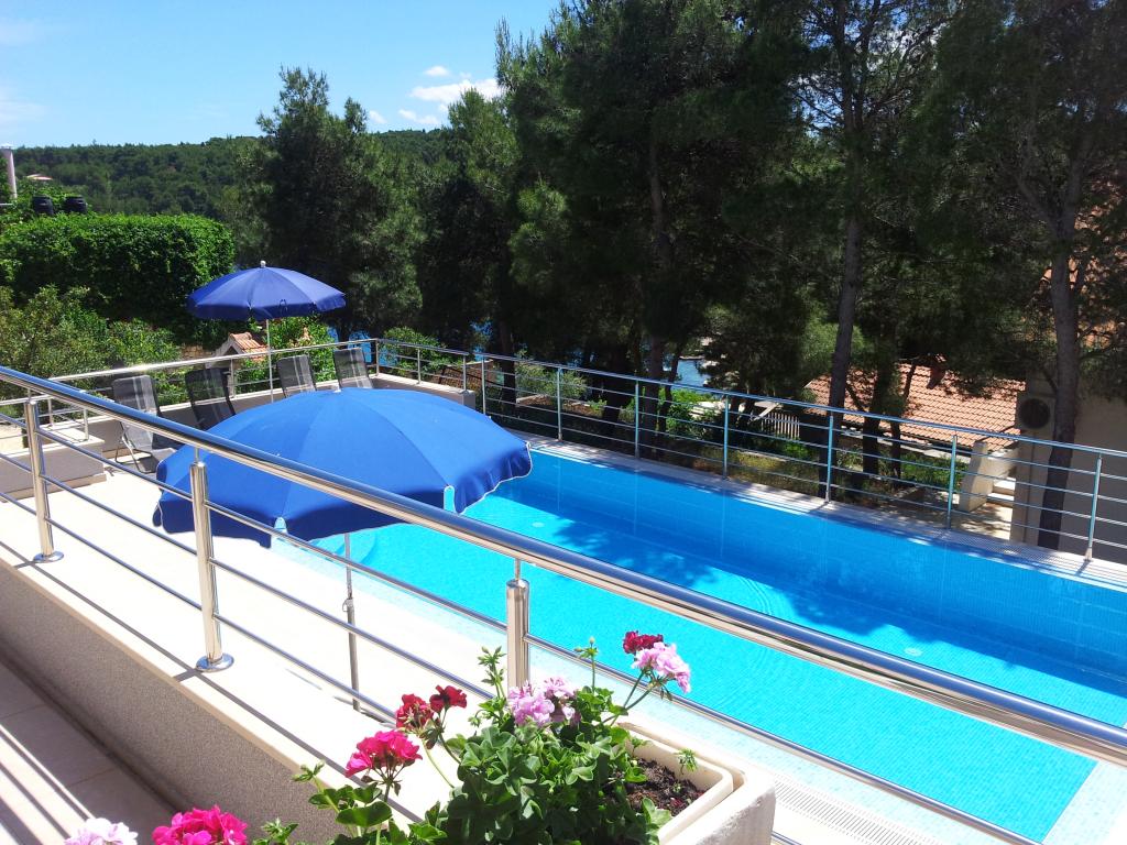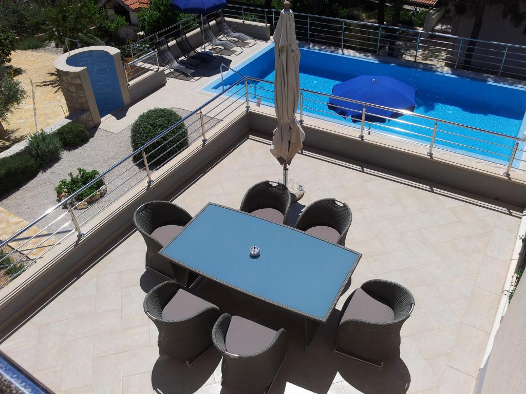 The detached holiday villa has a heated private pool and is located in the quiet and crystal-clear Osibova Bay, just 30 m from a small pebble beach. The house includes 4 kayaks and 8 bicycles. In the town of Milna, 2 km away, you'll find everything you need. On the way there, you'll find public sports fields (tennis, football, basketball and beach volleyball) that can be used. The modernly equipped villa consists of two identical residential units. In total, it features 6 bedrooms, 7 bathrooms, 2 living rooms with integrated kitchens, and a large shared sun terrace. In the basement, you'll find a 130 m² recreation room with games and fitness equipment, including billiards, table tennis and foosball. Facilities include Wi-Fi, private parking and a garden with a barbecue. The house is fully air-conditioned (each room with individually controllable air conditioning).