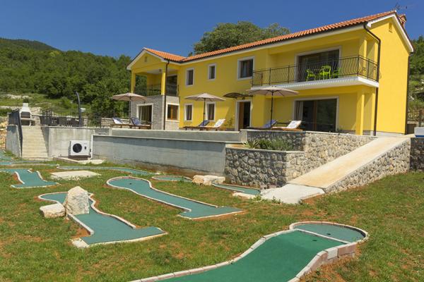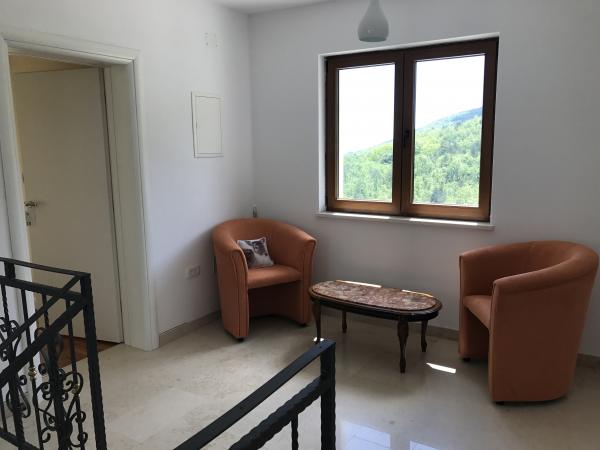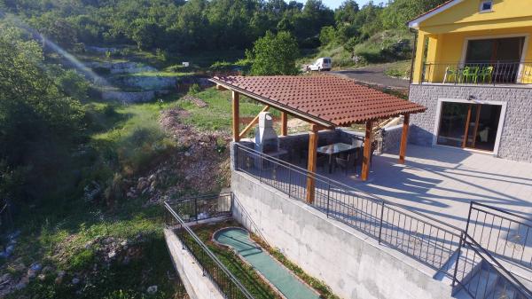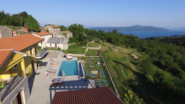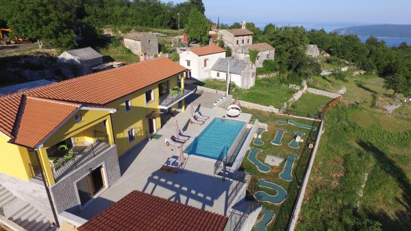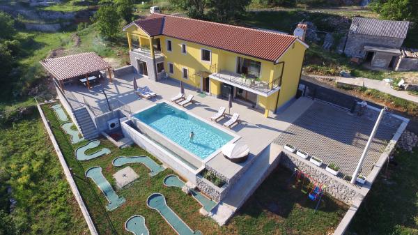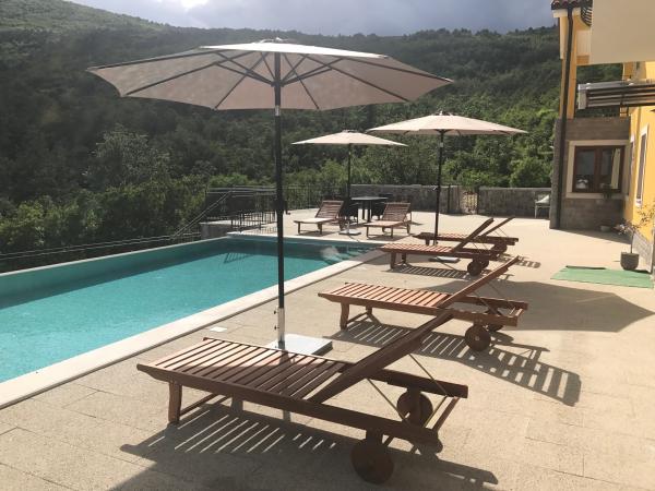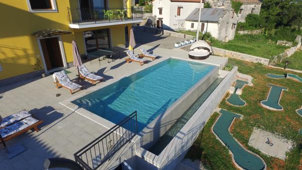 Villa jest zasadniczo dostarczany z podgrzewany basen przelewowy 10 x 4 m. Dom może pomieścić 6 -8 ludzi. Ma whillpool i sauny. Posiada 2 garaże. Teren wokół basenu jest utwardzona i na basenie jest minigolf z 9 dołkami. Dom posiada ogród 6000 m2, gdzie można uzyskać pobić świeże owoce i warzywa. Czy Moscenicka Draga znajduje się 10 minut jazdy samochodem. W pobliżu znajduje się wiele szlaków leśnych dla turystyki pieszej i rowerowej. Dom położony jest w niewielkiej miejscowości 4 domów bez lokatorów
