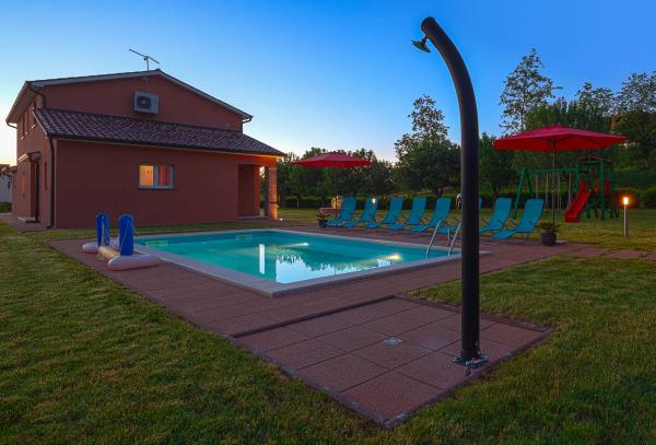 Ta nowoczesna willa znajduje się w małej i spokojnej miejscowości Škropeti, zaledwie 7 km od Motovun. Villa Doria na dwóch piętrach i przestronnym ogrodzie o powierzchni 2500 m nadaje się na niezapomniane wakacje dla 8 osób. Willa ma 4 sypialnie, 3 łazienki, klimatyzowany salon z kuchnią i pokój zabaw. Na zewnątrz znajduje się przestronny park z placem zabaw dla dzieci, meble ogrodowe z grillem i ładny basen o powierzchni 24 m2. Otaczające domy są wystarczająco daleko, aby zagwarantować prywatność i relaks na wakacjach. Delikatnie urządzone w nowoczesnym stylu z dbałością o szczegóły, Villa Doria jest idealnym miejscem na niezapomniane wakacje ...