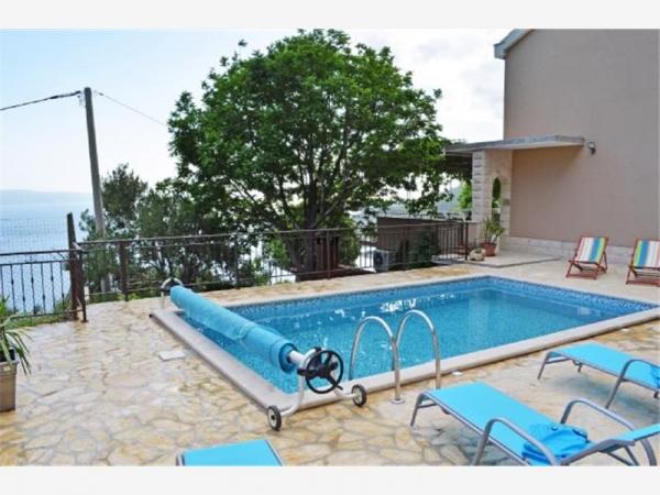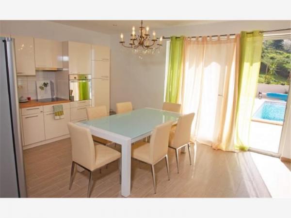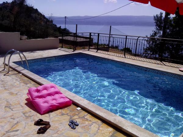 Dom jest nowoczesny iw pełni wyposażony. W domu znajduje się basen, z którego nasi goście mogą odświeżyć i zrelaksować się w gorące letnie dni. Obok basenu w zadaszonej części grill z dużym drewnianym stołem i ławkami. Posiada on odkryty tuš.Lijepo się towarzysko. Z pośród domu jest duży taras z 100 metrów kwadratowych, który oferuje wspaniały widok na morze, miasta, góry, rzeki Cetina, wysp, na Forticu determinacji. To naprawdę piękne. To jest tylko 20 minut spacerem do miasta, a z samochodem w 5 minut. W każdym przypadku masz spokojne i wygodne miejsce, aby cieszyć się z rodziną i przyjaciółmi, a przez 5 minut jesteś w centrum zainteresowania miastem, które oferuje wszystko, co potrzebne do wypoczynku jakości. Ponadto, jeśli chcesz przyjść z przyjaciółmi z nas i odpocząć trochę nikt nie będzie przeszkadzać bo dom jest sam. Tuż przed, masz zadaszony garaż. Dom jest na dwóch piętrach. Dole ma 100 metrów kwadratowych, a na najwyższym piętrze 50. piętrze znajduje się balkon, z którego nie jest również widok na wszystkich. Wszystko jest na wyciągnięcie ręki. Obiekt jest taka sama