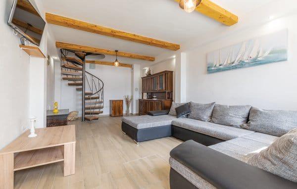Dom wakacyjny w zabudowie bliźniaczej położony jest na wzgórzu w małej miejscowości Stanići niedaleko Omiša. Ma trzy piętra połączone wewnętrznymi i zewnętrznymi schodami. Obok pokoju na drugim piętrze znajduje się aneks kuchenny. Z tarasu roztacza się zapierający dech w piersiach widok na morze i wyspy, a piękne kamieniste plaże są oddalone o zaledwie 450 metrów. W oddalonym o 5 km Omišu znajdą Państwo obiekty i rozrywkę dla osób w każdym wieku. Szczególną atrakcją tego obszaru jest rzeka Cetina, na której można uprawiać rafting i inne sporty wodne.