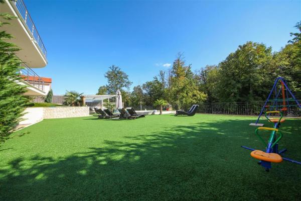 Willa przekroczył wszystkie nasze życzenia! wszystko bardzo nowoczesny, czysty i jacuzzi było ogromne! Trawnik jest niestety sztuczna murawa, ale łatwe w pielęgnacji. Niestety, dom jest na wzgórzu, więc oczywiście na piechotę, ale jest bardzo długa. Samochodem nie ma problemu, a taksówki są bardzo przystępne. Przy okazji, bardzo zalecane jest restauracja Roko w Opatija. Jedzenie było zawsze bardzo dobre!