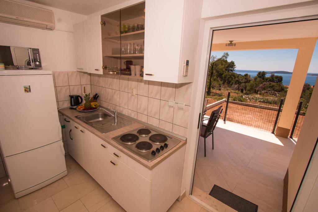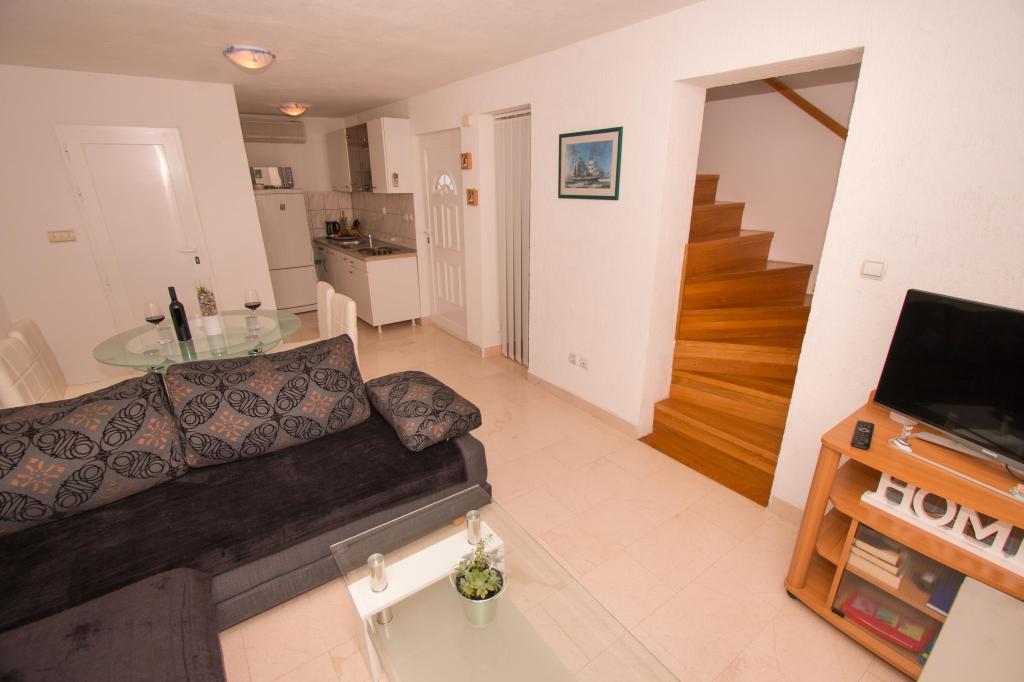 Dom wakacyjny "Miris Bora" znajduje się w Orebic w spokojnej części wsi Ruskovic. Znajduje się w pobliżu szlaku turystycznego u podnóża wzgórza św. Eliasza. Z tarasu domu roztacza się piękny widok na kanał Peljesac i pobliskie wyspy. Zapach Boru to idealne miejsce dla każdego, kto szuka odpoczynku od miejskiego zgiełku i codziennego stresu. Dom składa się z parteru i pierwszego piętra i jest wyposażony w nowoczesną łazienkę, małą toaletę, dwie sypialnie, kuchnię, salon i dwa tarasy. Goście mają dostęp do kina domowego z ponad 1000 kanałów telewizyjnych we wszystkich językach oraz ponad 2000 filmów i seriali. Jeden taras wyposażony jest w meble rattanowe, a drugi w stół jadalny.