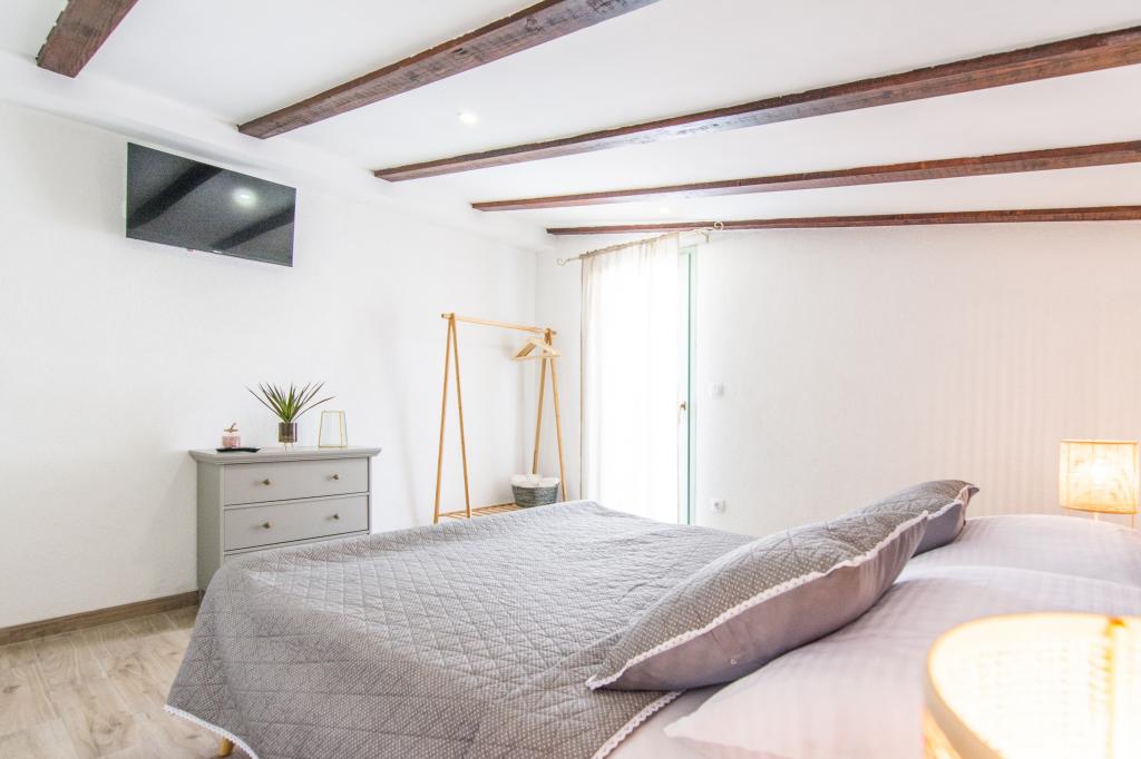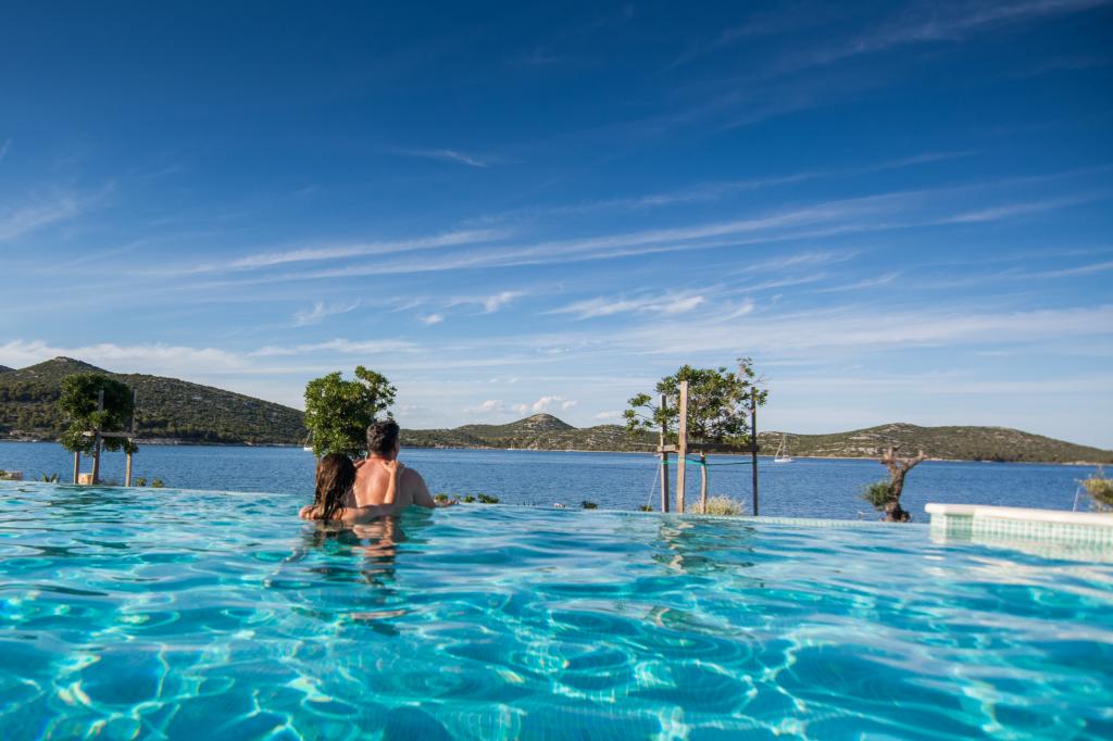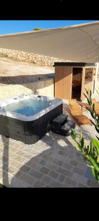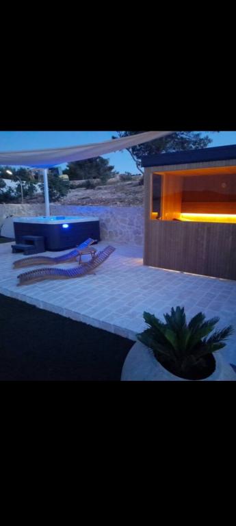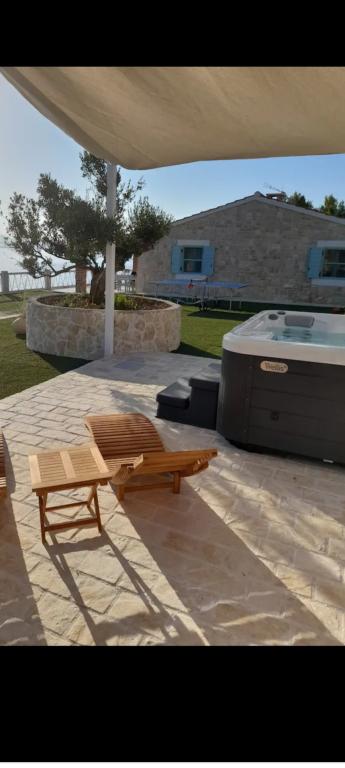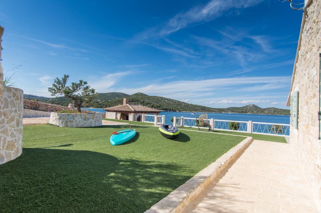 Rustykalna Villa Gagliana znajduje się na wyspie Žižanj, na południowy zachód od wyspy Pašman. Nie ma bezpośredniego połączenia z lądem, ale gospodarze z pewnością są dostępni do transportu i dostawy artykułów spożywczych. Willa oferuje pełen spokój i relaks nad samym morzem oraz basen o powierzchni 40 m2 wypełniony słodką wodą. Wnętrze willi jest klimatyzowane i wyposażone w 2 sypialnie, z których jedna to sypialnia dwuosobowa, a druga pokój dziecięcy z dwoma łóżkami piętrowymi i jednym łóżkiem pojedynczym, w pełni wyposażona kuchnia z salonem i toaletą. W willi znajduje się kolejny pokój gościnny z wentylatorem i osobnym wejściem oraz podwójna łazienka (2x umywalki, 2x toalety, 2x prysznice łazienkowe). Na całkowicie ogrodzonym podwórku znajduje się zadaszony komin z grillem i prostym miejscem do siedzenia. Zrelaksuj się i ciesz się jacuzzi i sauną na świeżym powietrzu. Jeśli chodzi o sport, willa posiada kajak i deskę do wiosłowania, co pozwala gościom cieszyć się i zwiedzać wyspę i wybrzeże.