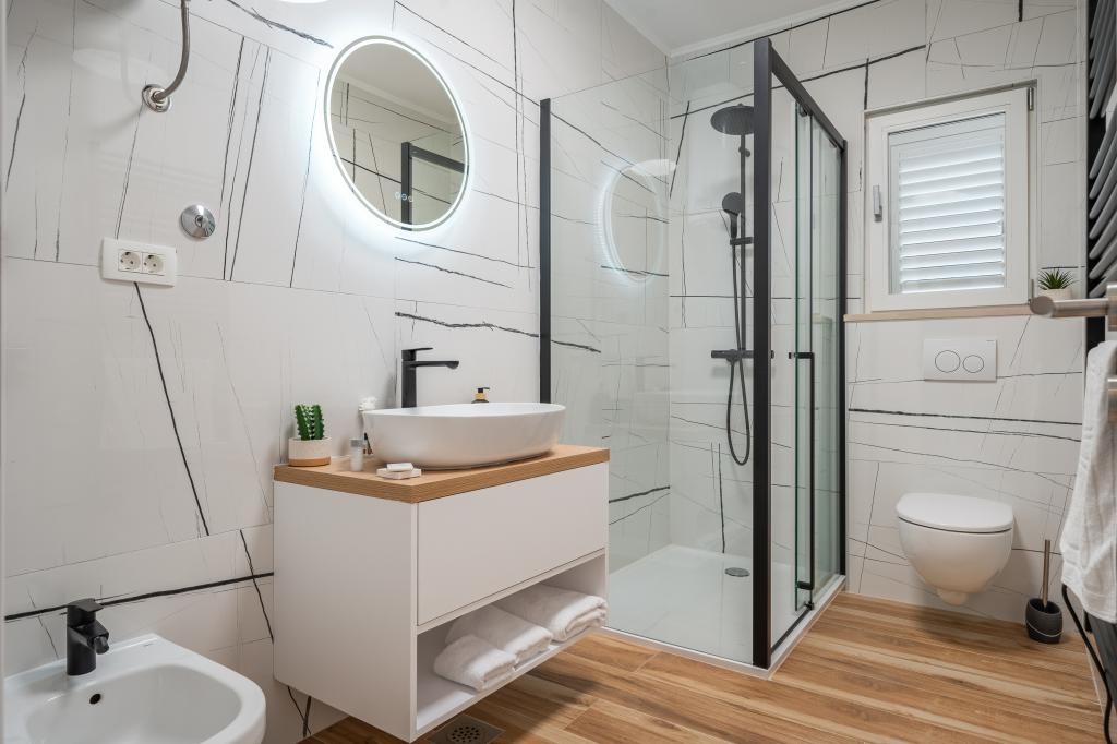 W pełni i nowocześnie wyposażona willa, w której możesz zatrzymać się tylko Ty, z podgrzewanym jacuzzi, położona 3 m od morza i 30 m od plaży. Willa posiada taras z jadalnią na świeżym powietrzu i prywatnym kominkiem, 4 pokoje o powierzchni 15 m², wszystkie klimatyzowane, z pięknym widokiem i dostępem do balkonu. Na dachu znajduje się taras o powierzchni 110 m² z prysznicem na świeżym powietrzu, podgrzewanym jacuzzi oraz częścią wypoczynkową i towarzyską. Z tarasu i balkonu roztacza się piękny widok na zatokę i miasto. Willa oferuje bezpłatne Wi-Fi i bezpłatny prywatny parking. Kuchnia jest wyposażona we wszystkie sprzęty AGD. Willa znajduje się 32 km od wodospadu Kravica. 42 km od willi znajduje się Góra Objawień w Medziugorju, 10 km od willi znajdują się Jeziora Bačinska i ujście Neretwy, idealne dla surferów.