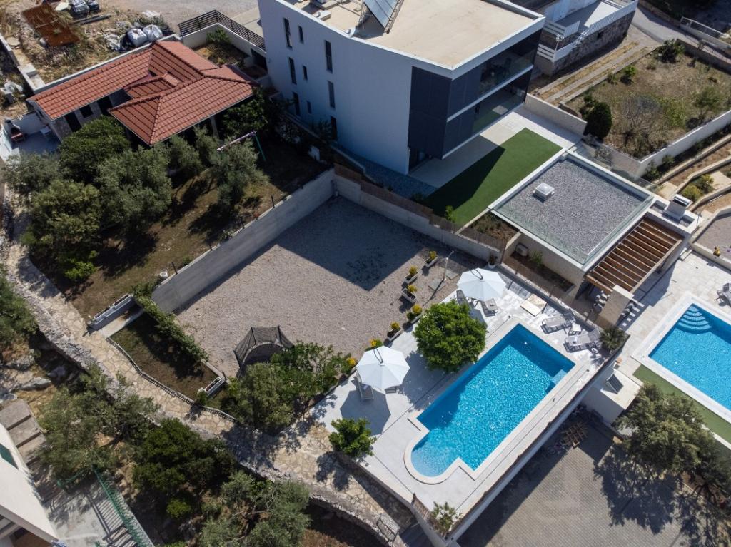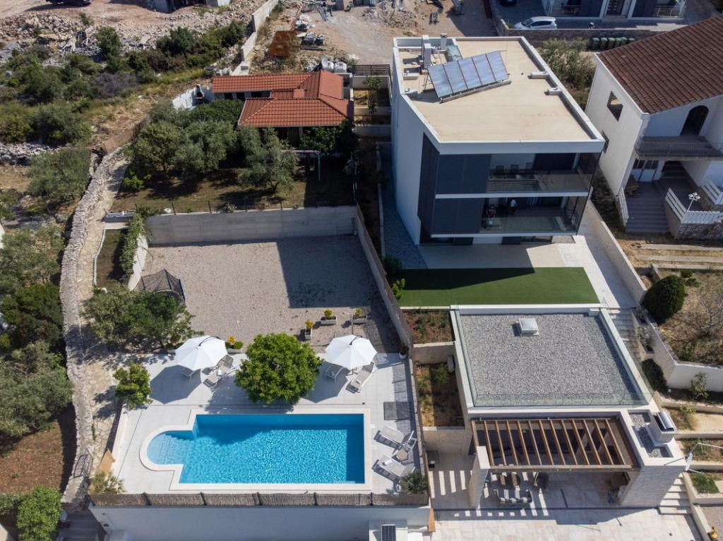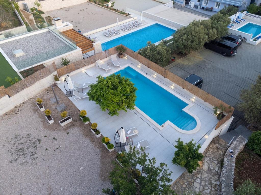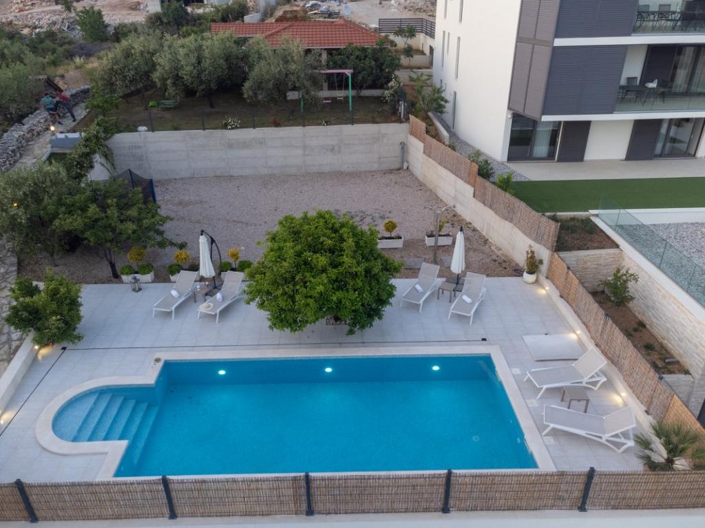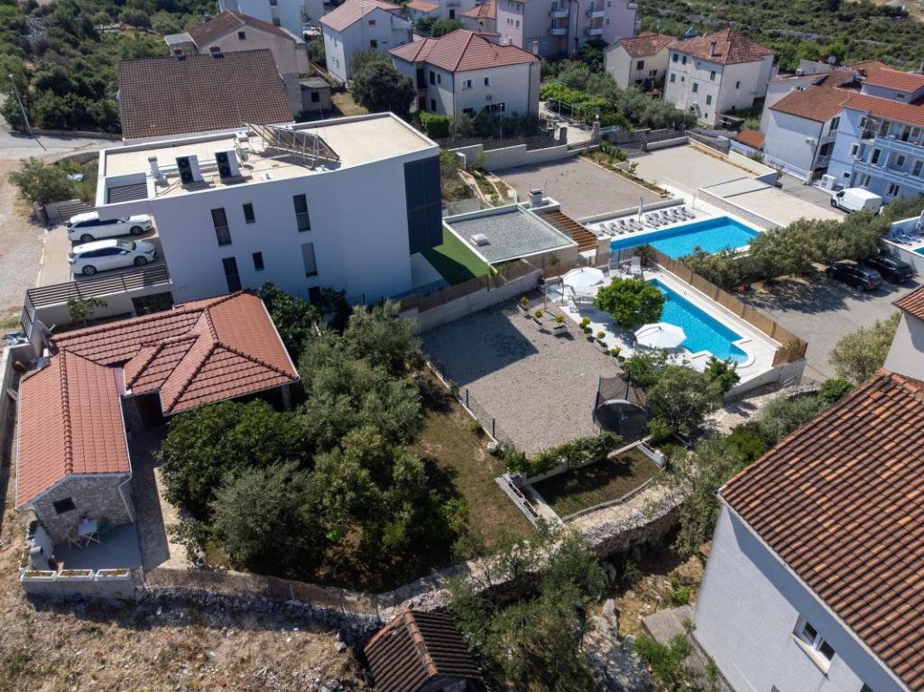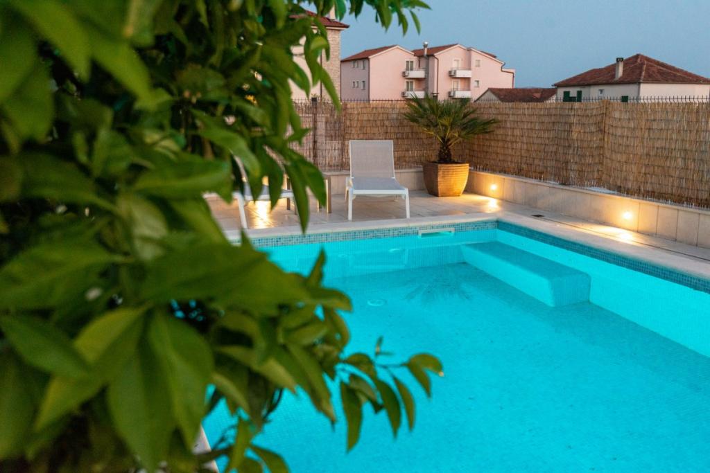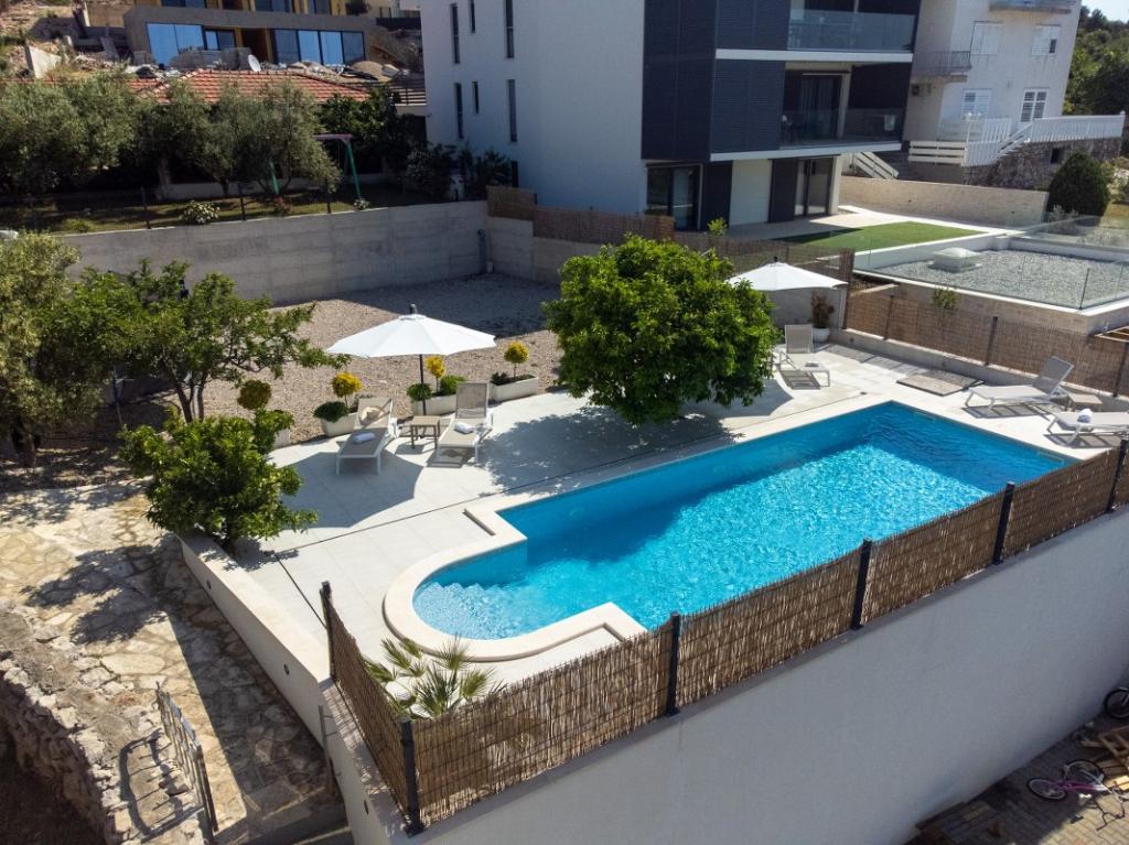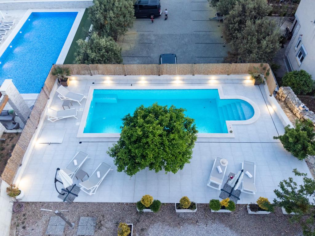 Sun Gardens to uroczy dom do wynajęcia, położony na przedmieściach Szybenika, Podsolarsko, zaledwie 1 km od popularnego parku Amadria. Dom ten, ukryty wśród drzew oliwnych, posiada 2 sypialnie, łazienkę, duży ogród i plac zabaw dla dzieci oraz dużą jadalnię i kuchnię, zlokalizowane w przeszklonej przestrzeni, idealne na wieczorne spotkania. Największym plusem jest duży prywatny basen i miejsce do opalania umożliwiające chwile relaksu.