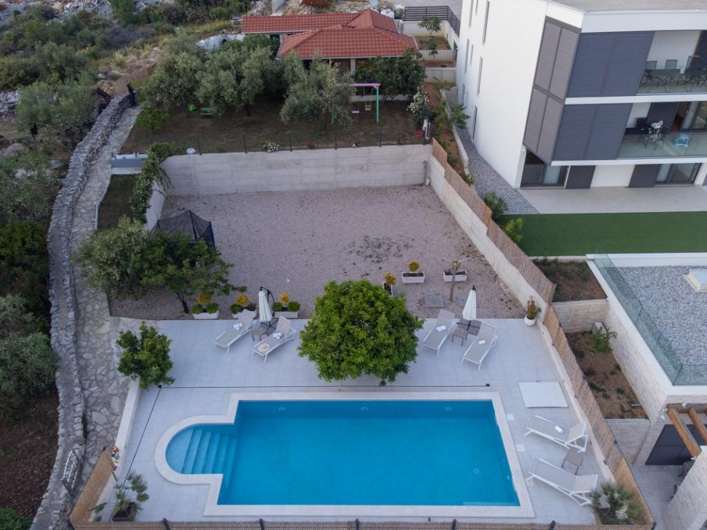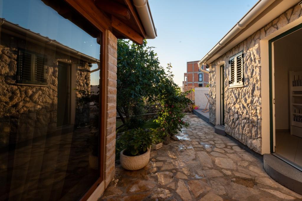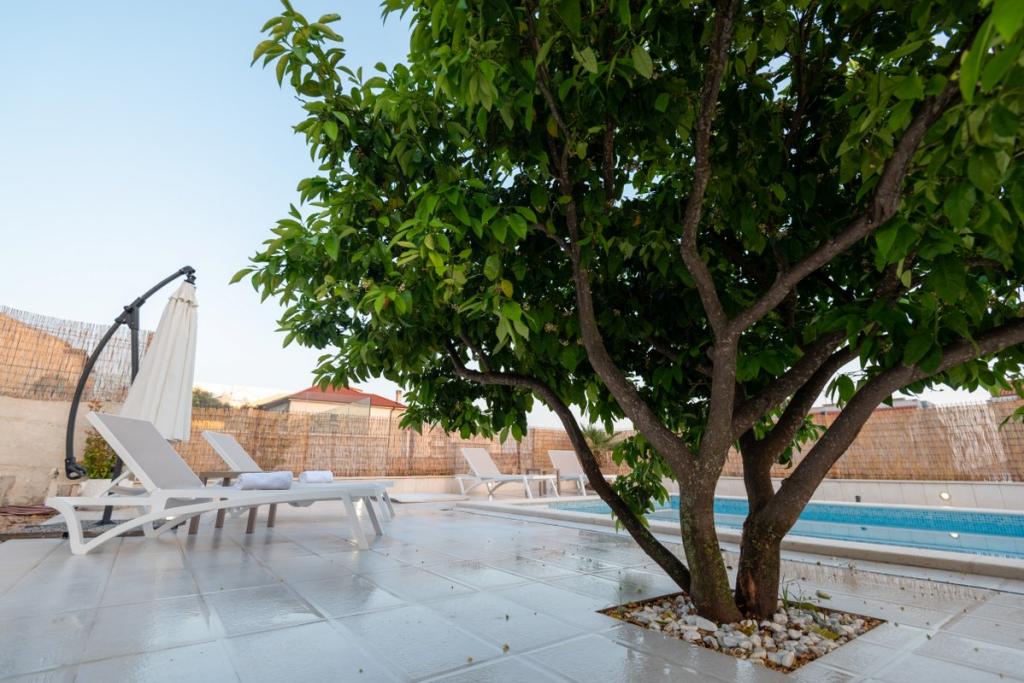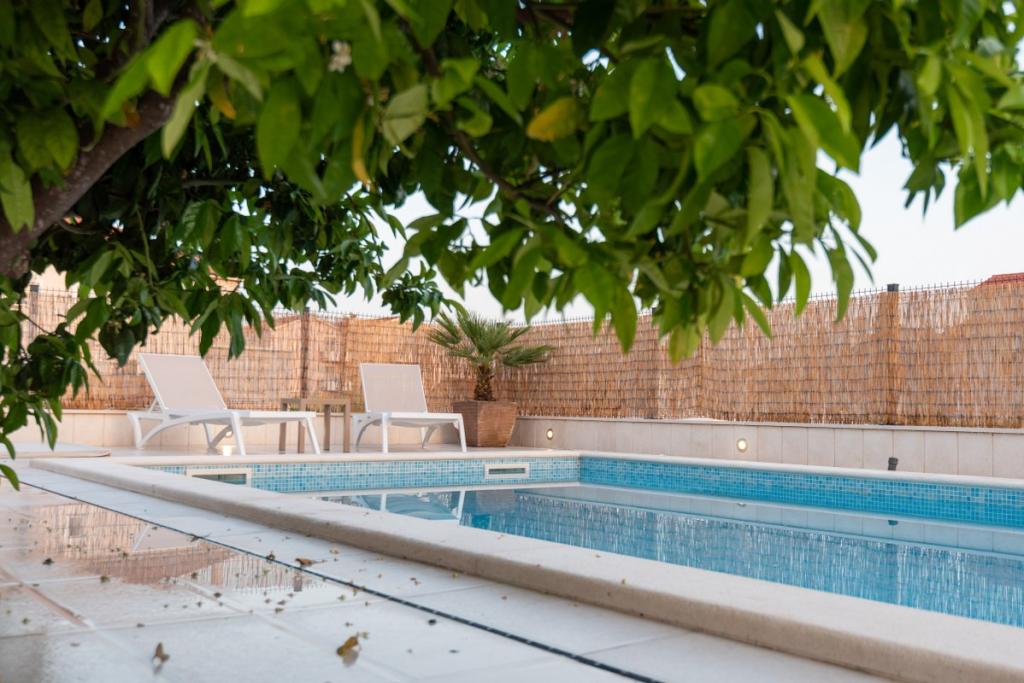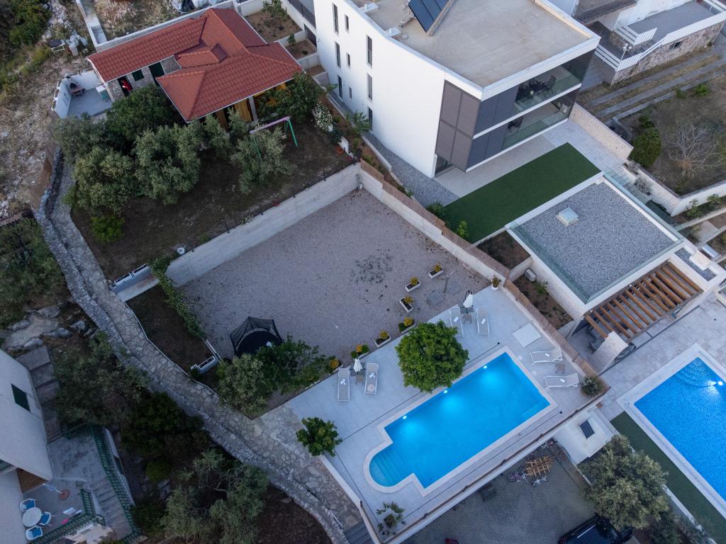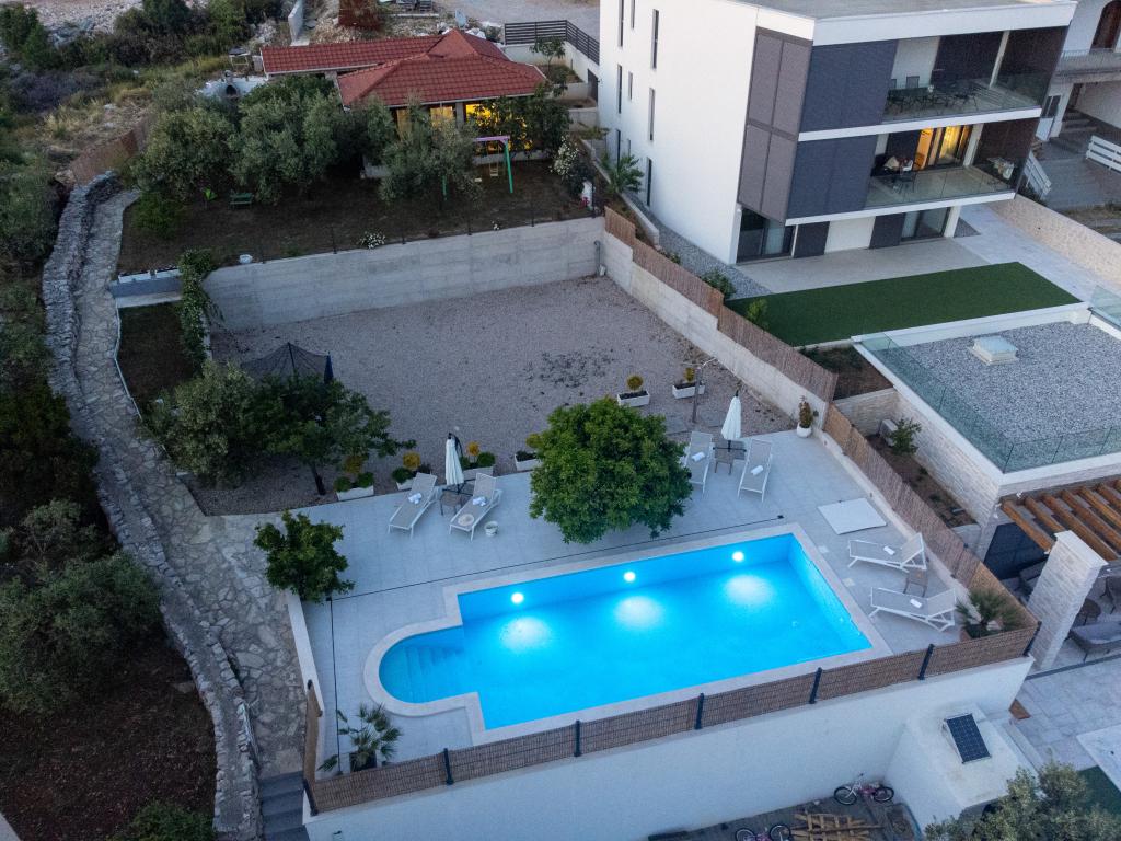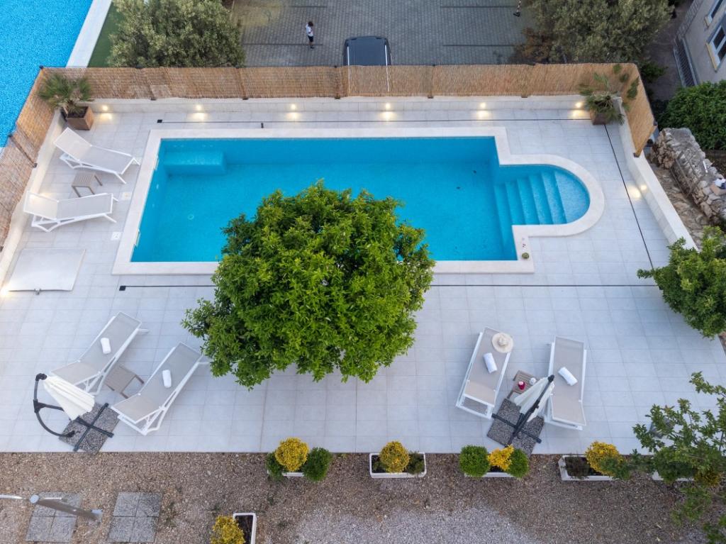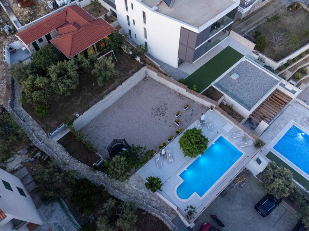Sun Gardens to uroczy dom do wynajęcia, położony na przedmieściach Szybenika, Podsolarsko, zaledwie 1 km od popularnego parku Amadria. Dom ten, ukryty wśród drzew oliwnych, posiada 2 sypialnie, łazienkę, duży ogród i plac zabaw dla dzieci oraz dużą jadalnię i kuchnię, zlokalizowane w przeszklonej przestrzeni, idealne na wieczorne spotkania. Największym plusem jest duży prywatny basen i miejsce do opalania umożliwiające chwile relaksu.