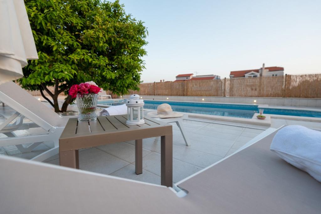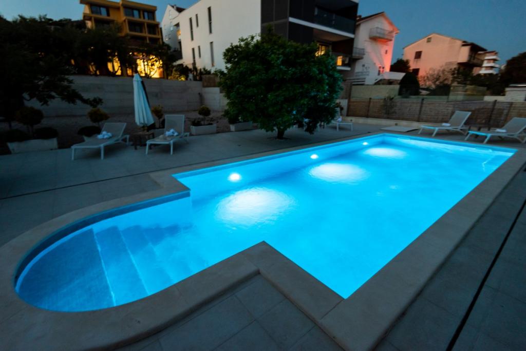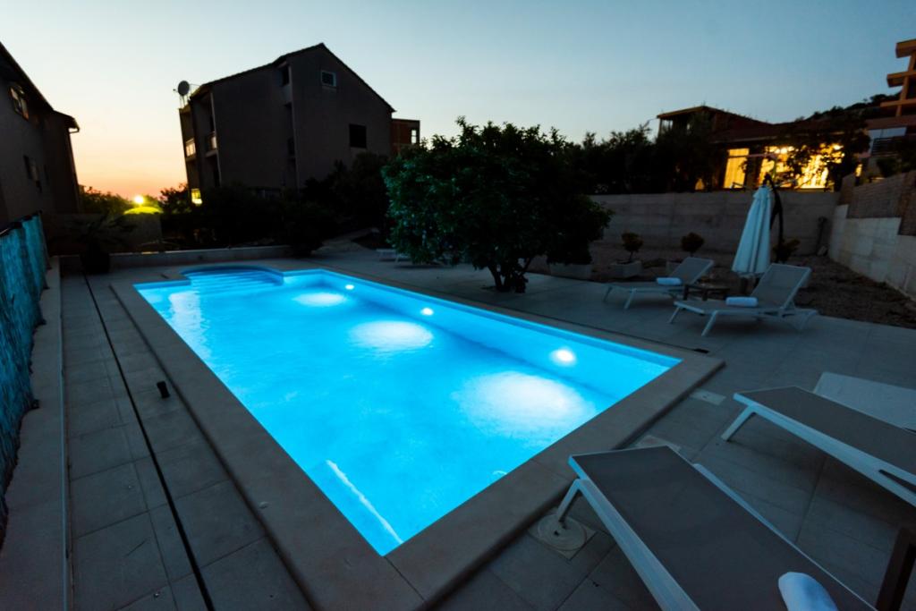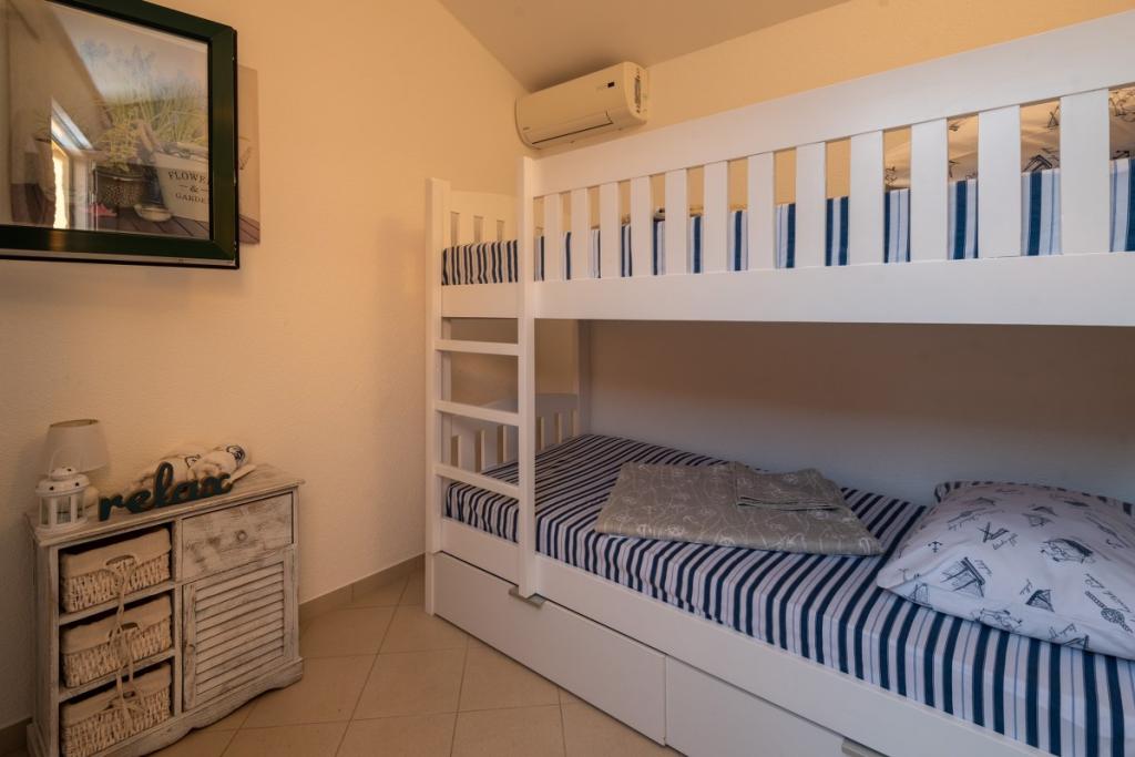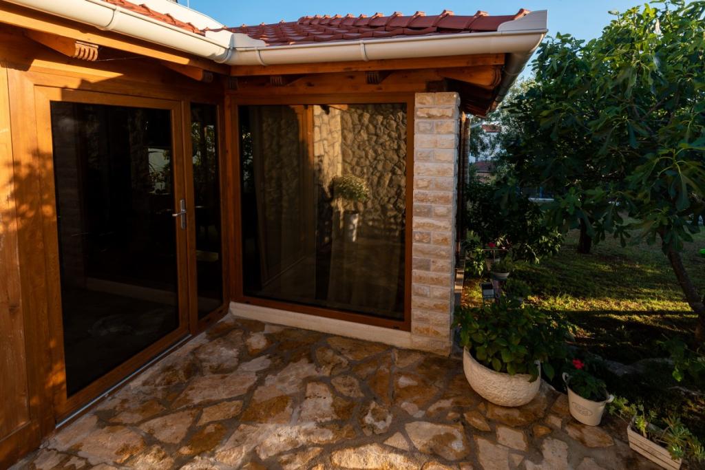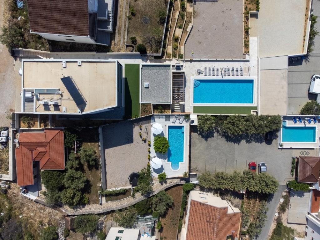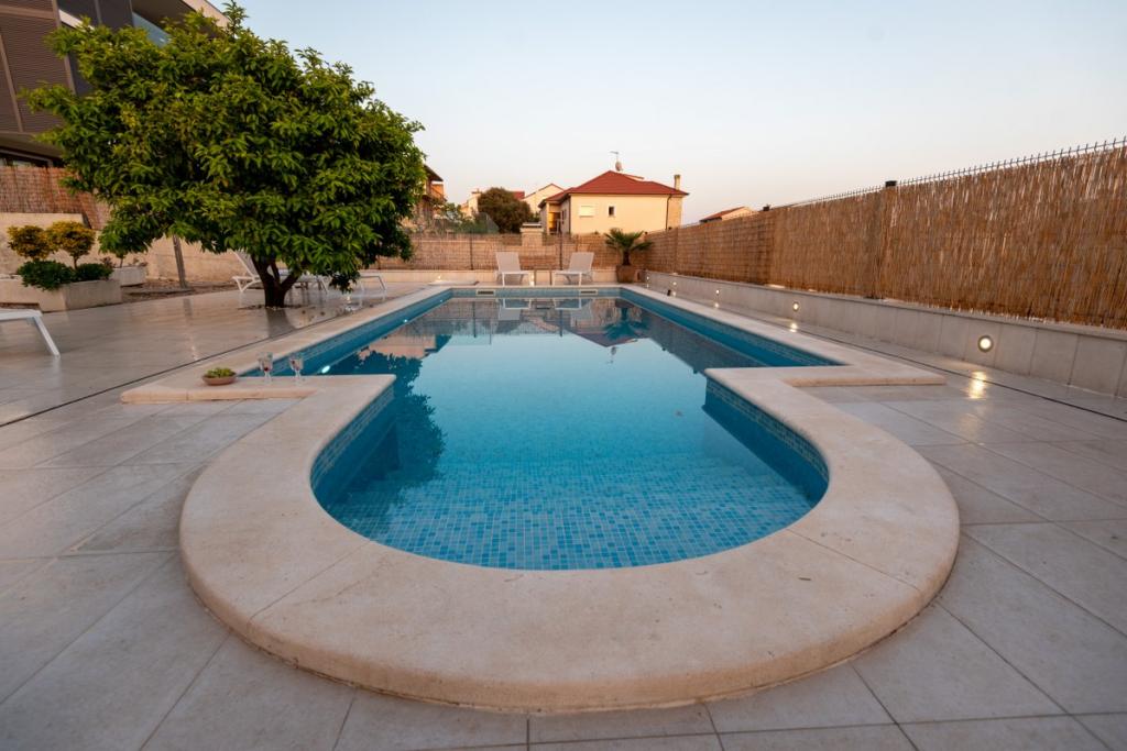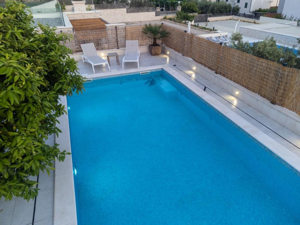 Sun Gardens to uroczy dom do wynajęcia, położony na przedmieściach Szybenika, Podsolarsko, zaledwie 1 km od popularnego parku Amadria. Dom ten, ukryty wśród drzew oliwnych, posiada 2 sypialnie, łazienkę, duży ogród i plac zabaw dla dzieci oraz dużą jadalnię i kuchnię, zlokalizowane w przeszklonej przestrzeni, idealne na wieczorne spotkania. Największym plusem jest duży prywatny basen i miejsce do opalania umożliwiające chwile relaksu.