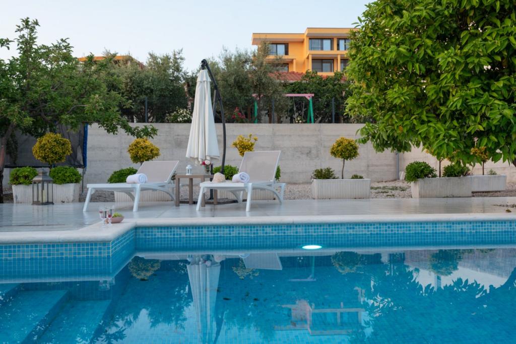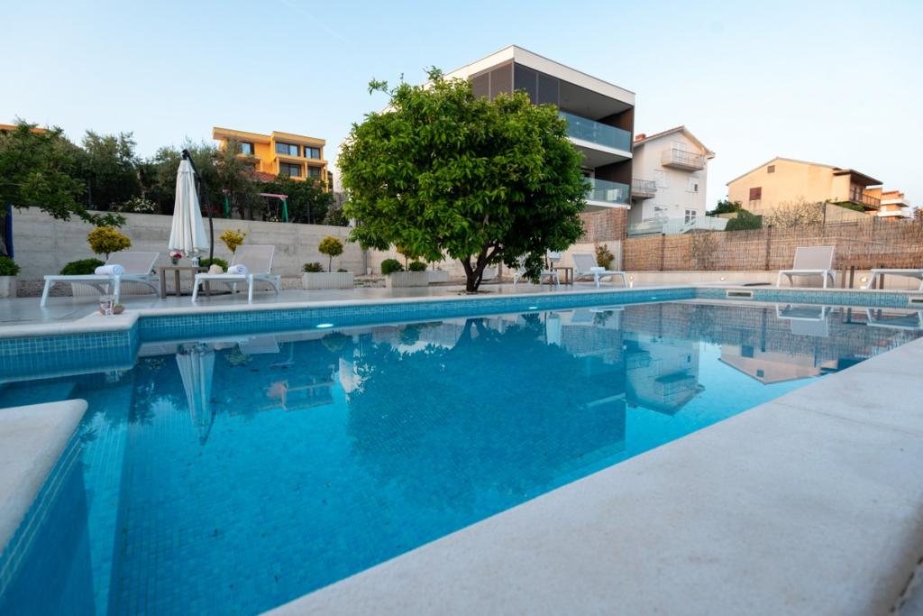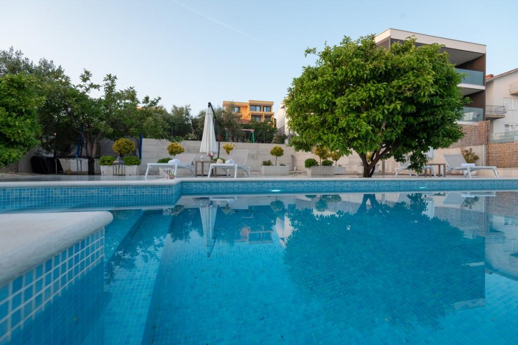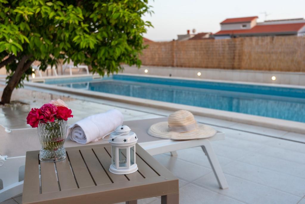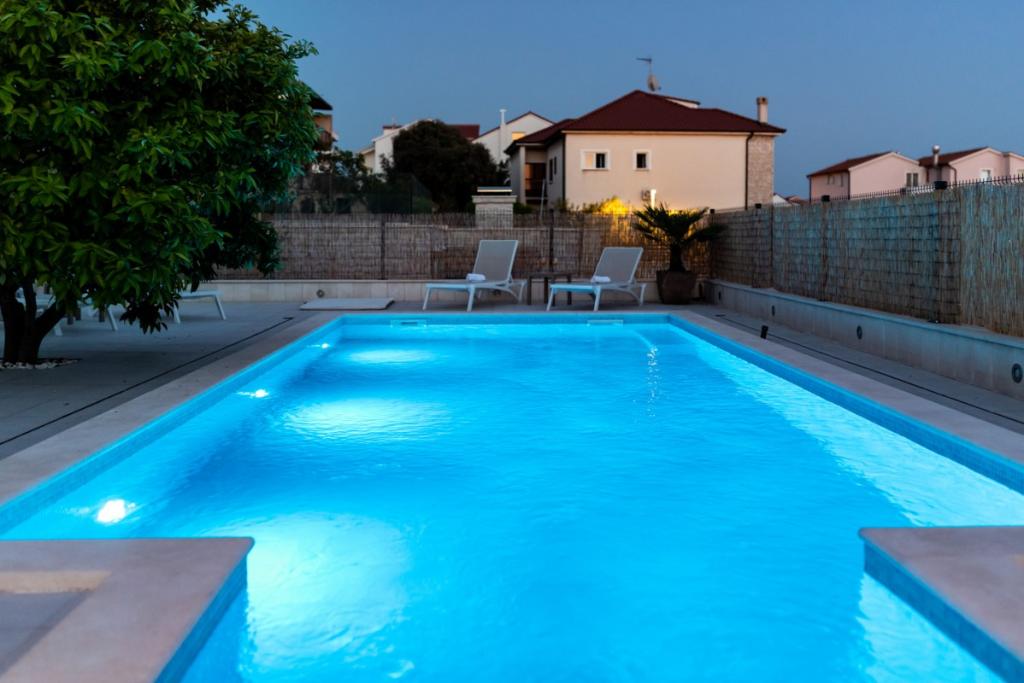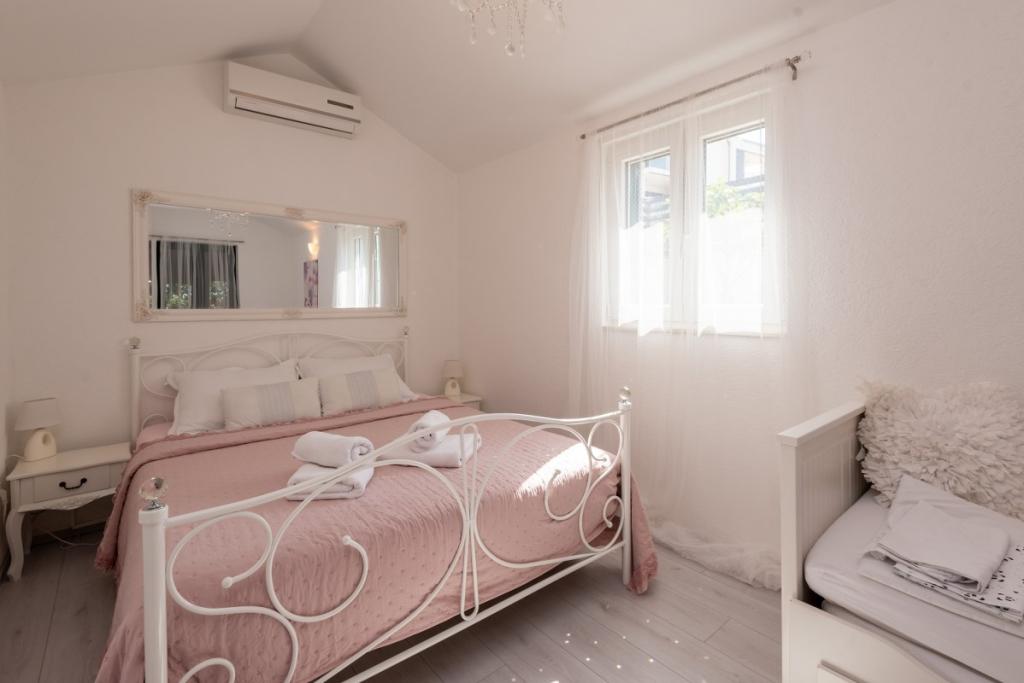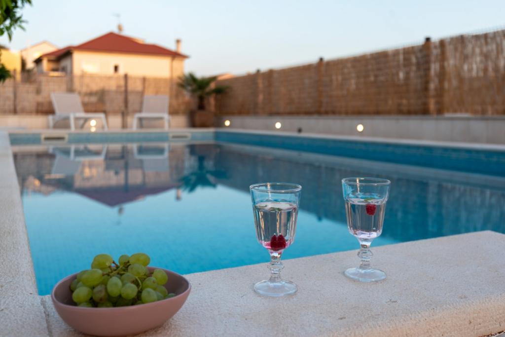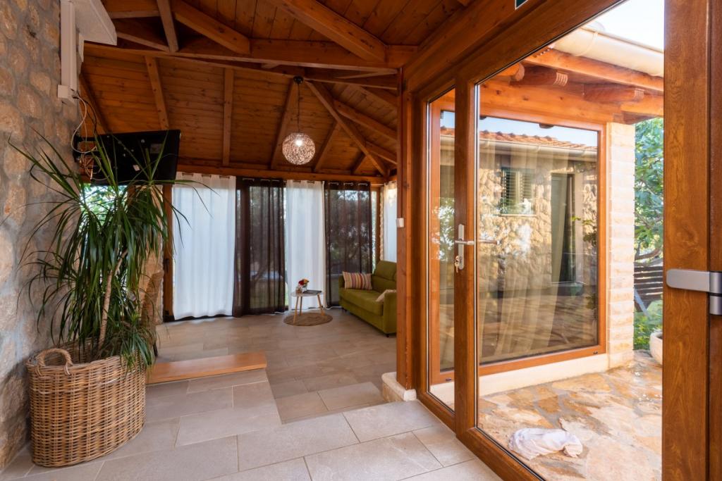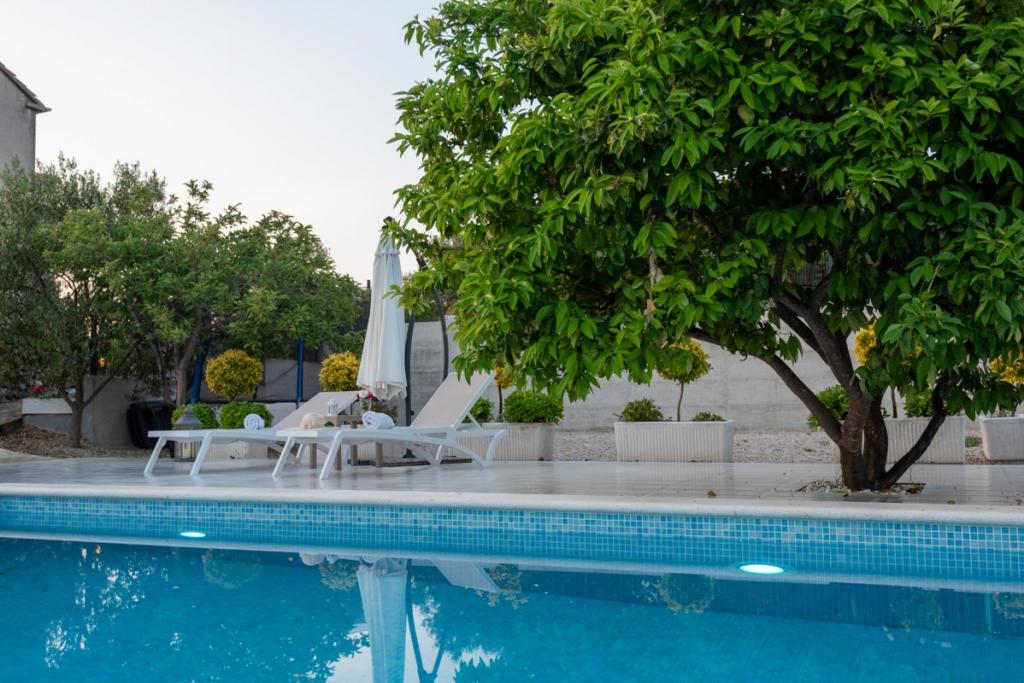 Sun Gardens to uroczy dom do wynajęcia, położony na przedmieściach Szybenika, Podsolarsko, zaledwie 1 km od popularnego parku Amadria. Dom ten, ukryty wśród drzew oliwnych, posiada 2 sypialnie, łazienkę, duży ogród i plac zabaw dla dzieci oraz dużą jadalnię i kuchnię, zlokalizowane w przeszklonej przestrzeni, idealne na wieczorne spotkania. Największym plusem jest duży prywatny basen i miejsce do opalania umożliwiające chwile relaksu.
