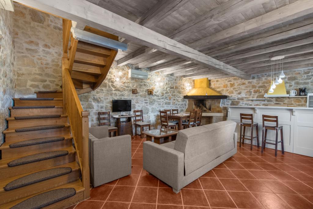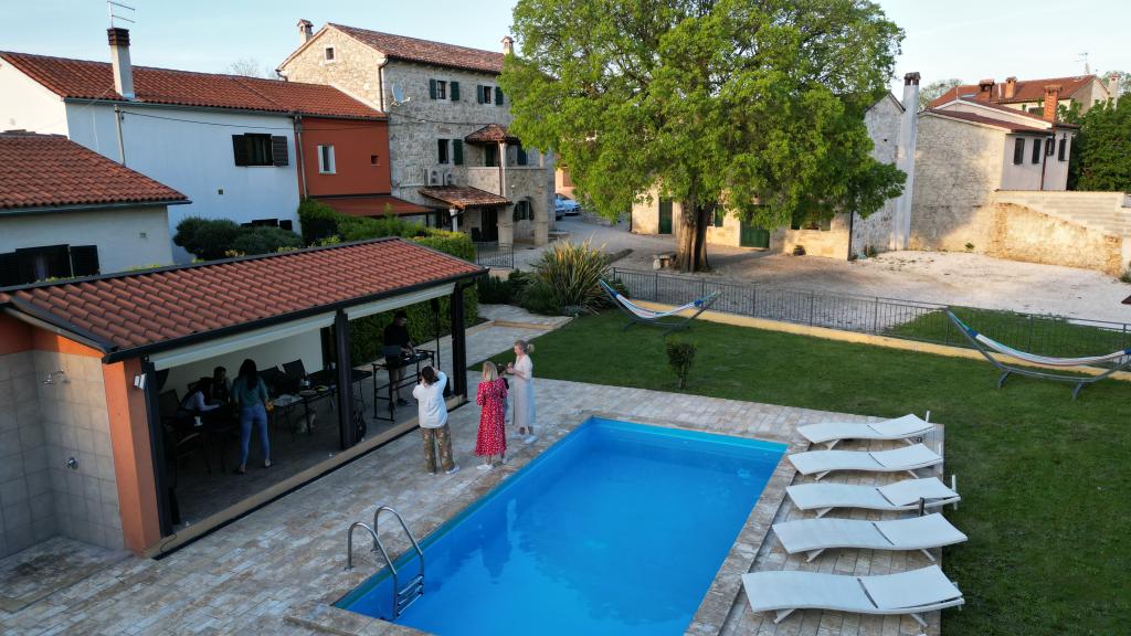 Antonci 18 to klasyczna istryjska posiadłość składająca się z 3 kamiennych domów. Posiadłość posiada piękny ogród ze starym, dużym drzewem pośrodku. Czeka tu na Ciebie romantyczna atmosfera. Spokojna i idylliczna oaza odcięta od świata zewnętrznego. Tutaj masz wszystko, abyś czuł się komfortowo, w tym własny basen, zewnętrzną kuchnię i dużo miejsca dla dzieci i ich czworonożnych przyjaciół do wypoczynku, opalania i zabawy. Ciesz się pobytem w tym wyjątkowym zakątku świata i wróć ponownie. Basen 28 m2 - tylko dla Ciebie Na środku podwórka - stuletni dąb. Będziesz cieszyć się jego cieniem Ogrodzony ogród 1500 m2 8 miejsc parkingowych dla samochodów Indywidualna klimatyzacja w każdym pokoju 8 sypialni 6 łazienek 3 salony 8 łóżek 2 rozkładane sofy 16 miejsc nędzny sprzęt nagłośnieniowy zbrojenia i projektora pomożemy Ci z cateringiem, instruktorami fitness, masażystami i organizacją