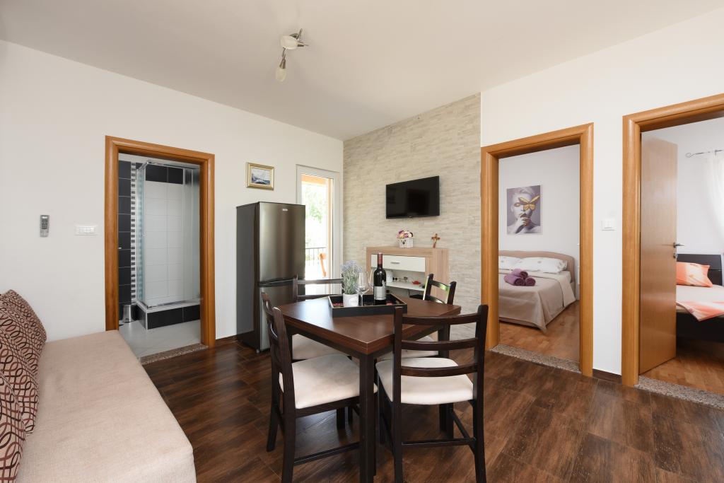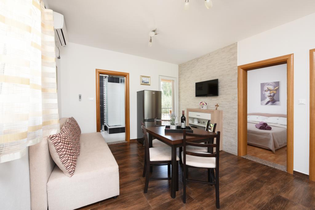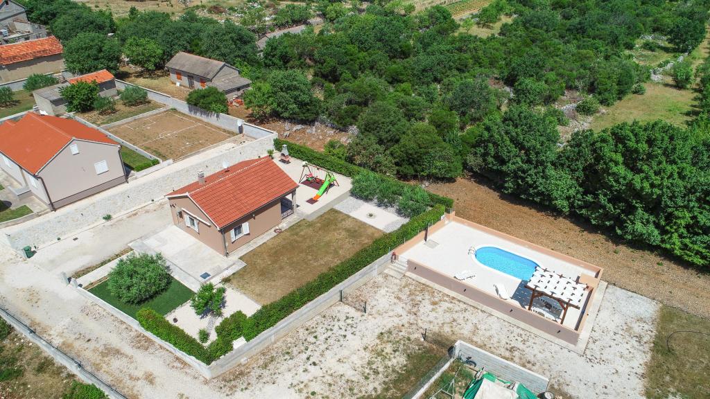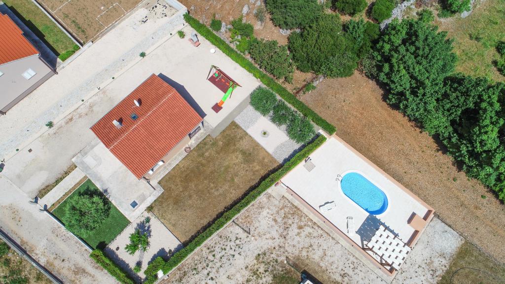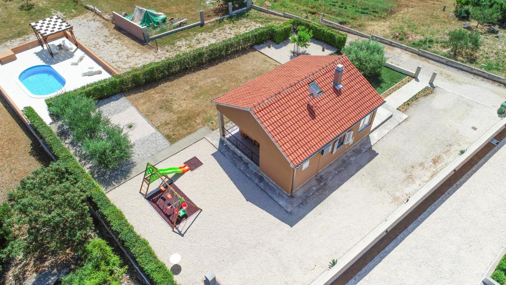 Dom wakacyjny położony jest w spokojnej części Pridragi, w otoczeniu zieleni i śpiewu ptaków. Obok domu znajduje się basen i plac zabaw dla dzieci. Na plażę trzeba dojechać samochodem.