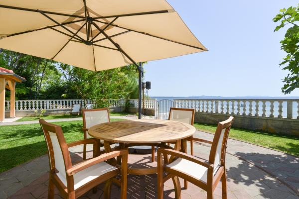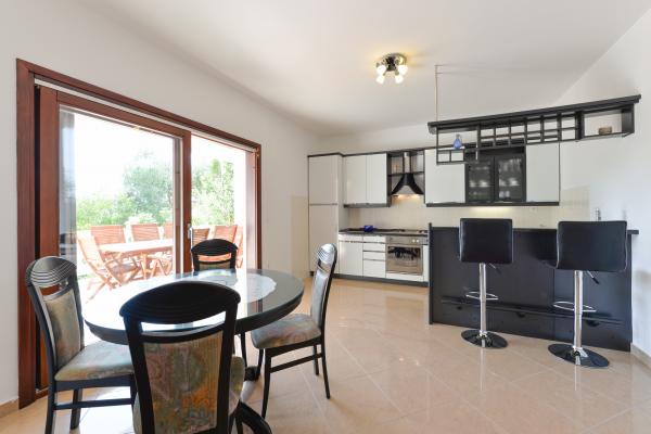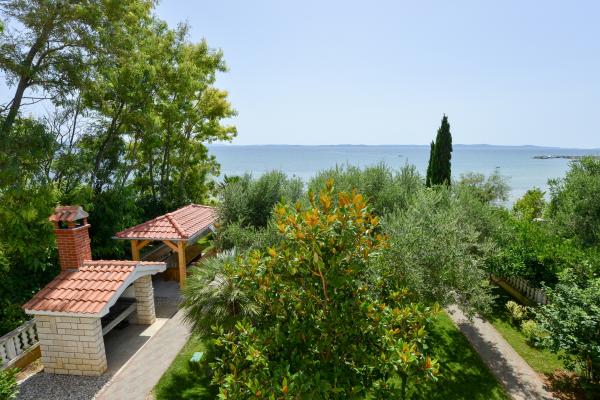 Villa Mate znajduje się nad morzem i znajduje się w cichej okolicy, która zapewnia prywatność. W domu znajduje się duży ogród z oliwek cieniu, gdzie nasi goście chcą spędzić czas. Willa posiada 255 m2 i 600 m2 ogród. Składa się z 6 pokoi z podwójnymi łóżkami (ręcznie mebli), 3 pokoje dzienne, 4 łazienki (wanna z jacuzzi, prysznic). Kuchnie są w pełni wyposażone. Villa Mate posiada również duży taras i trzy balkony z widokiem na morze. W przedniej części mieszkania jest piękna piaszczysta plaża jest bardzo miły do pływania, gry w morzu i opalać. Plaża jest również odpowiednia dla małych dzieci, ponieważ ma płytkie część. Nasi goście mają dostęp do dwóch nowych rowerów i miejsce na łodzi.