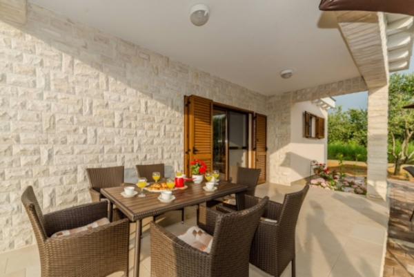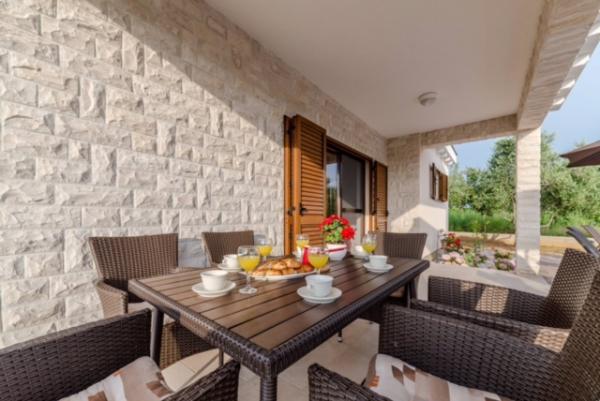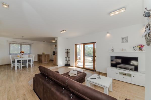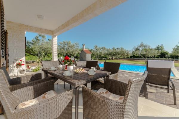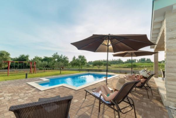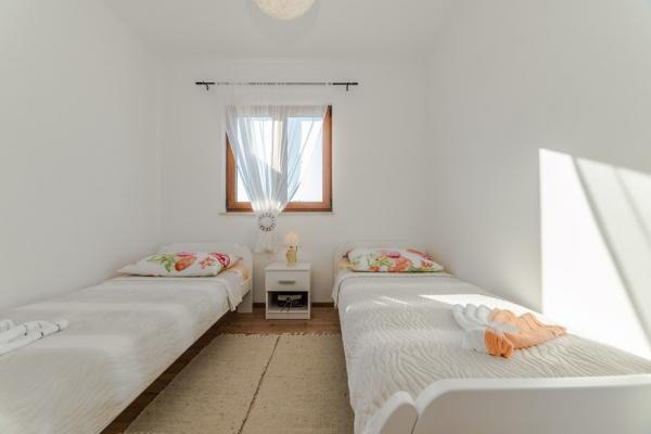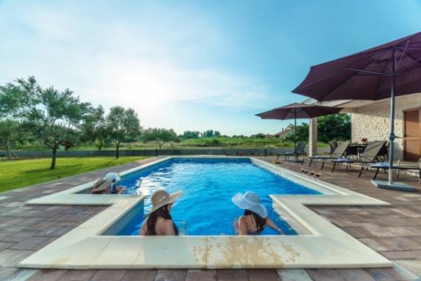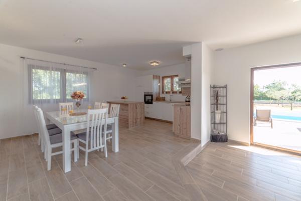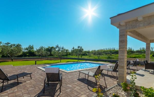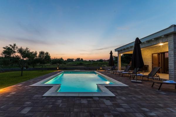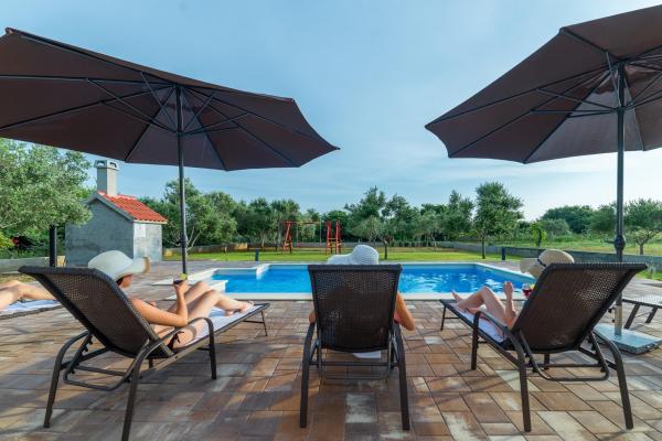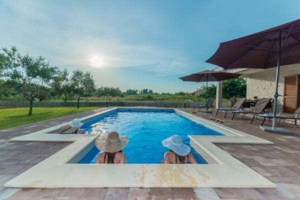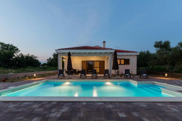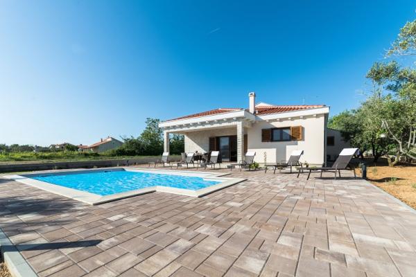 Nowocześnie urządzony dom z basenem, położony w spokojnej okolicy Privlaka, otoczony drzewami oliwnymi i zapewnia całkowitą prywatność. Z dala od drogi i jedyny hałas można ingerować w śpiew ptaków. W domu znajduje się basen z leżakami i trawnik z zawartością dla dzieci. Odległość od centrum 1000 m i 1100 m od plaży. Dom posiada trzy sypialnie, dwie łazienki, toalety, w pełni wyposażoną kuchnię i przestronny salon.