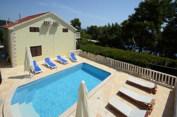 Villa Daria znajduje się na wyspie Korcula. Villa posiada 5 sypialni, 4 łazienki i może pomieścić 11 osób. Nowe obiekty rozrywkowe dla dzieci są w przedniej części domu. Cały dom jest zaaklimatyzować i ma 230 m2 z tarasem i widokiem na morze. Przy basenie znajduje się grill z tenisem kuchnia, stół. Willa ma absolutną ciszę. Dla tych, którzy chcą mieć całkowity relaks, ciesząc się długo, słoneczne dni i jasne krystalicznie wyspy Korčula, nasz hotel jest najlepszym rozwiązaniem, aby odzyskać energię i witalność podczas wakacji w Chorwacji. Cały dom jest wyposażony w klimatyzację i znajduje się mniej niż 50 metrów od morza.