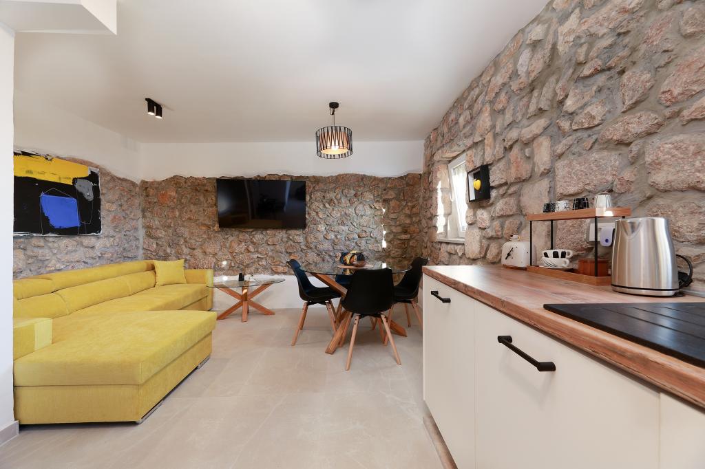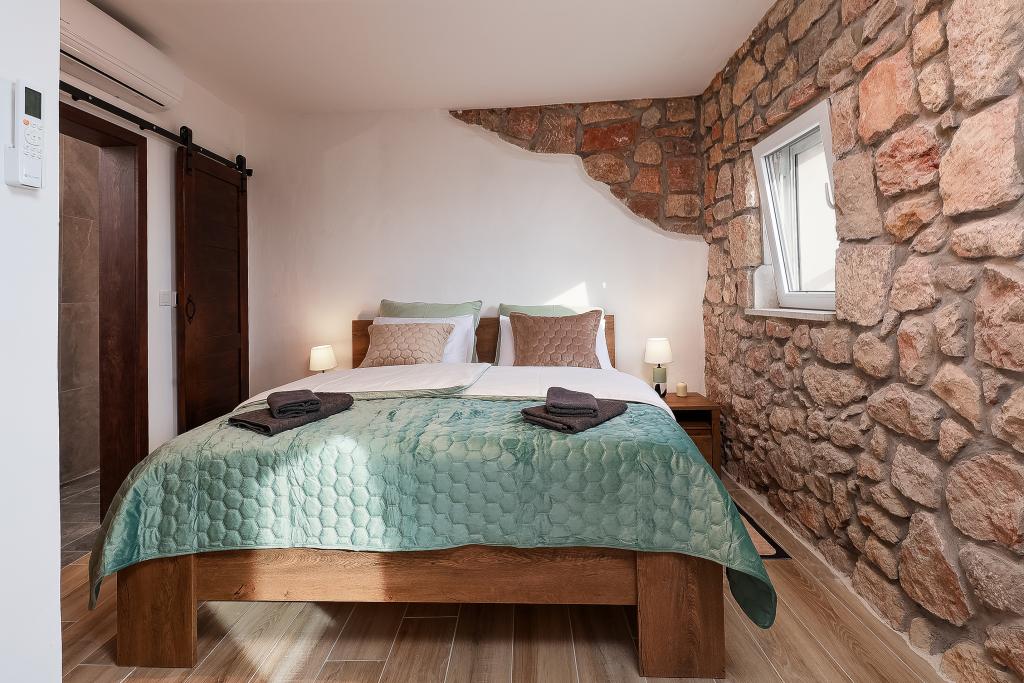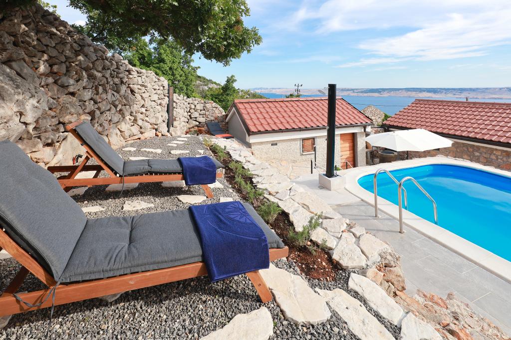 Witamy w Villa Ana, wyjątkowym domu wakacyjnym, który oferuje idealne połączenie naturalnego otoczenia, autentycznej architektury i nowoczesnego komfortu. Położony w spokojnej i odosobnionej części Parku Przyrody Velebit, ten starannie odrestaurowany kamienny dom z XIX wieku oferuje całkowitą prywatność, ciszę i spektakularne widoki na morze i wyspy Kvarner – Pag, Rab, Lošinj i Ilovik. Dom zajmuje powierzchnię 70 m² i jest idealny dla 4 osób. Na piętrze znajdują się dwie przestronne sypialnie, każda z własną łazienką, klimatyzacją i telewizorem Smart TV. Na parterze znajduje się nowoczesny salon typu open space z w pełni wyposażoną kuchnią (zmywarka, piekarnik, płyta indukcyjna, kuchenka mikrofalowa, ekspres do kawy i herbaty, lodówka z zamrażarką), kolejna łazienka i pomieszczenie gospodarcze z sejfem. Internet Wi-Fi jest dostępny w całym domu. Na terenie zewnętrznym o powierzchni 340 m² goście mogą korzystać z prywatnego basenu, miejsca do opalania z leżakami i parasolami, tawerny ze stołem do piłkarzyków i rzutkami oraz zewnętrznego kominka do grillowania.