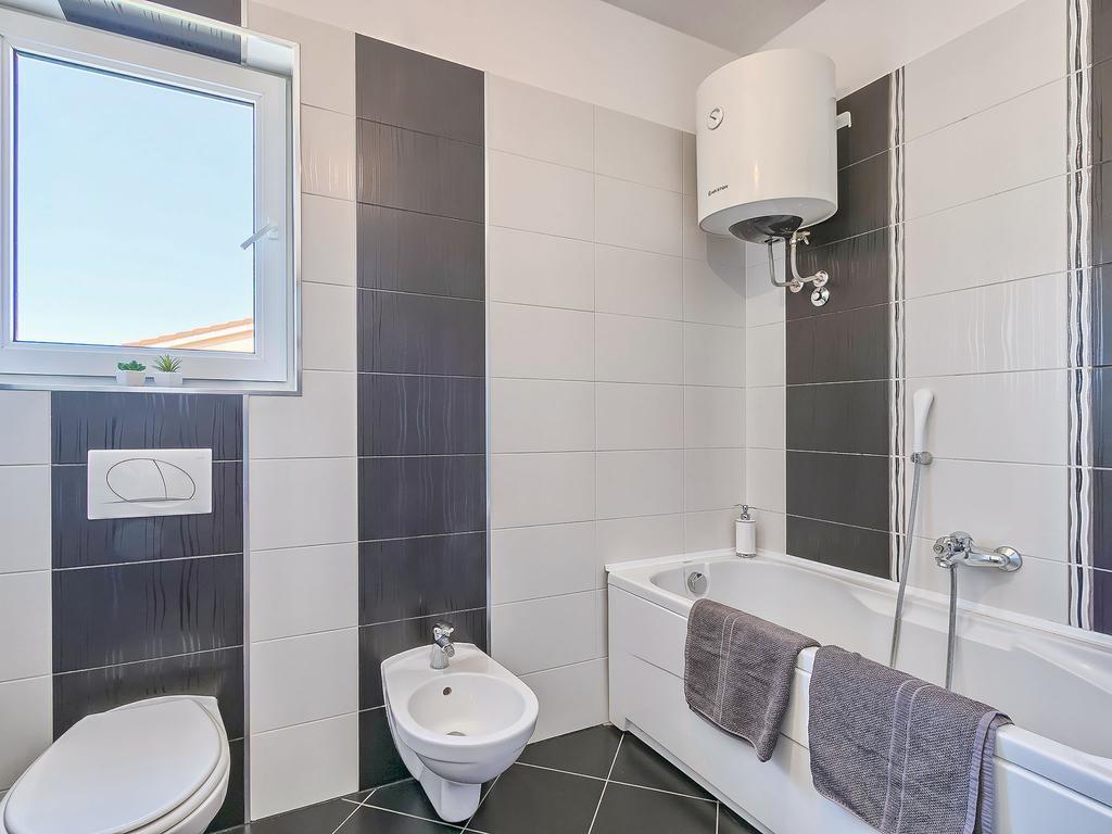 Opłata nie wliczone w cenę.Ładny dom rodzinny "Villa Mamić" 2 piętrowy. W małej wiosce Loborika 6 km od centrum Pula, spokojne, słoneczne położenie, 10 km od morza. Do indywidualnego użytku: działka 450 m2 (ogrodzona), mały ogród - trawnik i krzewy, basen (9 x 4 m, gł. 140 cm, 15.04.-28.10.) Z wbudowanymi schodkami i czyszczeniem basenu metodą elektrolizy solnej. Nieregularny kształt basenu. Prysznic na zewnątrz, taras (15 m2), meble ogrodowe, grill. 4-pokojowy dom 150 m2 na 2 poziomach. Salon / jadalnia z TV (satelitarna). odbiornik (telewizor z płaskim ekranem), klimatyzacja. Wyjście na taras. Otwarta kuchnia (piekarnik, zmywarka do naczyń, 4 palniki ze szkła ceramicznego, kuchenka mikrofalowa, zamrażarka, ekspres do kawy). Odv. TOALETA. Na piętrze: hol wejściowy z klimatyzacją. 1 pokój z 1 frankiem. łóżko (160 cm, długość 200 cm), p