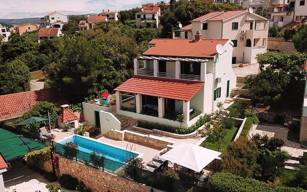 Villa Marina ma dwa oddzielne apartamenty na parterze i pierwszym piętrze. Każdy apartament składa się z dwóch sypialni, łazienki z prysznicem (na parterze dwie), w pełni wyposażonej kuchni, jadalni, salonu i dużego balkonu (baldachim na parterze). Stół na parterze i pod baldachimem przeznaczony jest dla 8-10 osób. Dom ma pralki i naczynia, kostkarkę do lodu, lodówkę na wino. , Przed domem znajduje się własny basen z podgrzewaną wodą. Obok basenu jest pawilon ze stołem i krzesłami, leżakami i dodatkową toaletą. Obok grilla znajduje się sala rekreacyjna z bieżnią i rowerem pokojowym. Dom otoczony jest trawą, drzewami i kwiatami. Na plaży jest stałe miejsce z leżakami, parasolami i krzesłami. Villa Marina znajduje się w zatoce Stivasnica w Razanj, Rogoznica. Zatoka Stivašnica znajduje się pomiędzy Przylądkiem Planką a Wzgórzem Movar. Przylądek Planka jest najbardziej widoczną częścią wybrzeża Adriatyku. Ze względu na to naturalne położenie morze jest krystalicznie czyste.