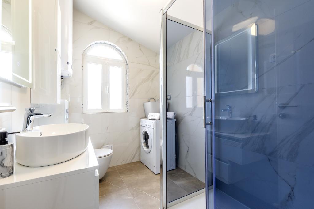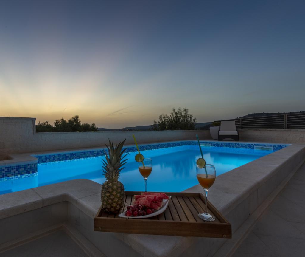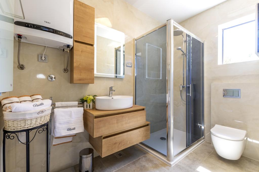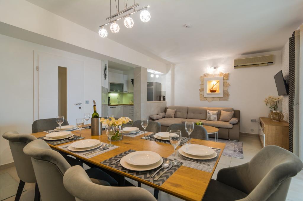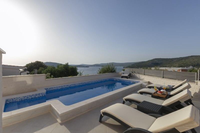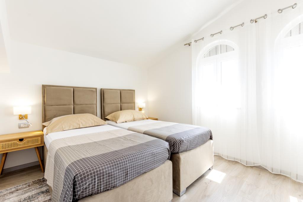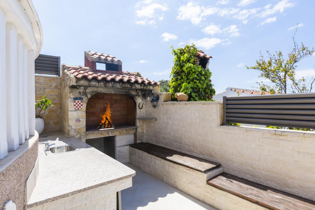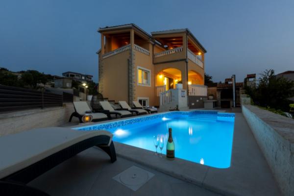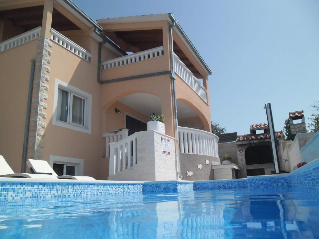 Nowo wybudowany dom wakacyjny znajduje się w spokojnej okolicy, z dala od zgiełku i tłumów, co daje oazę spokoju na wakacje z otwartym widokiem na krystalicznie czyste morze. Dom składa się z 4 sypialni, 2 łazienek, kuchni i salonu, 2 tarasów i balkonu z widokiem na poranny wyjazd i magiczny wieczorny zachód słońca. Na dziedzińcu znajduje się podgrzewany basen z dyszami do masażu i leżakami, prysznic na świeżym powietrzu i duży grill, który jest tylko naszym gościom w służbie i posiada własny parking.