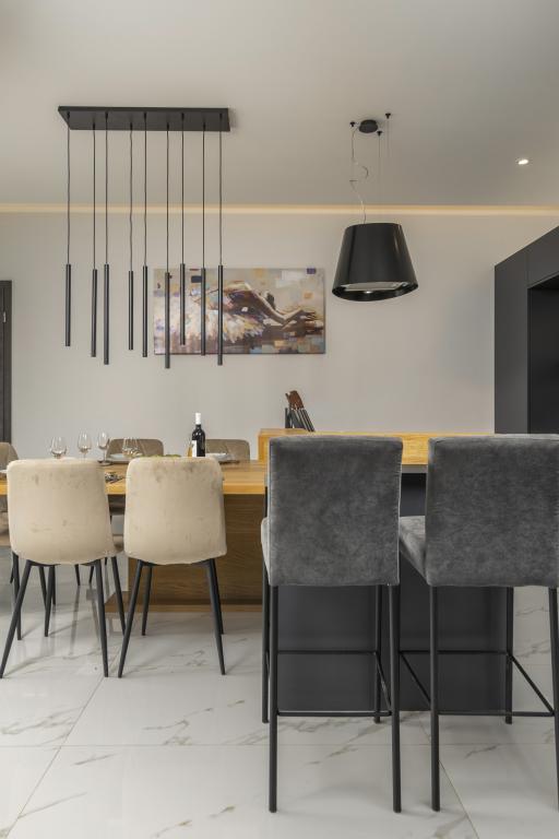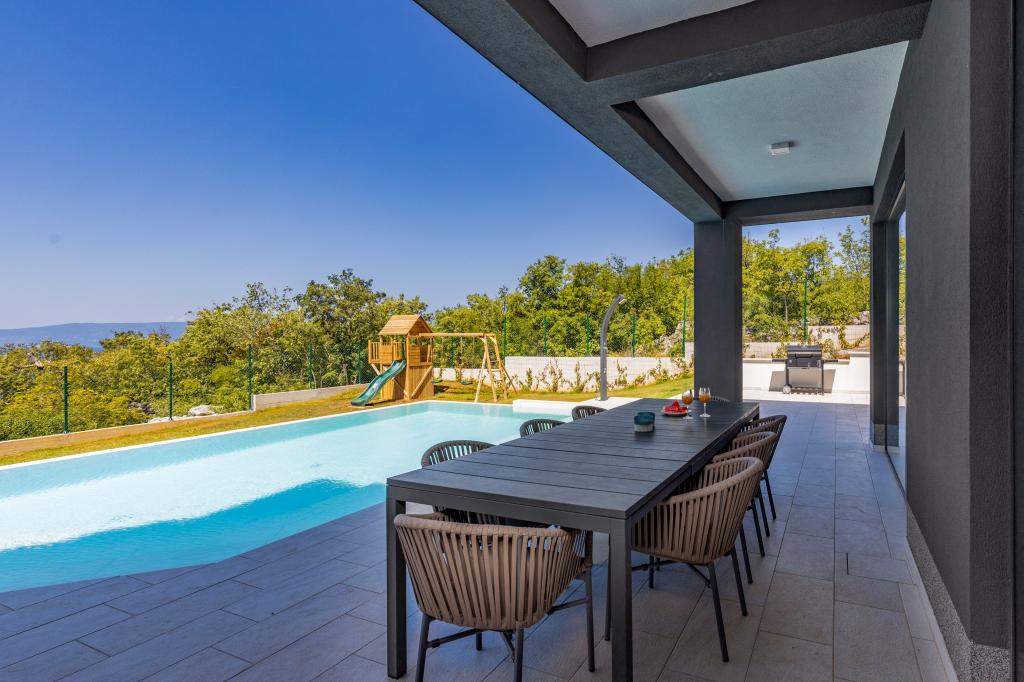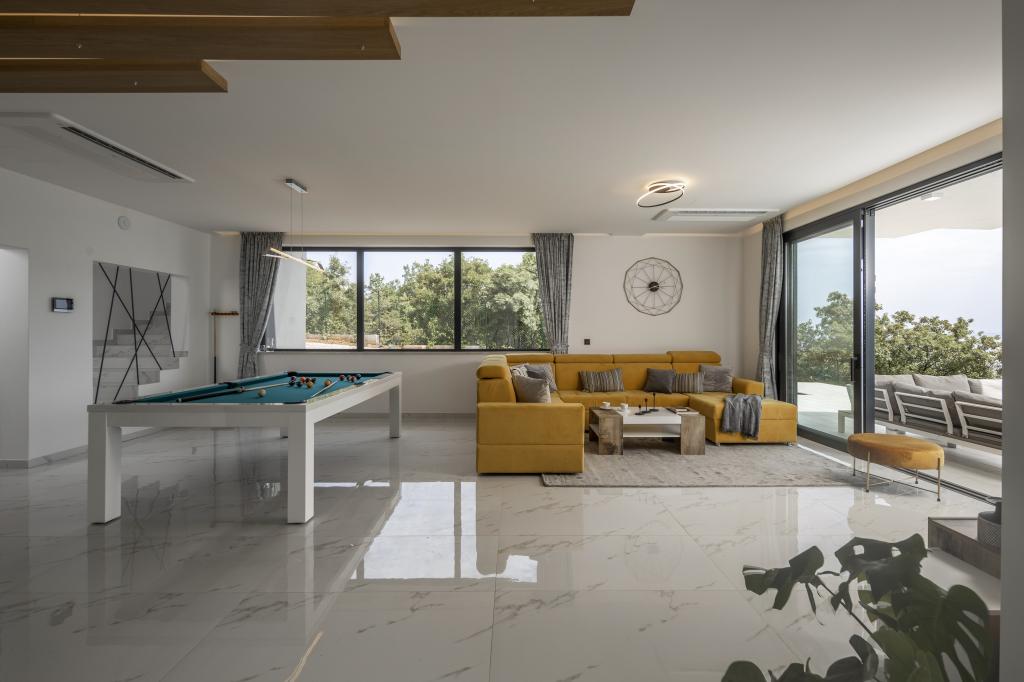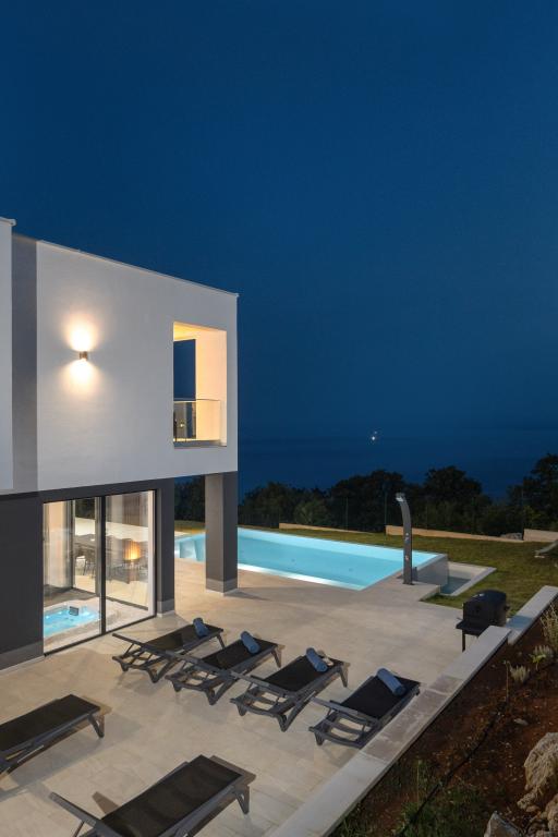 Willa zajmuje powierzchnię 297 m2 z łącznie 1540 m2 podwórka i basenem 48 m2, głębokości 1,5 m. Budynek może pomieścić max. 8 osób dorosłych. Obiekt znajduje się w zielonej oazie, co zapewnia pełną prywatność z widoku. W obiekcie znajduje się sauna i jacuzzi z widokiem na morze. Zameldowanie i wymeldowanie odbywa się w soboty (lipiec, sierpień), natomiast w pozostałych miesiącach na życzenie.