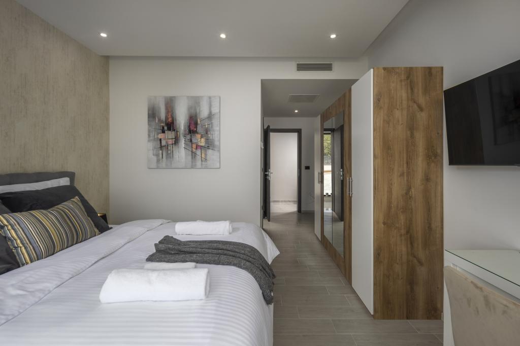Opłata jest wliczone w cenę.Nieruchomość posiada 4 sypialnie (3 sypialnie posiadają podwójne łóżko 180x200 cm, natomiast 1 sypialnia posiada łóżko 90x200 cm). W sypialni głównej rozkładana sofa (90x200 cm). W salonie znajduje się kanapa, którą można rozłożyć na łóżko dla 2 osób.