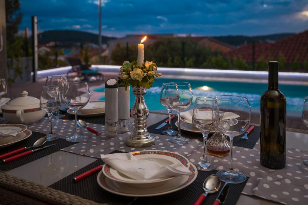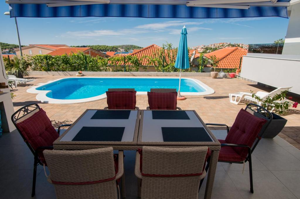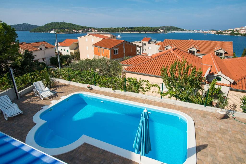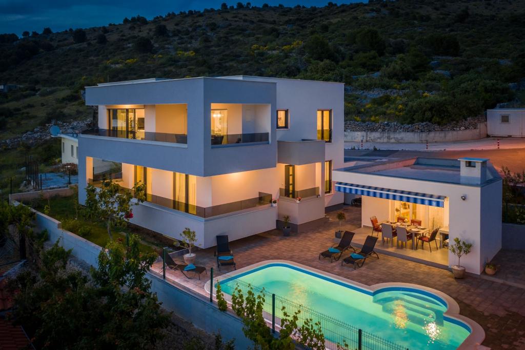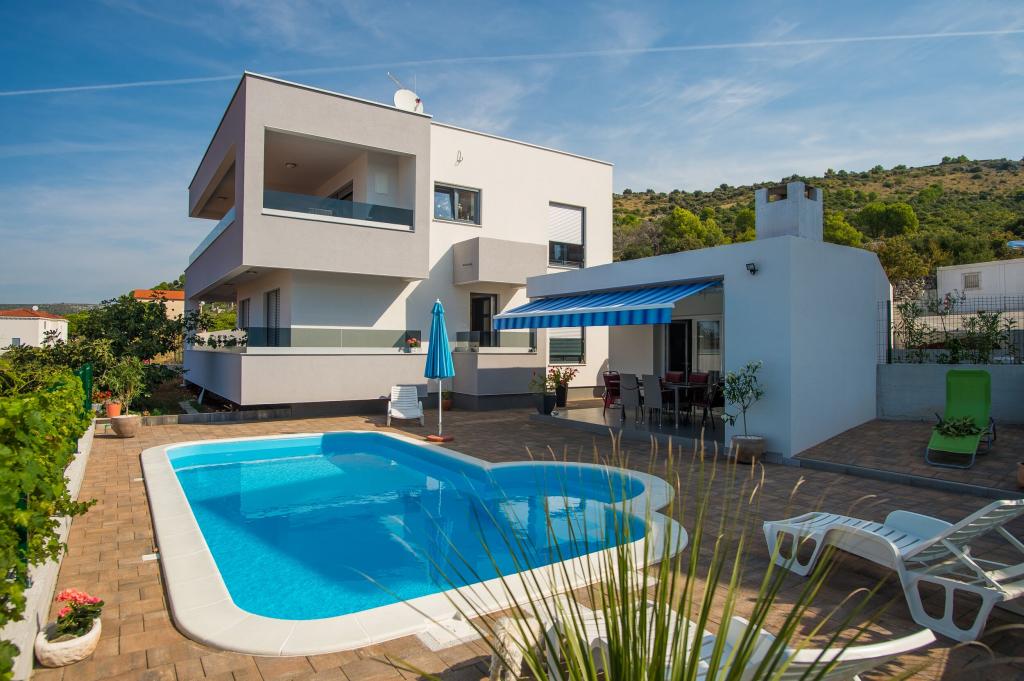 Dom może przyjąć 10 gości. Łóżka znajdują się w 5 pokojach sypialnych o powierzchni 200 m2. Goście mogą podziwiać widoki na morze z własnego tarasu. Dla pełnego zadowolenia i relaksu istnieje również prywatny grill tylko dla gości tego zakwaterowania. Podczas pobytu Goście mogą zrelaksować się w prywatnym basenie. Pozycja: ZATOGLAV - ROGOZNICA (3 km) ŠIBENIK - Šibenik - Knin County parter → dwupiętrowy Powierzchnia: 168 m2 39 m2 (Taras 1, Taras 2) Liczba łóżek: 10 Kategoryzacja: 4 Transport: lotnisko - willa - lotnisko Dodatkowe usługi i koszty -Klimatyzacja • Sprzątanie końcowe • WiFi • Żelazko • Deska do prasowania • Suszarka do włosów • Basen • Parking • Opłata klimatyczna: wliczony w cenę Depozyt 500, 00 € / jednorazowo, - jest wypłacany właścicielowi gotówką w dniu przyjazdu, a pełna kwota jest zwracana gościowi w dniu wyjazdu, jeśli podczas pobytu nie spowodował żadnych szkód