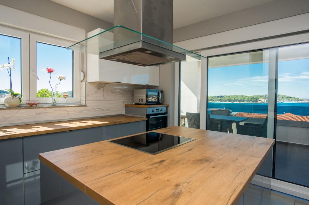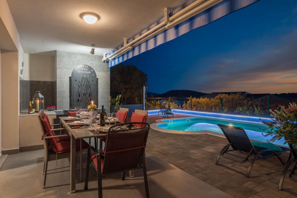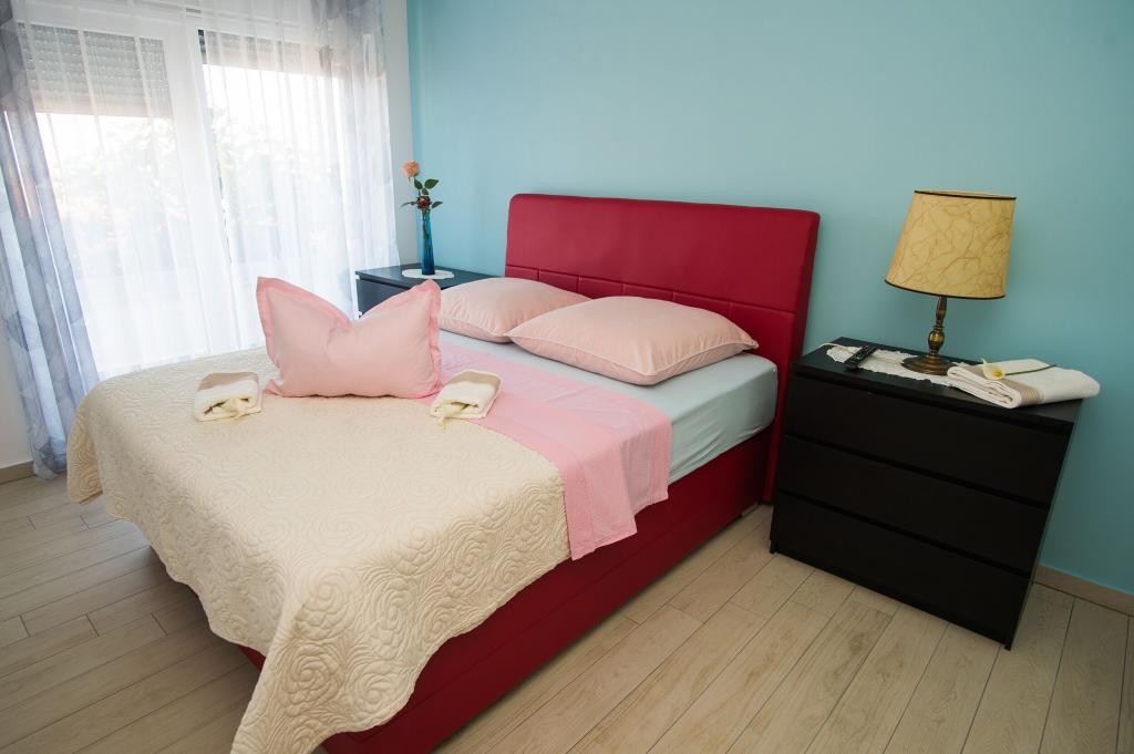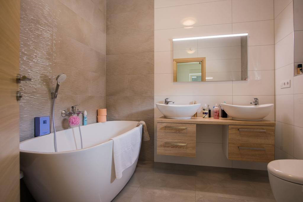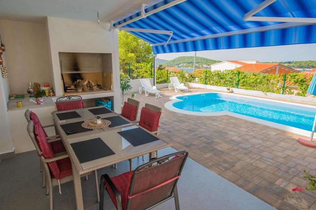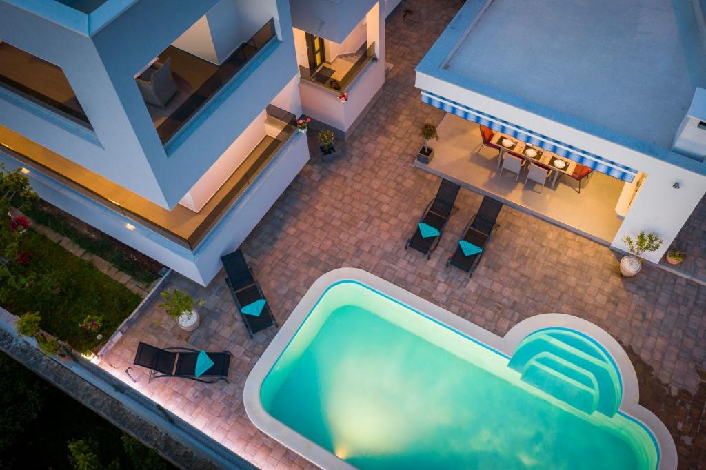 Dom może przyjąć 10 gości. Łóżka znajdują się w 5 pokojach sypialnych o powierzchni 200 m2. Goście mogą podziwiać widoki na morze z własnego tarasu. Dla pełnego zadowolenia i relaksu istnieje również prywatny grill tylko dla gości tego zakwaterowania. Podczas pobytu Goście mogą zrelaksować się w prywatnym basenie. Pozycja: ZATOGLAV - ROGOZNICA (3 km) ŠIBENIK - Šibenik - Knin County parter → dwupiętrowy Powierzchnia: 168 m2 39 m2 (Taras 1, Taras 2) Liczba łóżek: 10 Kategoryzacja: 4 Transport: lotnisko - willa - lotnisko Dodatkowe usługi i koszty -Klimatyzacja • Sprzątanie końcowe • WiFi • Żelazko • Deska do prasowania • Suszarka do włosów • Basen • Parking • Opłata klimatyczna: wliczony w cenę Depozyt 500, 00 € / jednorazowo, - jest wypłacany właścicielowi gotówką w dniu przyjazdu, a pełna kwota jest zwracana gościowi w dniu wyjazdu, jeśli podczas pobytu nie spowodował żadnych szkód