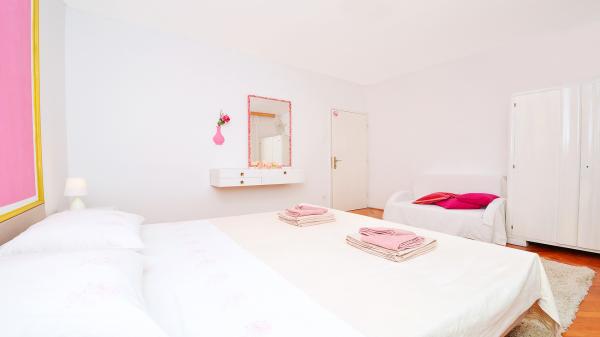 Villa Marina Sądy jest stary tradycyjny dom Dalmacji. Wszystkie dane i meble w domu należały do historii rodziny są wykończone w nowoczesnym stylu i komfortu. Dom położony jest w Seget Donji, w pobliżu miasta Trogir, które znajduje się na liście UNESCO światowego dziedzictwa kulturowego. Ludzie nazywają Trogir uroda kamień, ponieważ istnieje wiele kamiennych domów jak ten, które są tradycyjne dla tej części świata, ponieważ grube kamienne ściany zapewniają chłód latem i ciepło podczas zimowych miesięcy. Istnieje również wiele restauracji, barów kawowych, sklepów, parków i kilku klubach w bezpośrednim sąsiedztwie willi. Dom znajduje się zaledwie 50 metrów od pięknej, piaszczystej plaży i Marina Seget. Rynek Rybołówstwo jest naprzeciwko domu z 4 supermarketów w zakresie trzech minut spacerem od willi. Dom ma trzy piętra, parter z wejściem do sądu jest idealnym miejscem do jedzenia na zewnątrz, kuchnia, przedpokój oraz część dzienną. 1. piętro dysponuje trzy sypialnie, jedna z własnym balkonem. Czwarta sypialnia jest na drugim piętrze Wynika z dużym tarasem z widokiem na morze, gdzie można zjeść romantyczną kolację z widokiem na zachód słońca nad wyspami i najpiękniejszych zatok na świecie. Villa jest ide