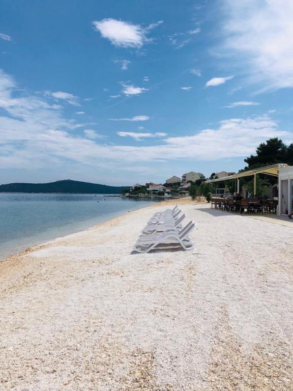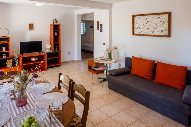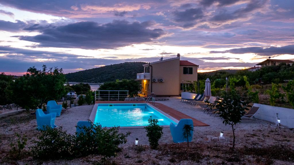 Zakwaterowanie znajduje się w spokojnej okolicy Sevid / Krči, około 100 m od morza (dom znajduje się przy ślepej uliczce, bez bliskich sąsiadów). Dom posiada dwa odnowione apartamenty (do 10 osób), otoczone dużym oryginalnym chorwackim ogrodem. Każdy z apartamentów składa się z dwóch oddzielnych sypialni, łazienki i kuchni z jadalnią (4 + 1). Dom posiada plażę i prywatne molo w cichej zatoce. Cena jest podana za dom / noc, ale skontaktuj się ze mną w celu ustalenia ostatecznej ceny na konkretny termin i liczbę gości. W razie jakichkolwiek pytań zapraszam do kontaktu. Więcej zdjęć na życzenie.