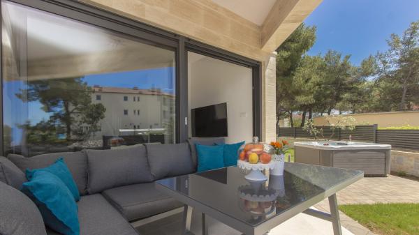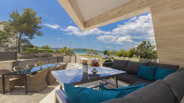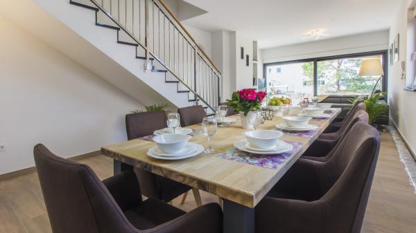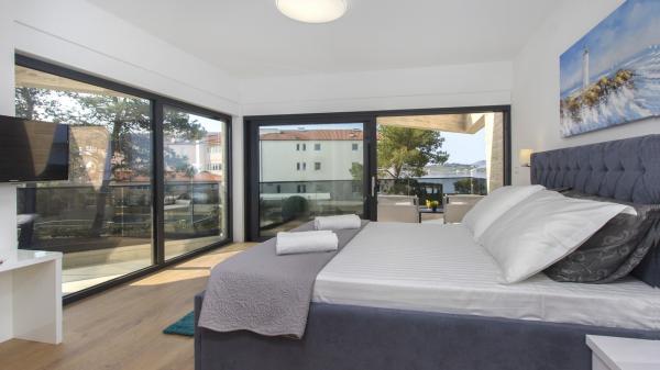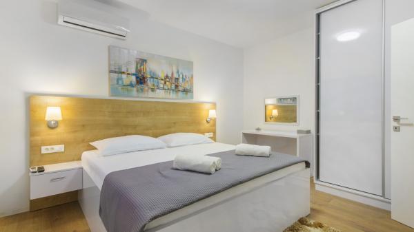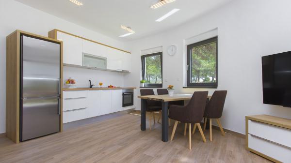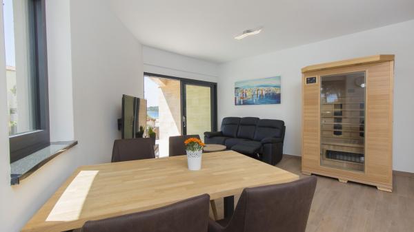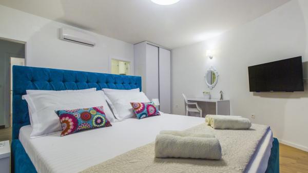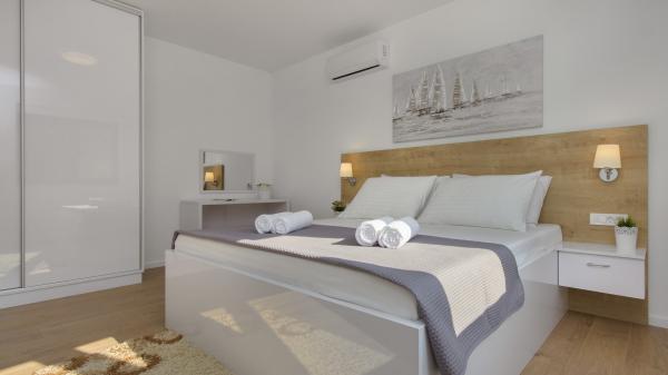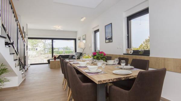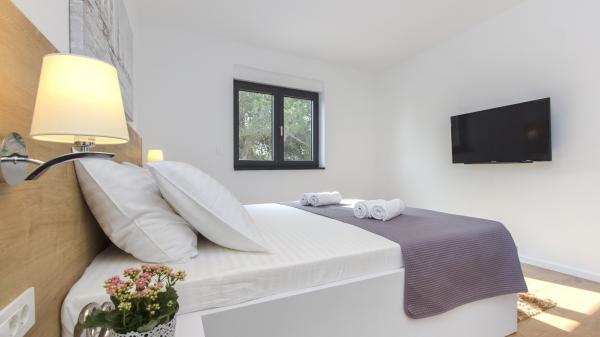 Villa Okit to nowo wybudowana i nowoczesna willa położona zaledwie 50 m od piaszczystej plaży w Srima, 3 km od Vodic, 13 km od Szybenika. Na parterze znajduje się kuchnia, pokój dzienny i salon, które składają się na jedną jednostkę i oddzielną łazienkę, z salonu znajduje się taras i dziedziniec z meblami ogrodowymi i miejscem do opalania. Kuchnia jest w pełni wyposażona w niezbędne naczynia i aneksy kuchenne do przygotowywania posiłków i napojów. Na parterze znajduje się również oddzielne mieszkanie z jedną sypialnią, łazienką, kuchnią i jadalnią, w której można wyjść z podwórka. Na 1. piętrze domu znajdują się 4 sypialnie i 3 łazienki. Sypialnia 1, 20m2 z łazienką i wyjściem na balkon, łóżko 180X200, telewizor. Sypialnia 2, 25 m2, z łazienką i wyjściem na balkon, łóżko 180X200, telewizor. Sypialnia 3 i szopka 4 mają wspólną łazienkę, każda o powierzchni 15 m2 każda, każda z łóżkiem 180x200, komodą i telewizorem. Ogrodzone podwórko z miejscem do opalania i meblami ogrodowymi, miejsce parkingowe.