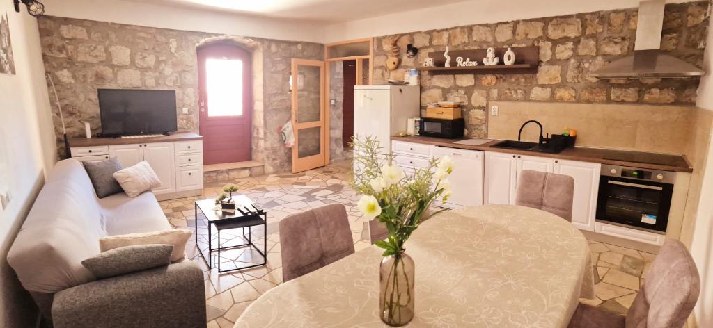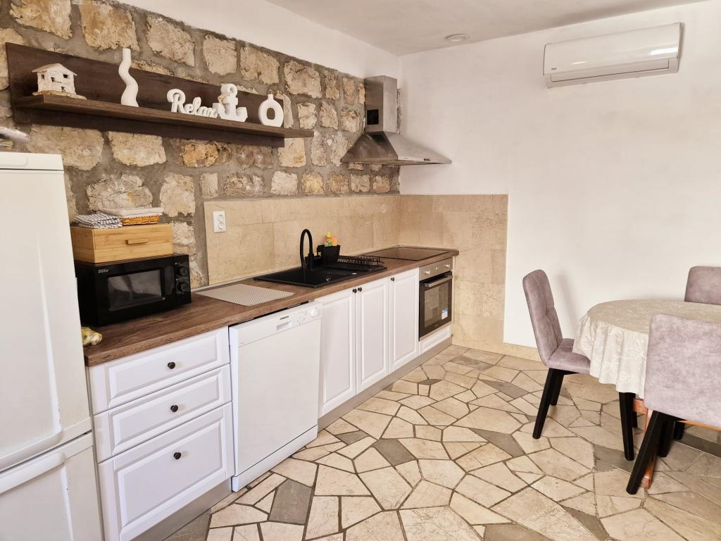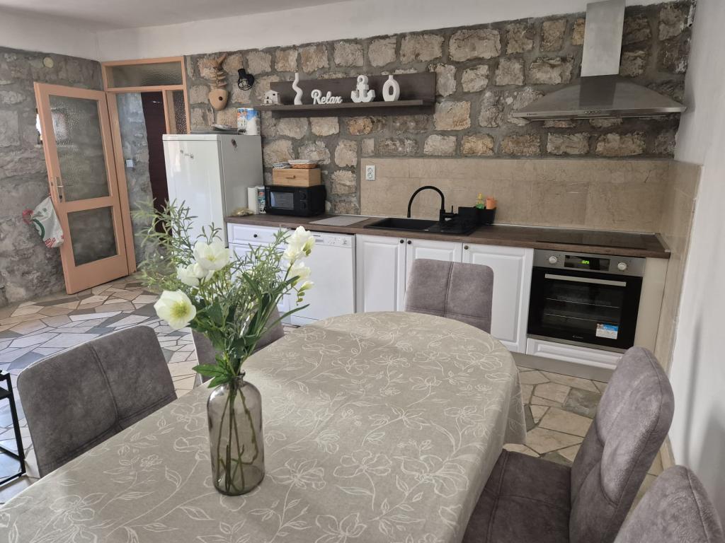 Stary kamienny dom w Hodilje, małym miasteczku położonym 2,5 km od Stonu, oferuje spokój i relaksującą atmosferę. Jeśli chcesz uciec od tłumów na plażach i spędzić idealne rodzinne wakacje, to trafiłeś we właściwe miejsce. W samym Hodilje do dyspozycji są trzy plaże, pierwszorzędna restauracja rybna, a duży sklep z przystępnymi cenami znajduje się około kilometra od domu. Hodilje oddalone jest o około 50 kilometrów od Dubrownika i Korčuli, a Park Narodowy Mljet o 5 kilometrów. To idealne miejsce na jednodniowe wycieczki. Pensjonat Roses oferuje trzy pokoje i łazienkę na piętrze, na parterze kuchnię, duży salon i toaletę, a na podwórku zadaszony taras i grill. Dom wyposażony jest we wszystko, co niezbędne do życia: klimatyzację, Wi-Fi, Netflix... Czekamy na Państwa przyjazd i dołożymy wszelkich starań, aby Państwa wakacje były niezapomniane.