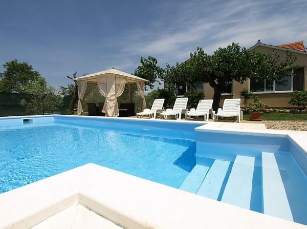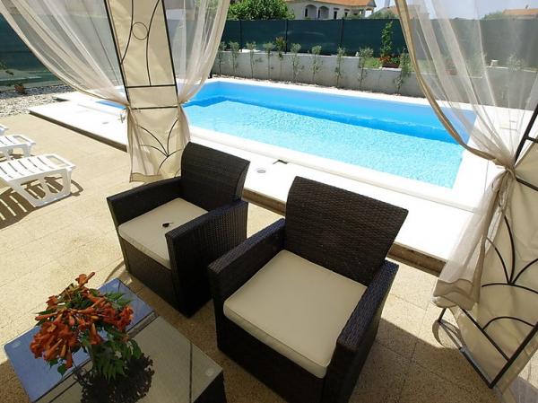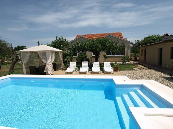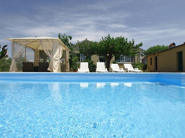 Rodzina 3-pokojowy dom 100 m2 z domu grill, duży ogród z trawnikiem i drzewami 1600 m2 i wymiarach 7 x 4 x 1,5 m. Parking przy domu basen z podgrzewaną wodą. Bliskość sklepów i restauracji 300 m, a piasek i plaża żwirowa 800 m.