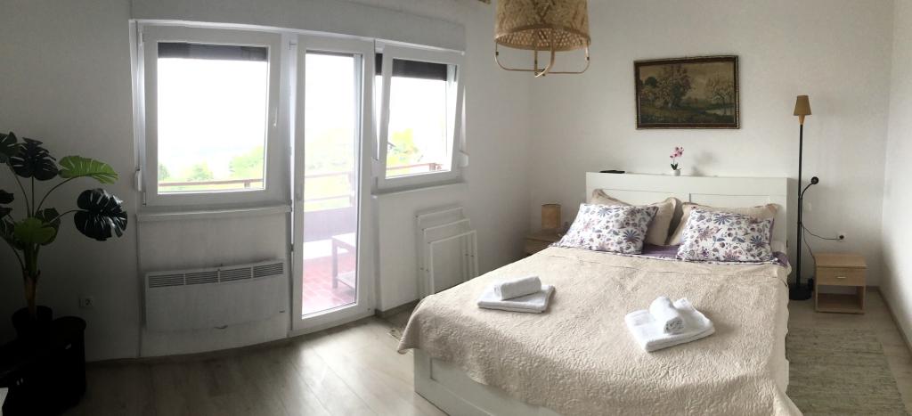 W pełni wyposażony dom wakacyjny położony jest na wzgórzu, w otoczeniu zieleni i kwiatów, z pięknym widokiem na Zagrzeb i okolicę. Pojemność wynosi 8 osób. Składa się z dwóch sypialni; łóżko małżeńskie i łóżko pojedyncze, a w drugim pokoju łóżko małżeńskie i łóżko małżeńskie z osobnymi materacami oraz sofa w salonie. Dwie łazienki. W pełni wyposażona kuchnia z lodówką z małą zamrażarką, zmywarką, ekspresem przelewowym do kawy, piekarnikiem... i stołem jadalnym. Duża sauna fińska. Elektryczne rzutki. Duży zadaszony taras ze stołem i meblami ogrodowymi, pięknym widokiem, ćwierkającymi ptakami i dużym grillem. W cenę wynajmu wliczone jest miejsce parkingowe na dwa samochody i wi-fi. W miesiącach letnich dostępne jest jacuzzi i dodatkowe leżaki. W okolicy można uprawiać turystykę pieszą, spacerować, jeździć na rowerze, łowić ryby, odwiedzić park rozrywki Adrenaline Park, gdzie jeżdżą najszybsze samochody na świecie, a także delektować się lokalną gastronomią.