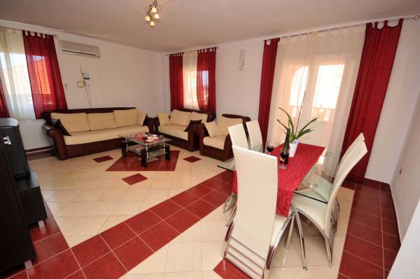 Apartamenty znajdują się na wyspie, tylko 2 km od centrum miasta. Można cieszyć się słońcem i plażą, która znajduje się zaledwie 200 metrów od willi. Jeśli nie jesteś fanem zatłoczonych plaż, Ciovo wyspa oferuje wiele zaciszne zatoki i plaże, aby cieszyć się pełną spokoju i samotności. Linia jest wysyłka do plaży w Okrug Gornji na Trogir (nabrzeża). Parking i grill są dostępne dla gości! Darmowy dostęp do Internetu! Villa 3A O. Gornji na wyspie Ciovo. Zabytkowe miasto Trogir jest podłączony przez most na wyspę Čiovom.Trogir jest uważana za najpiękniejszą perłą Dalmacji Rdzeń starego miasta Trogir jest od 1997 roku pod ochroną UNESCO. Villa 3A jest tylko dwa kilometry od miasta Trogir. Dom został wybudowany 2003-ty Istnieje pięć małych i dwa duże luksusowe apartmana.Do najbardziej popularnych plaż (Copacabana), trzeba tylko pięć minut spacerem. Na plaży znajdują się: bary, restauracje, sklepy