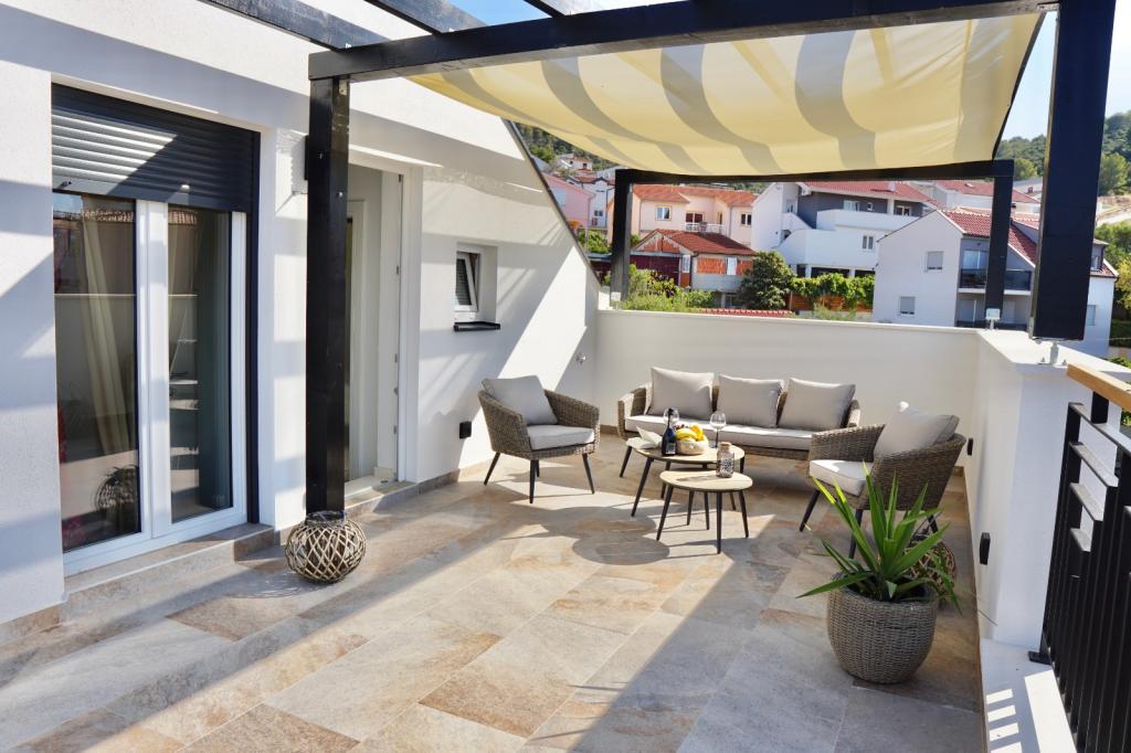Całkowicie i nowocześnie urządzona willa o krok od plaży.Znajdujemy się w Trogirze, w małej wiosce Mastrinka, zaledwie 30 m od morza. Wszystko jest nowe, nowoczesne i piękne. W pobliżu domu znajduje się taksówka, którą można dojechać do Trogiru oraz na dworzec autobusowy. Plaże są piaszczyste i betonowe. Niezbędnym do jedzenia jest mały sklepik położony 50 metrów od dom, a także restauracja, która jest tam.